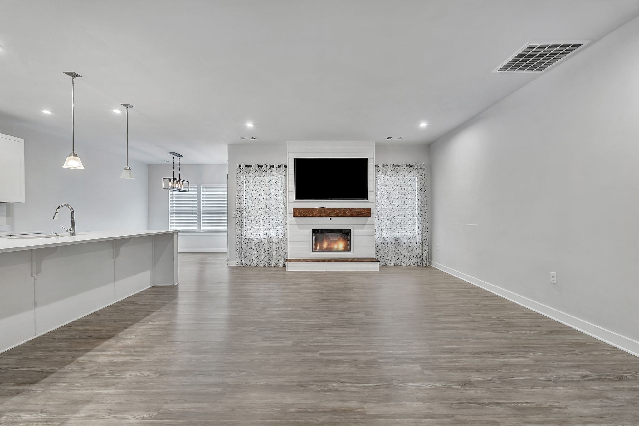 Welcome to this beautiful move-in ready home in Murfreesboro, TN, located in a quiet neighborhood with excellent schools. The spacious living room flows into an open kitchen and dining area, creating a perfect space for both relaxation and entertaining. The owner’s suite is located conveniently on the main floor, with three additional bedrooms and a fantastic theater room upstairs. Enjoy outdoor living with a covered back porch and a large patio area. Plus, two TVs are also included, one in the living room and one on the covered porch.