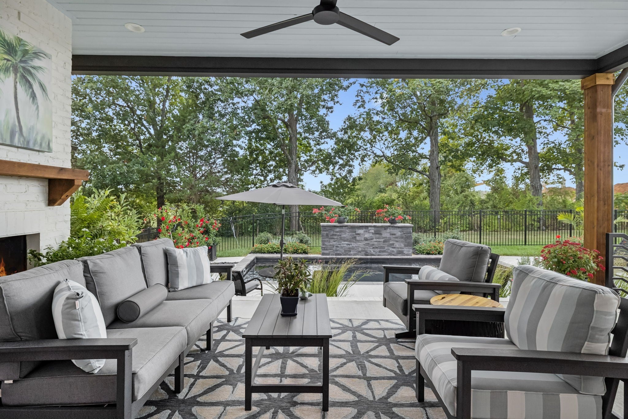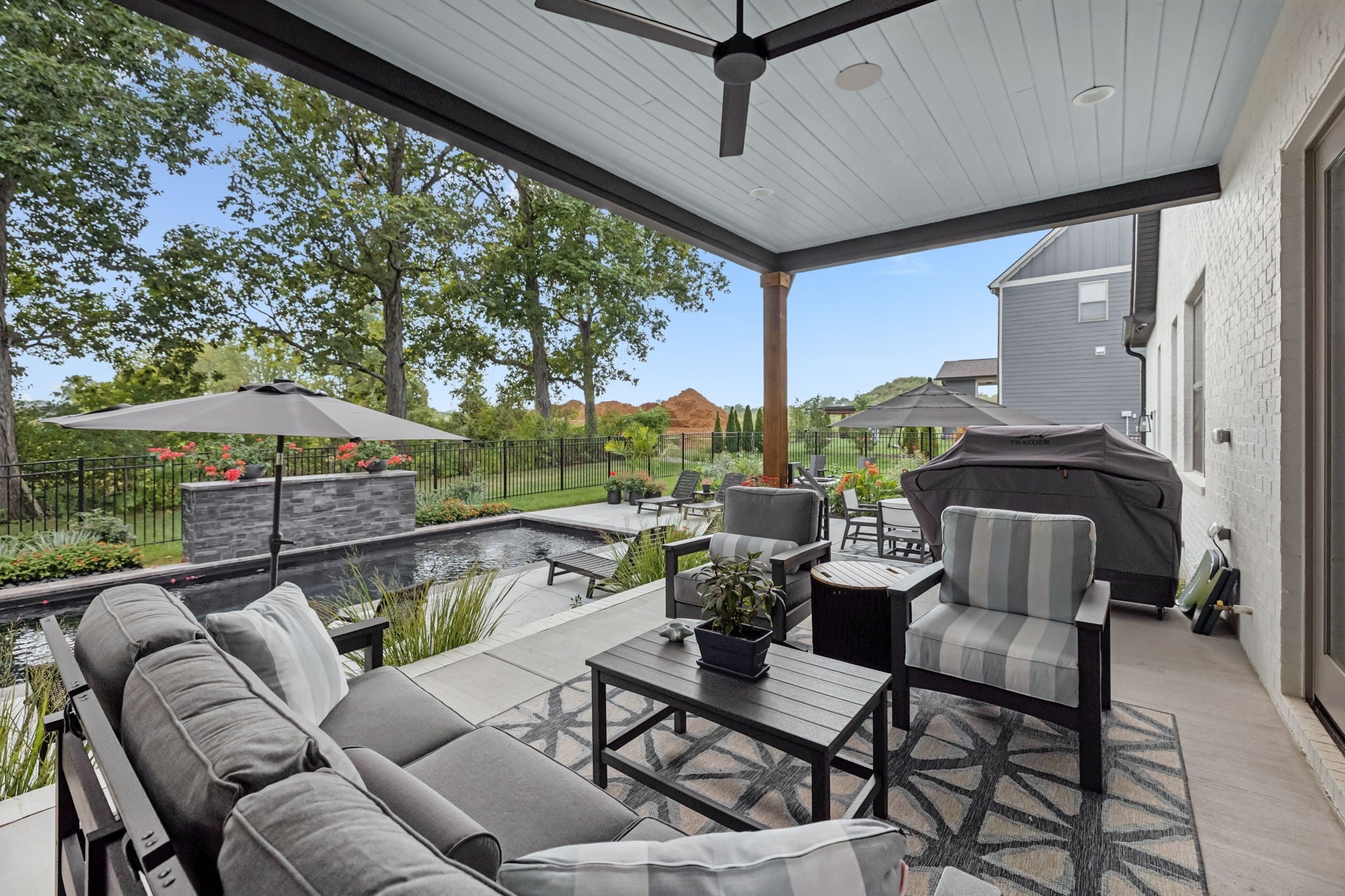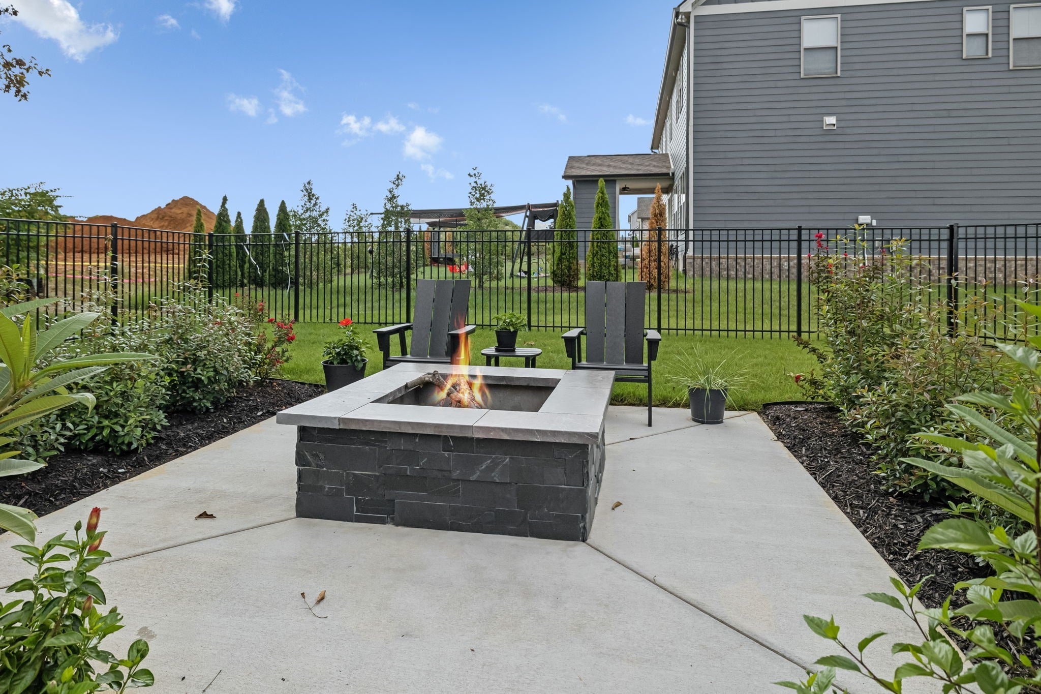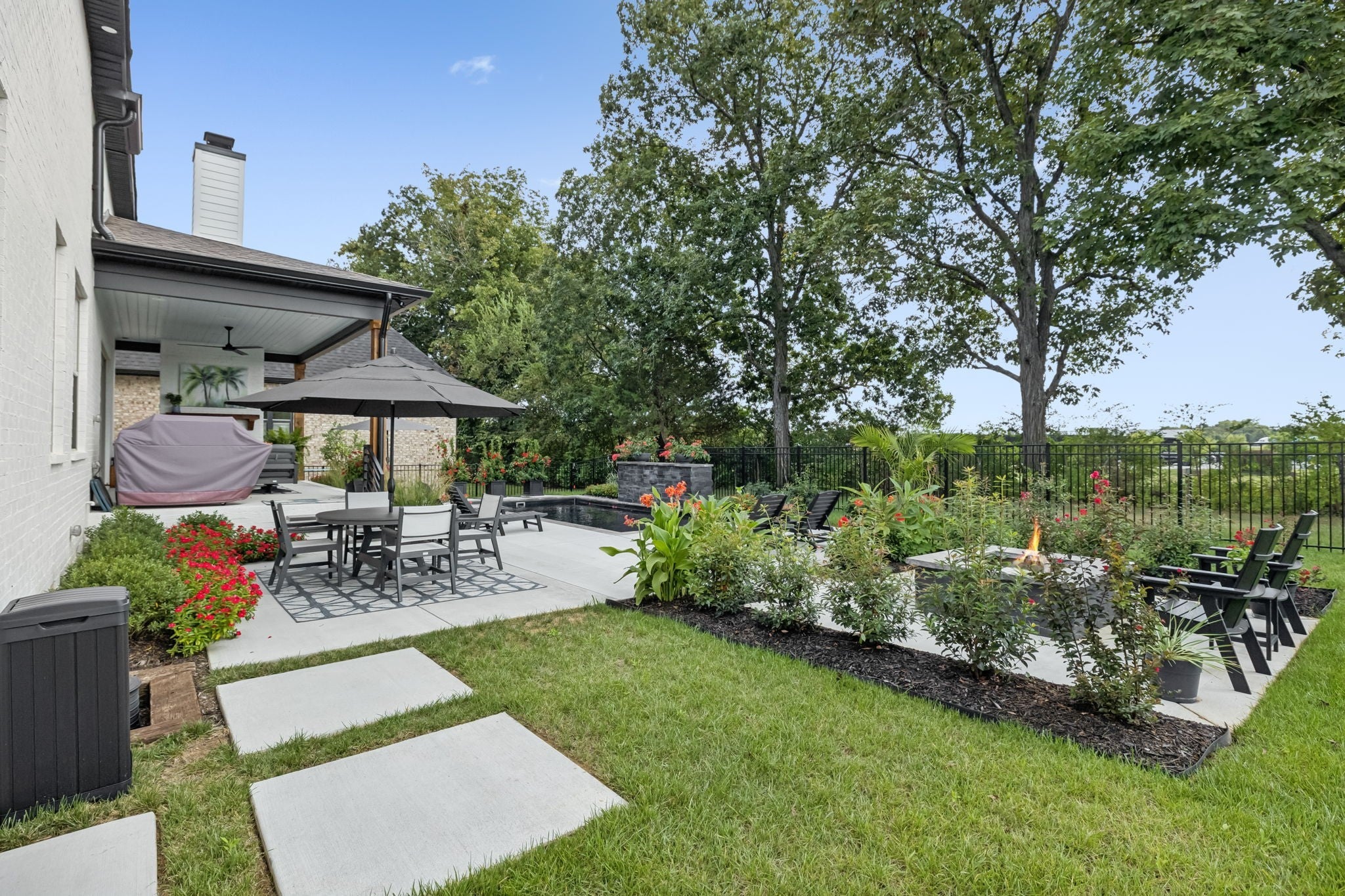 Fall in love with this like-new luxury home in the highly sought-after Shelton Square community! This custom masterpiece blends timeless elegance with modern convenience. Step through the front porch into a foyer that opens to an airy, open-concept layout highlighted by rich wood flooring and a cozy gas fireplace framed by custom built-ins. The huge gourmet kitchen delivers, with endless custom cabinetry, an oversized island with sink, gas cooktop with pot filler, luxury Thermador appliances, a generous pantry, and a seamless flow into the living and dining rooms - perfect for hosting in style. The primary suite has it all, offering a spa-worthy bath with custom tile walk-in shower, freestanding soaking tub, double vanities, and a designer custom closet system. A second main-level bedroom, currently used as an office, adds versatility with French doors, built-in cabinets/shelving, and custom shiplap accent wall behind the built-ins. A full closet provides great storage, making it ideal for work, guests, or creative space. Upstairs you’ll find 3 additional spacious bedrooms, 2 more full baths, and a sleek bonus room with built-ins, ready to be your cozy new relaxation spot. Outdoor living truly shines with a covered patio featuring a beautiful fireplace, cedar beams, and views of a lush, landscaped, fenced yard. Enjoy the sparkling in-ground pool accented by custom stonework, plus a built-in fire pit - perfect for those cool fall nights. This incredible space feels like a private resort retreat right at home. Other notable features include a tankless water heater, irrigation system, and a 3-car garage - with one bay currently used as a fully equipped home gym with everything you need. All gym equipment is negotiable as part of the sale! Every inch of this luxury home was carefully designed with no detail overlooked. Don’t miss the chance to make this beautiful Shelton Square residence yours - schedule your private showing and experience high-end living at its finest!