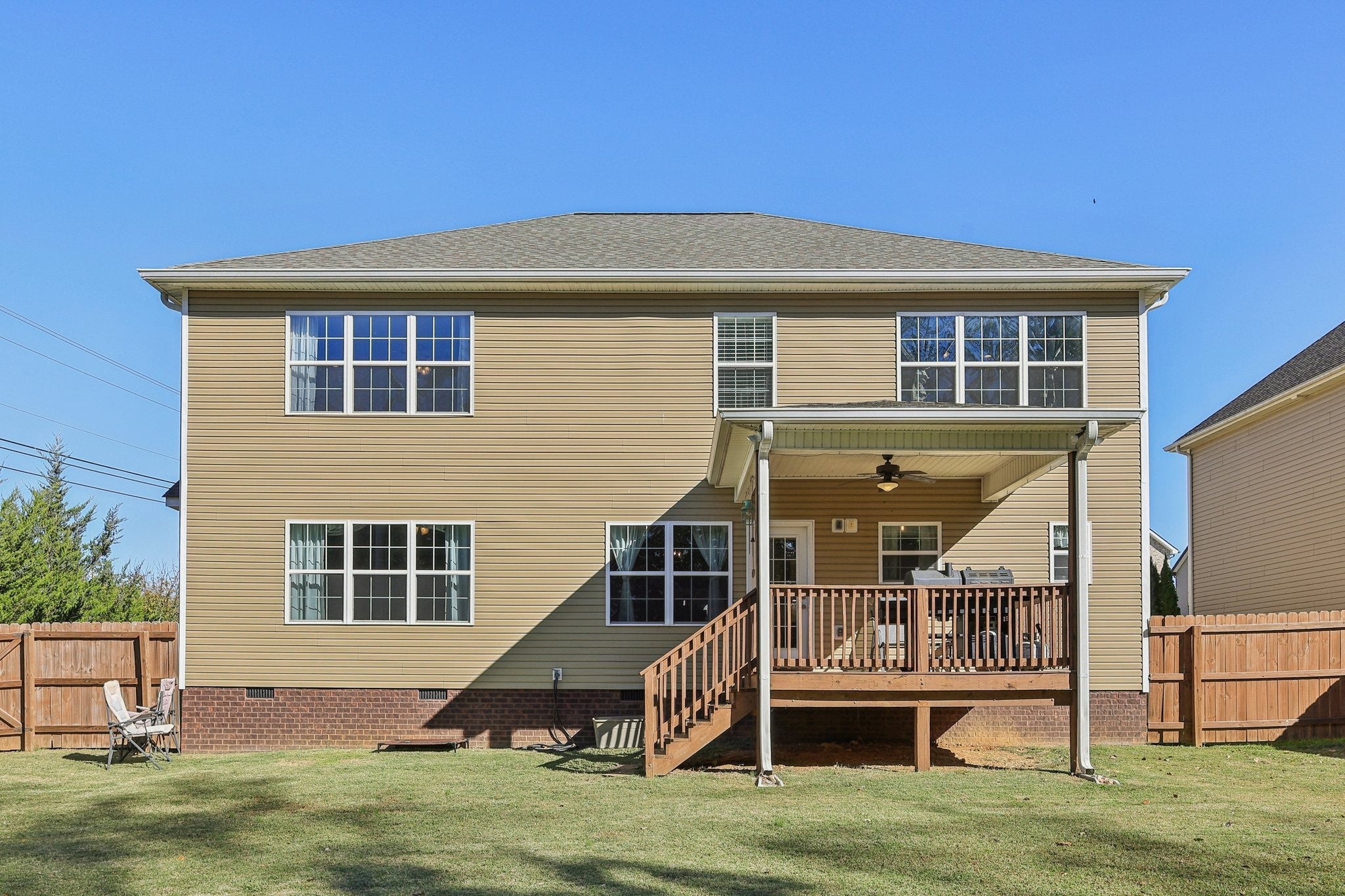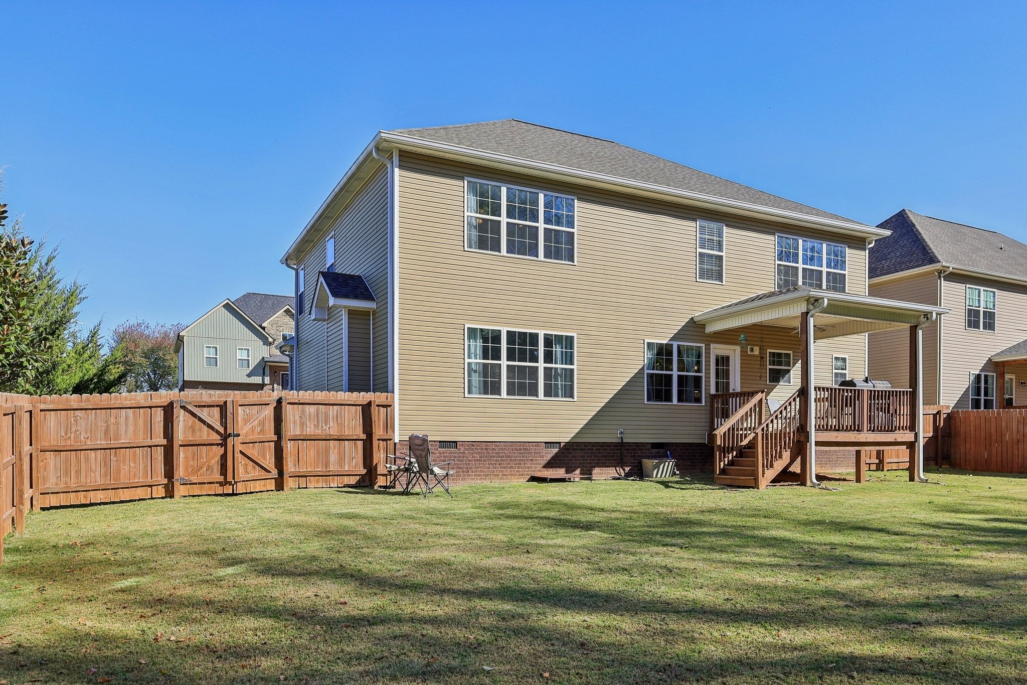 Spacious 5-bedroom, 2.5-bathroom home with 2,885 sq ft! This traditional floorplan offers incredible space and flexibility, starting with a 2-story foyer. The formal living and dining rooms are perfect for use as a home office, bonus room, or gym. The main living area features a great room with a gas fireplace that opens into a casual dining space and an updated kitchen. The kitchen includes granite counters, a tile backsplash, island, and stainless steel appliances. Convenient first floor laundry room and a whole home water softener system. Upstairs, you'll find all the bedrooms. Including the Primary Bedroom with private ensuite with a dual vanity, tile shower, soaking tub, and a massive walk-in closet with a built-in storage island. There are four more generously sized bedrooms and a well-appointed full bath with a dual vanity. Tons of extra closets and storage space are tucked away throughout the home. Outside, enjoy a level, fully fenced yard and a covered deck (shed conveys!). Excellent Clarksville location near Fort Campbell with easy access to shopping, dining, schools, and highways for a quick commute to Nashville. Schedule a tour today!