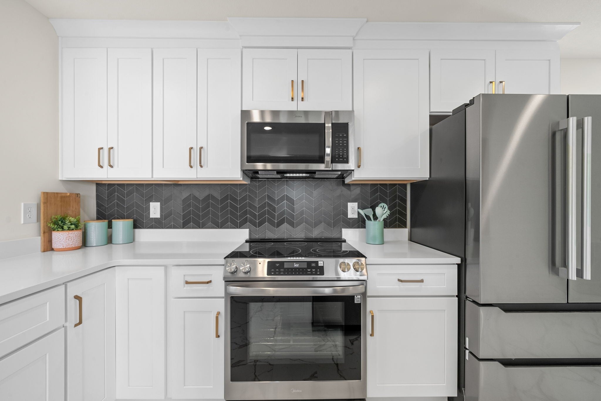- Electric Oven, Electric Range, Dishwasher, Microwave, Refrigerator, Stainless Steel Appliance(s)