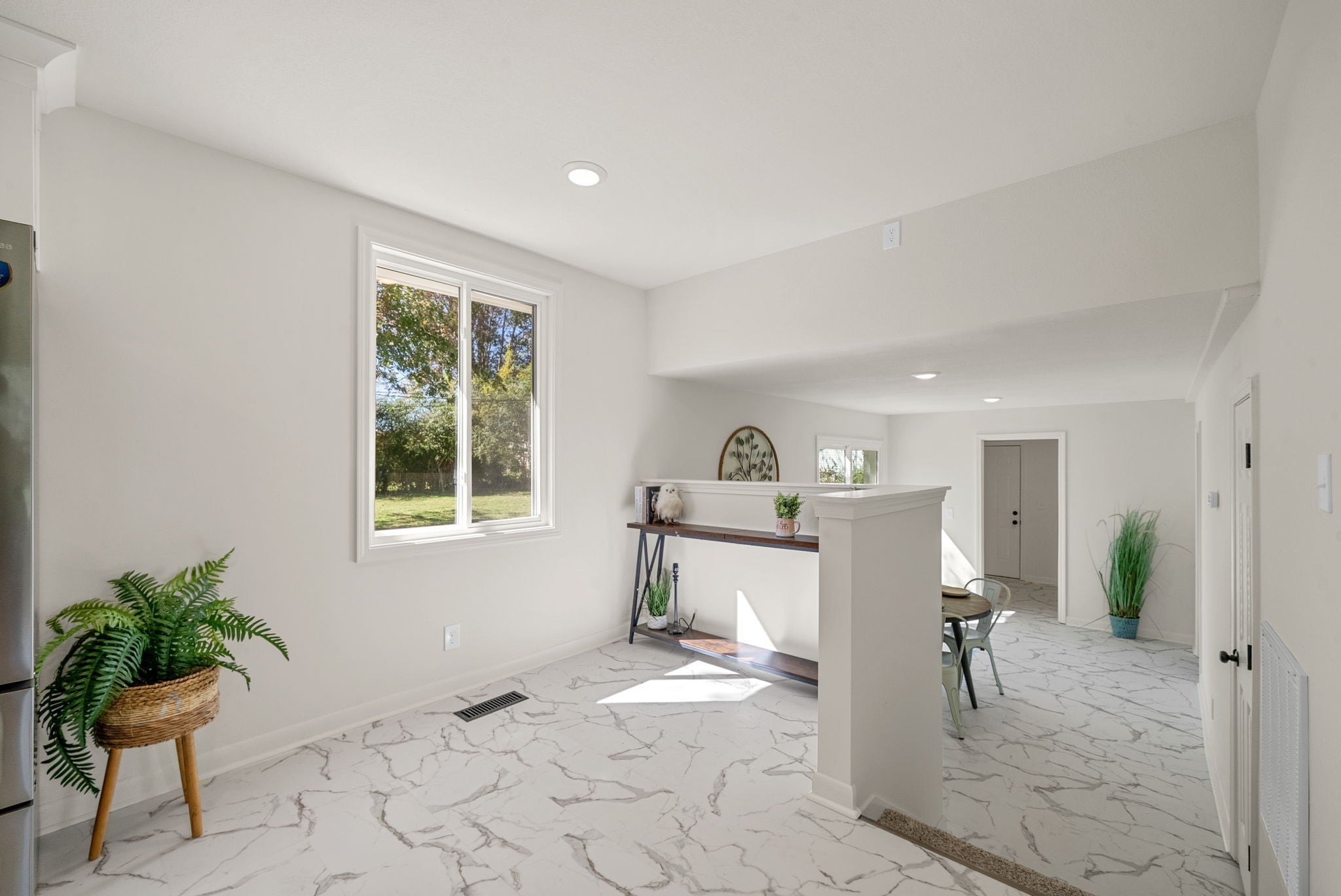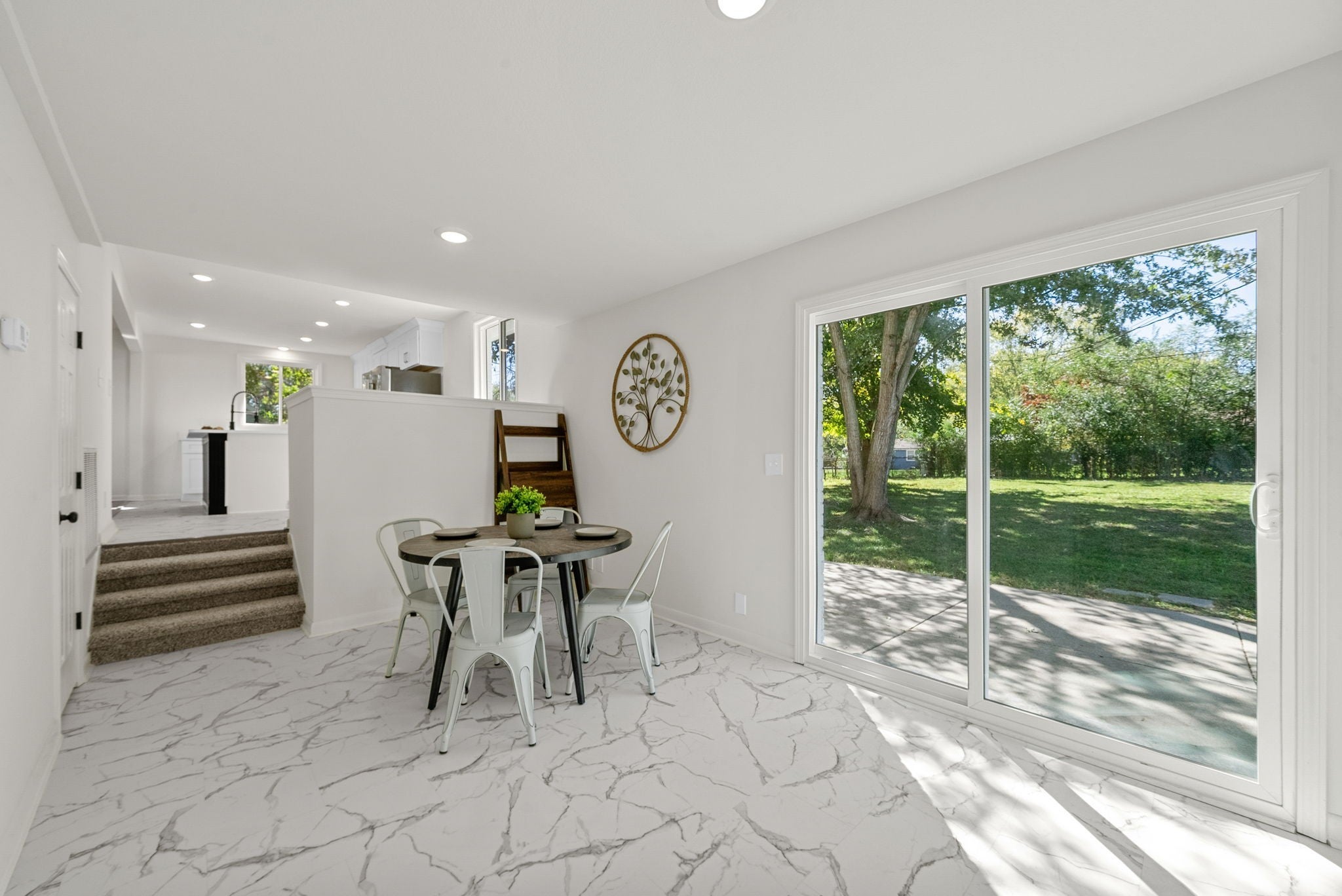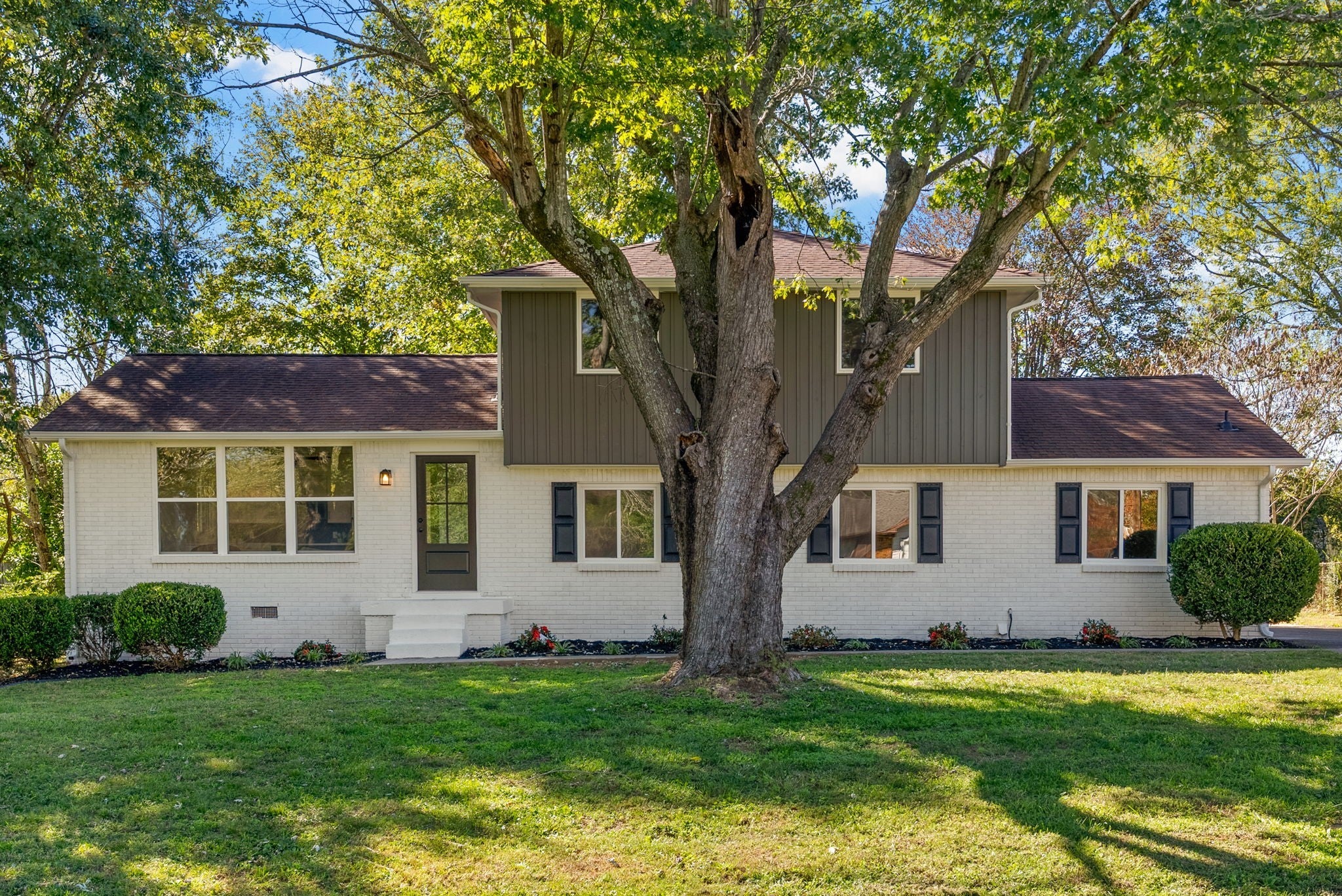 Don't miss out on this top to bottom renovation with plenty of natural light, style, and luxury for its price point! This house is easily one of the most inviting on the block -- the exterior greets you with freshly painted brick, brand new batten siding, all new tinted windows throughout the house, and clean landscaping. Once you walk in the front door, you'll notice an open concept feel in this tri-level floorpan with original hardwood floors in the spacious living room that flows seamlessly into the kitchen after the renovation. Kitchen comes equipped with modern pure white quartz countertops & custom wooden cabinetry, a new $5,000 appliance package, and an island with a bar. There's also a small dining nook before stepping down into a flex space that could be used as a second living space or larger dining room. Also on the lower level is the much improved Owner's Suite complete with walk-in closet and full bathroom, all conveniently located right next to a very generous laundry room / mud room that accesses the garage. The upper level of the house holds three bedrooms and another full bathroom, with one of the bedrooms having direct access to the bathroom. You'll find the backyard has plenty of space for play and the neighborhood is pleasantly quiet on a dead end street with reduced through traffic.