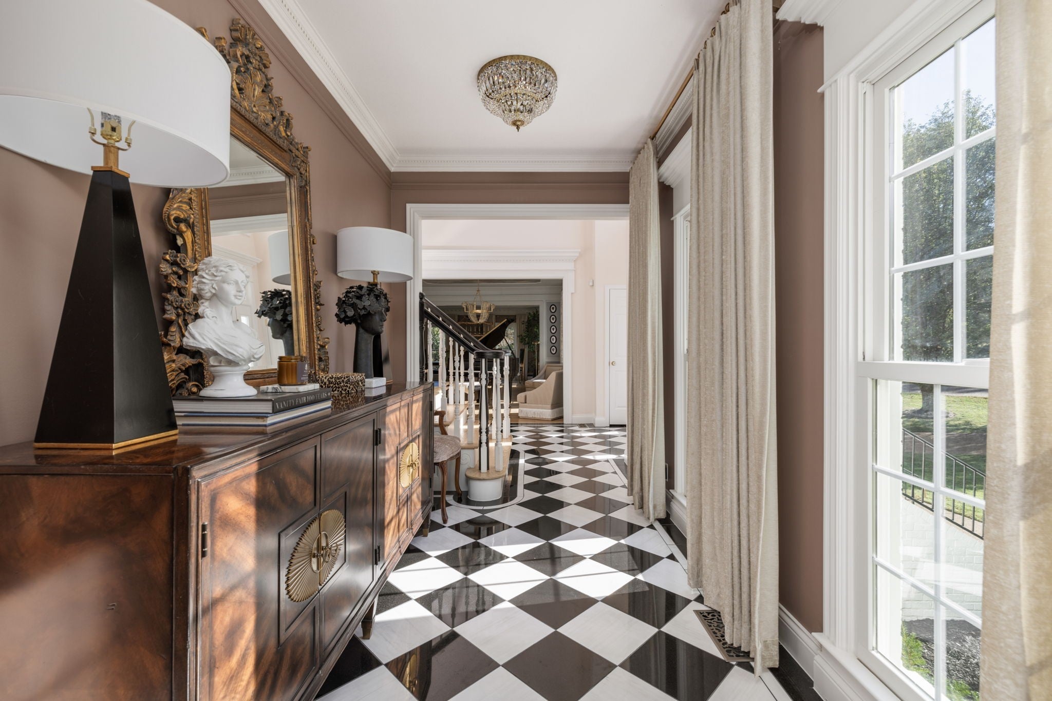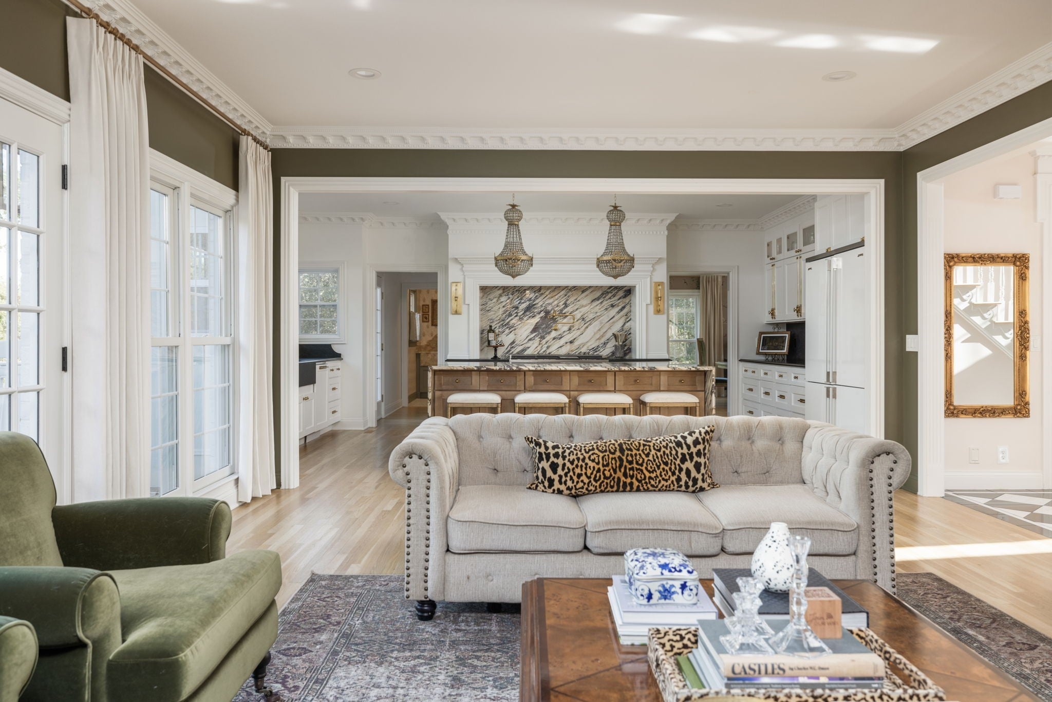 Tucked away in a serene setting, this stately residence sits gracefully on over an acre in one of Franklin’s most coveted enclaves. Surrounded by mature trees, the home exudes timeless sophistication. Fully remodeled with exquisite attention to detail and a level of craftsmanship rarely seen today. Inside, every room tells a story of intentional design. A grand two-story foyer welcomes you with marble floors and light pouring in through towering windows. Elegant custom millwork, intricate trim, and curated designer lighting create an ambiance that’s both classic and elevated. The kitchen is a true showpiece, anchored by a breathtaking marble waterfall island and equipped with a 48” gas range, double ovens, double dishwashers, and bespoke cabinetry. A hidden scullery with marble counters, refrigerator drawers, oven, and ice maker keeps entertaining seamless and elevated. The main-level living spaces flow effortlessly into sunlit rooms with curated textures and finishes that balance refinement and warmth. The primary suite feels like a private retreat, featuring heated marble floors, a spa-like bath, washer and dryer, and custom storage designed for ultimate luxury. Upstairs offers three large bedrooms with walk-in closets and a large playroom with custom beams and a second laundry. Downstairs, the fully finished basement offers a complete second living experience with a show stopping kitchen, gym, theater, full bath, and expansive storage, ideal for guests, recreation, or multigenerational living. With over 5,700 square feet of thoughtfully designed living space and unmatched attention to both beauty and function, this home defines understated elegance. Just minutes from all that Franklin has to offer, this is more than a home, it’s a statement. A rare opportunity to own something truly special, where every detail has been perfected and every moment feels intentional.