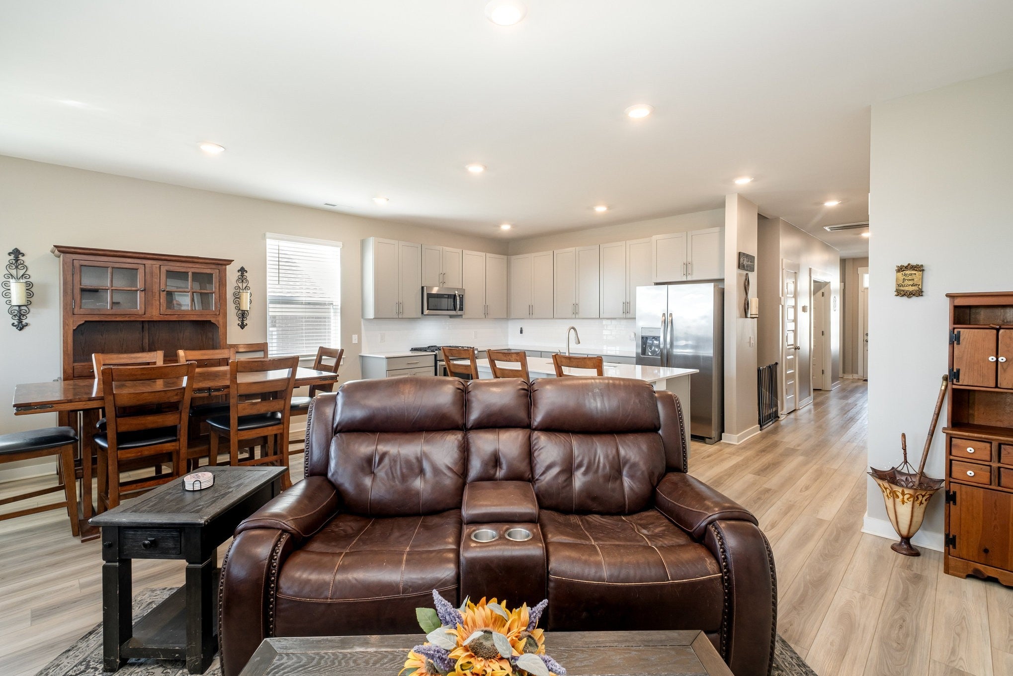 Beautiful New Construction Home in Sought-After Spring Hill! Welcome to this stunning newly built home located in one of Middle Tennessee’s most desirable communities. Spring Hill is known for its top-rated schools, family-friendly atmosphere, scenic parks, and convenient access to Franklin and Nashville — offering the perfect mix of small-town charm and modern convenience. Located in the popular Harvest Point master-planned community, residents enjoy resort-style amenities including a pool, dog park, playground, walking trails, and sidewalks throughout. This thoughtfully designed Cumberland floor plan by Lennar features an open and spacious layout. The main level includes a luxurious owner’s suite with a walk-in tile shower, a second bedroom, laundry room, and a large flex/reading room — ideal for an office or guest space. The chef’s kitchen offers quartz countertops, abundant cabinetry, and plenty of workspace — perfect for cooking, entertaining, or family gatherings. Upstairs, you’ll find a large recreation and media area with a private bath, additional bedroom, and generous walk-in storage — great for guests, hobbies, or a home theater. Enjoy outdoor living on the upgraded covered patio overlooking a fenced backyard, perfect for privacy and entertaining. Additional highlights include brick and Hardie plank exteriors, ample closet space, extended fenced yard and professional landscaping. Move-in ready and ideally located, this home offers the best of Spring Hill living — comfort, convenience, and community all in one!