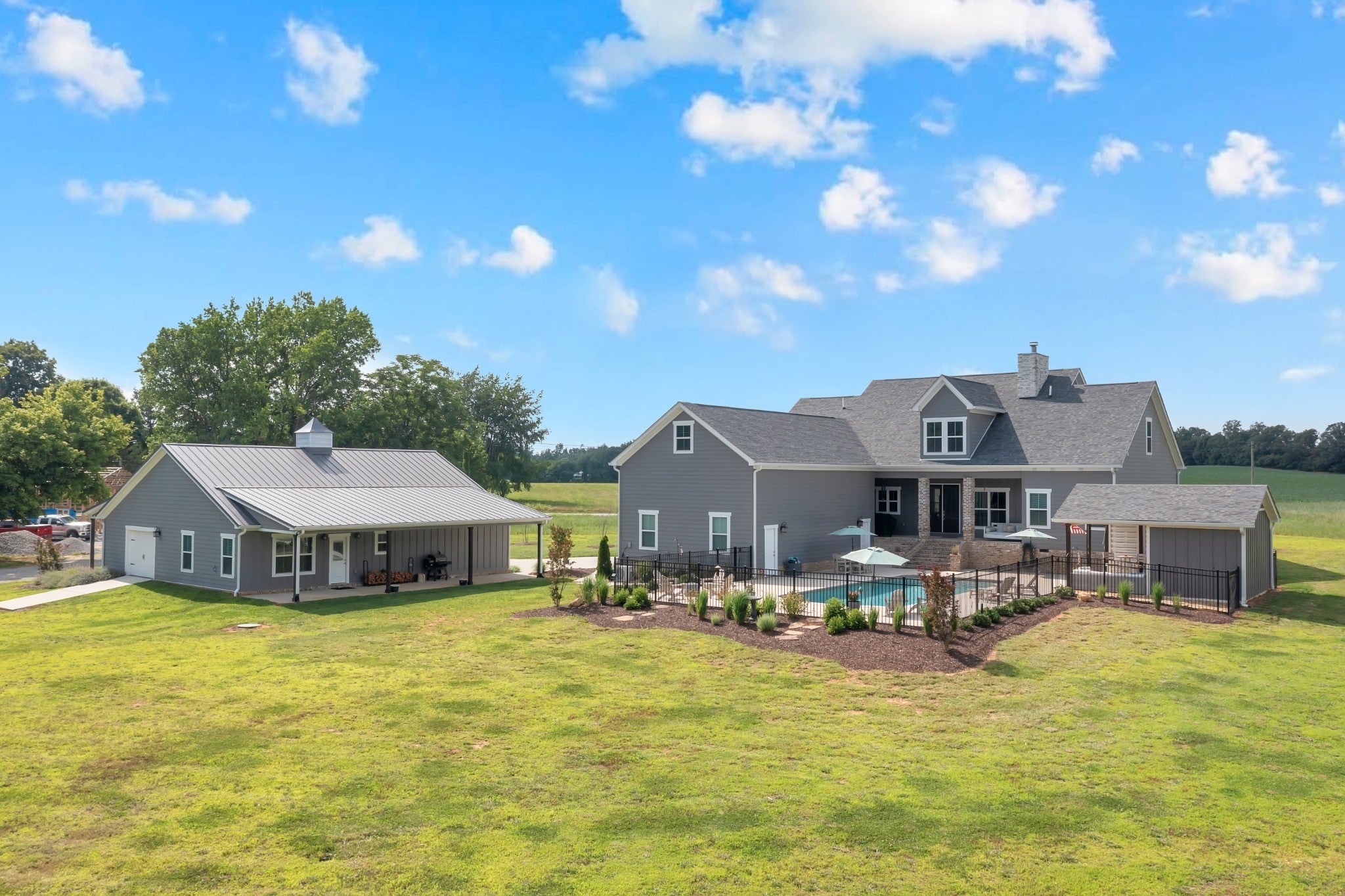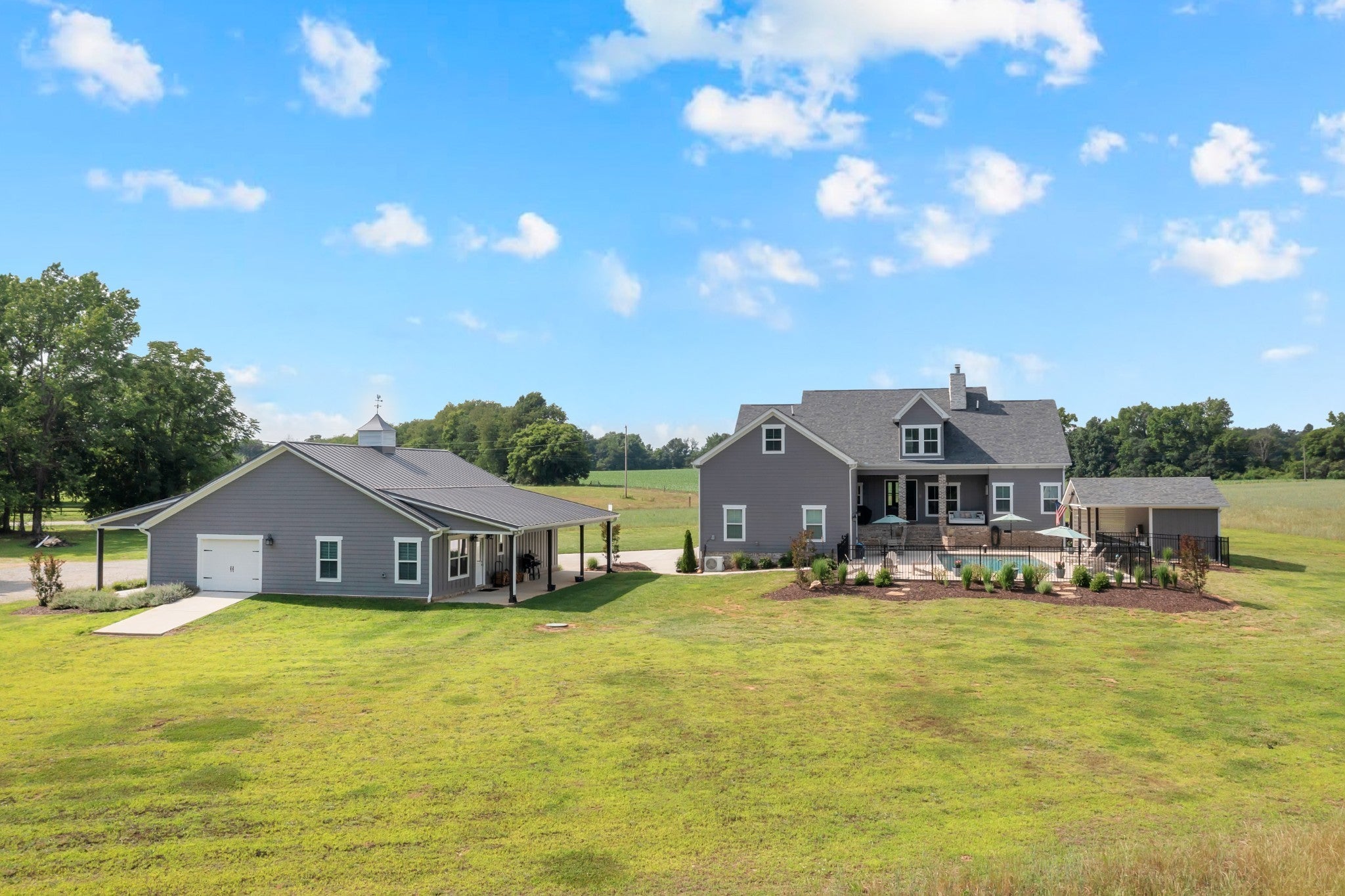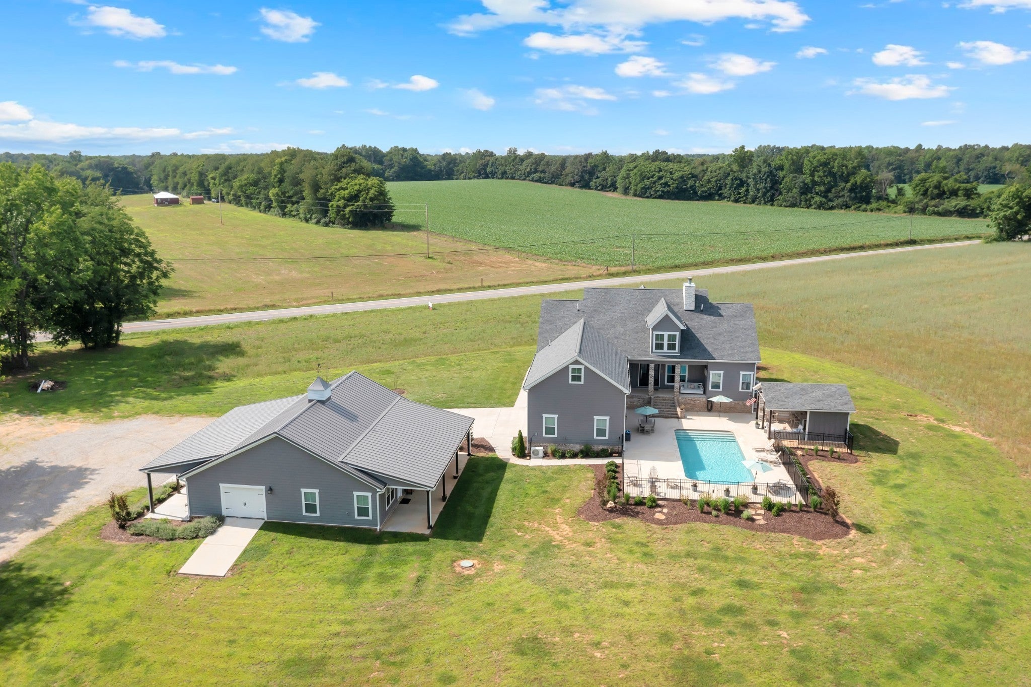 Motivated Seller! Needing to sell! Incredible opportunity on 10 acres! This versatile estate offers privacy, space, and stunning mountain top views. The main home spans approx. 4,509 sqft and features 4 bedrooms (with potential for more), 4.5 bathrooms, a separate dining room, sunroom, and a large upstairs with 3 closets (2 walk-in). Enjoy a beautiful stone wood-burning fireplace, custom built-ins, gas heat, central HVAC, tankless gas water heater, 200-amp service, and all kitchen appliances remain (unless buyer prefers otherwise). The guest home is approx. 2,192 sqft with 1 bedroom, 2 bathrooms, full kitchen, living area, laundry, and a flexible space ideal for a home office, studio, or recreation room. Features electric heat, central HVAC, and 200-amp service. Enjoy outdoor living with a 16x36 saltwater in-ground pool, fully fenced for safety. The pool house includes an outdoor shower, storage space, bar area, and its own water heater. For hobby or business use, the property includes a 40x50 shop, wired for electricity (currently disconnected), plus a 30x80x12 building under construction. This property offers a rare combination of functionality, comfort, and scenic views—ideal for multi-structure living, home-based work, or recreational enjoyment. Seller will dry in unfinished building with metal sides, roof, soffit, fascia, gutters, and overhead doors