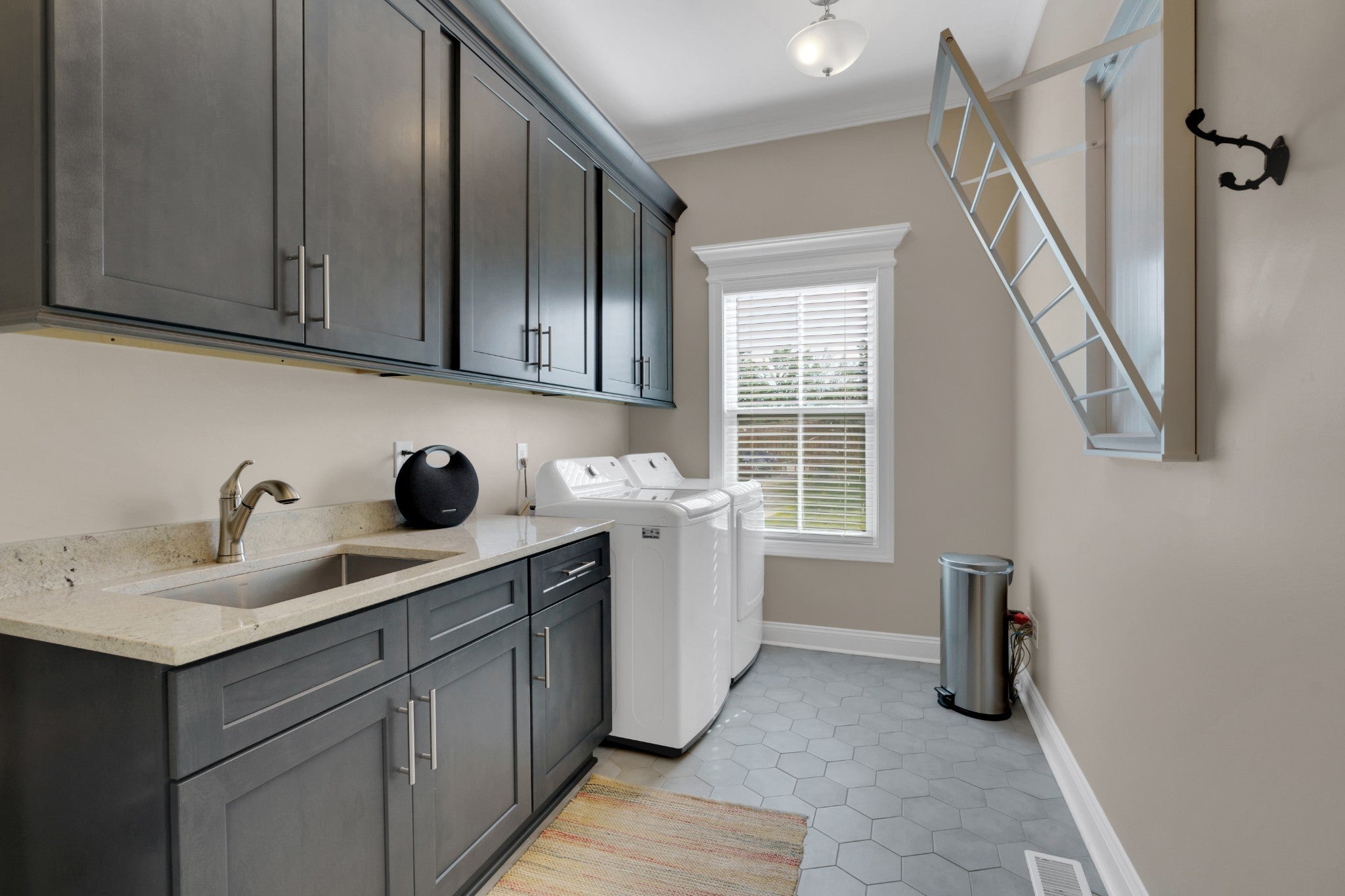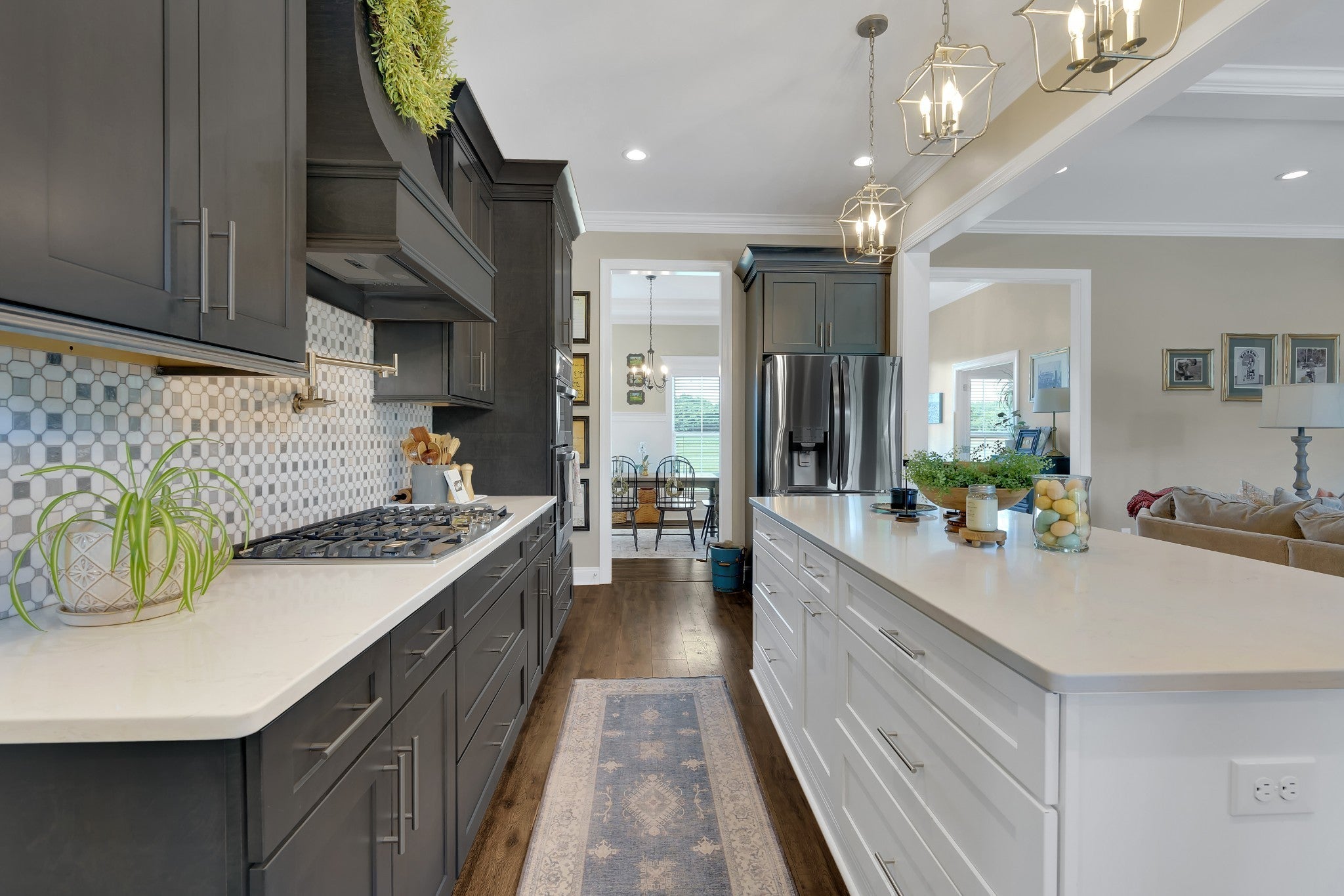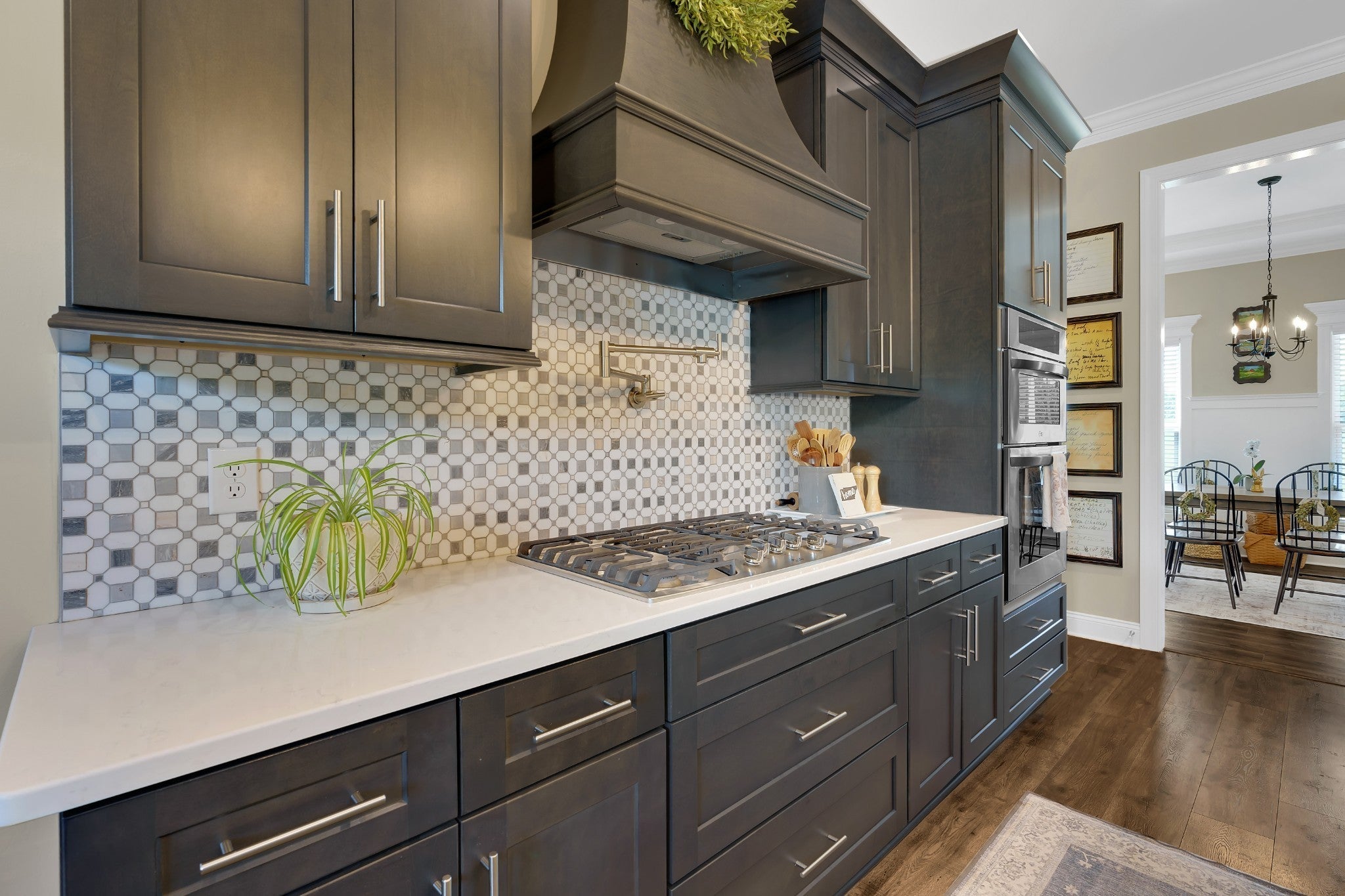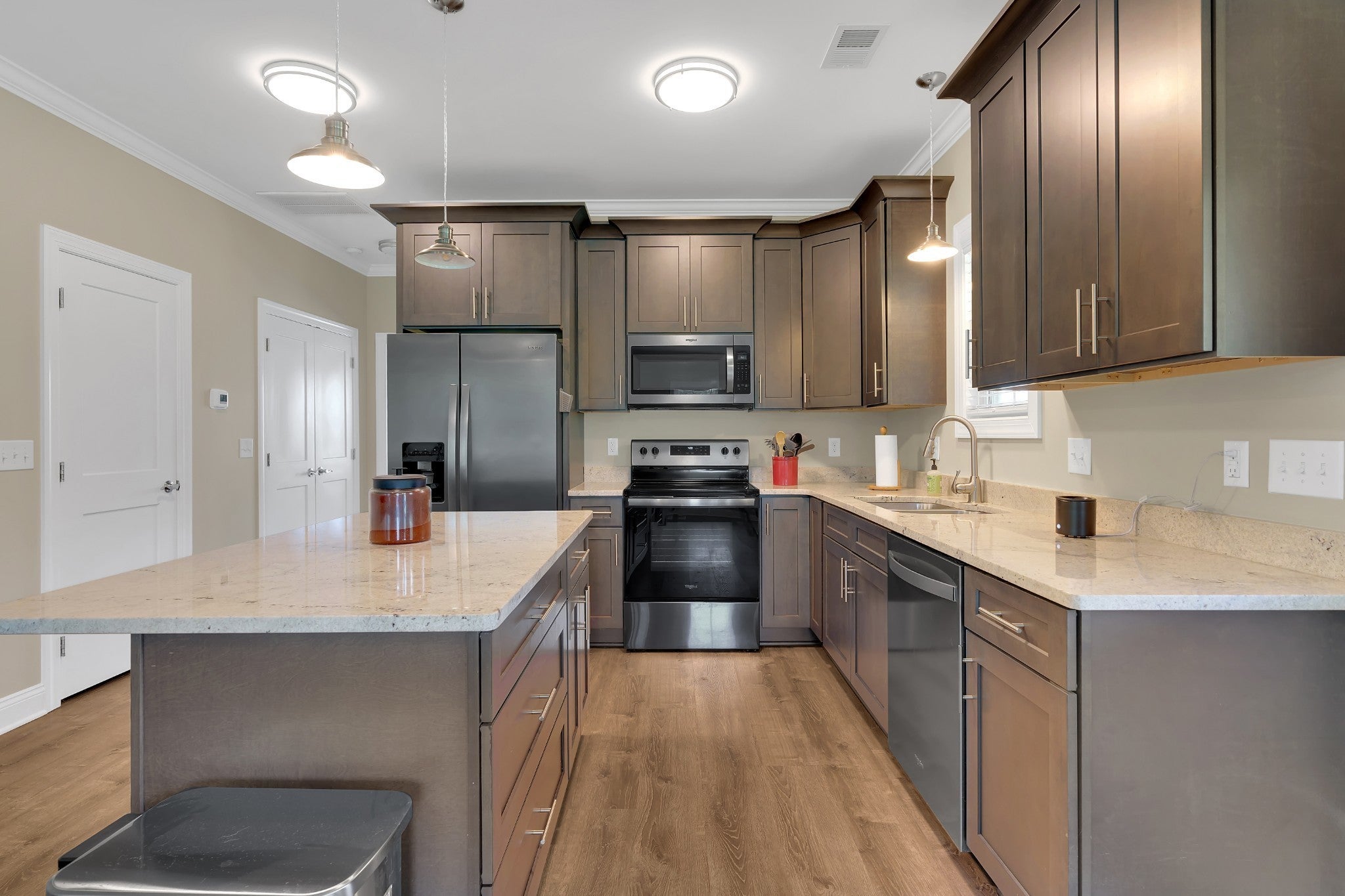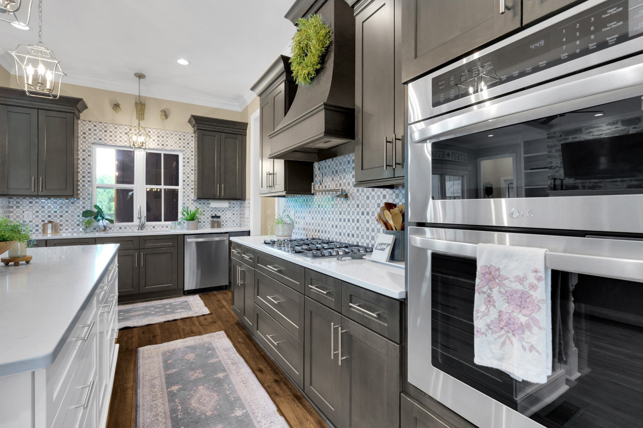 - Built-In Electric Oven, Double Oven, Built-In Gas Range, Dishwasher, Dryer, Microwave, Refrigerator, Stainless Steel Appliance(s), Washer