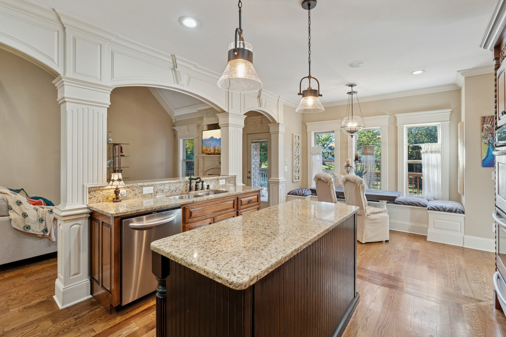 This beautifully maintained all-brick home blends timeless elegance with modern comfort. The main-level primary suite offers privacy and convenience, while the vaulted family room with a cozy fireplace creates a warm and inviting gathering space. The chef’s kitchen features double ovens, a breakfast bar, and a bright eat-in area, perfectly complemented by a gracious formal dining room. Upstairs, a versatile bonus room provides the ideal setting for an office, playroom, or media space. Enjoy outdoor living on the covered deck overlooking a private backyard with a fire pit, perfect for entertaining or relaxing. A brand-new second-floor HVAC system ensures year-round comfort, and the beautifully landscaped front yard offers a welcoming first impression. This home truly embodies style, function, and lasting charm.