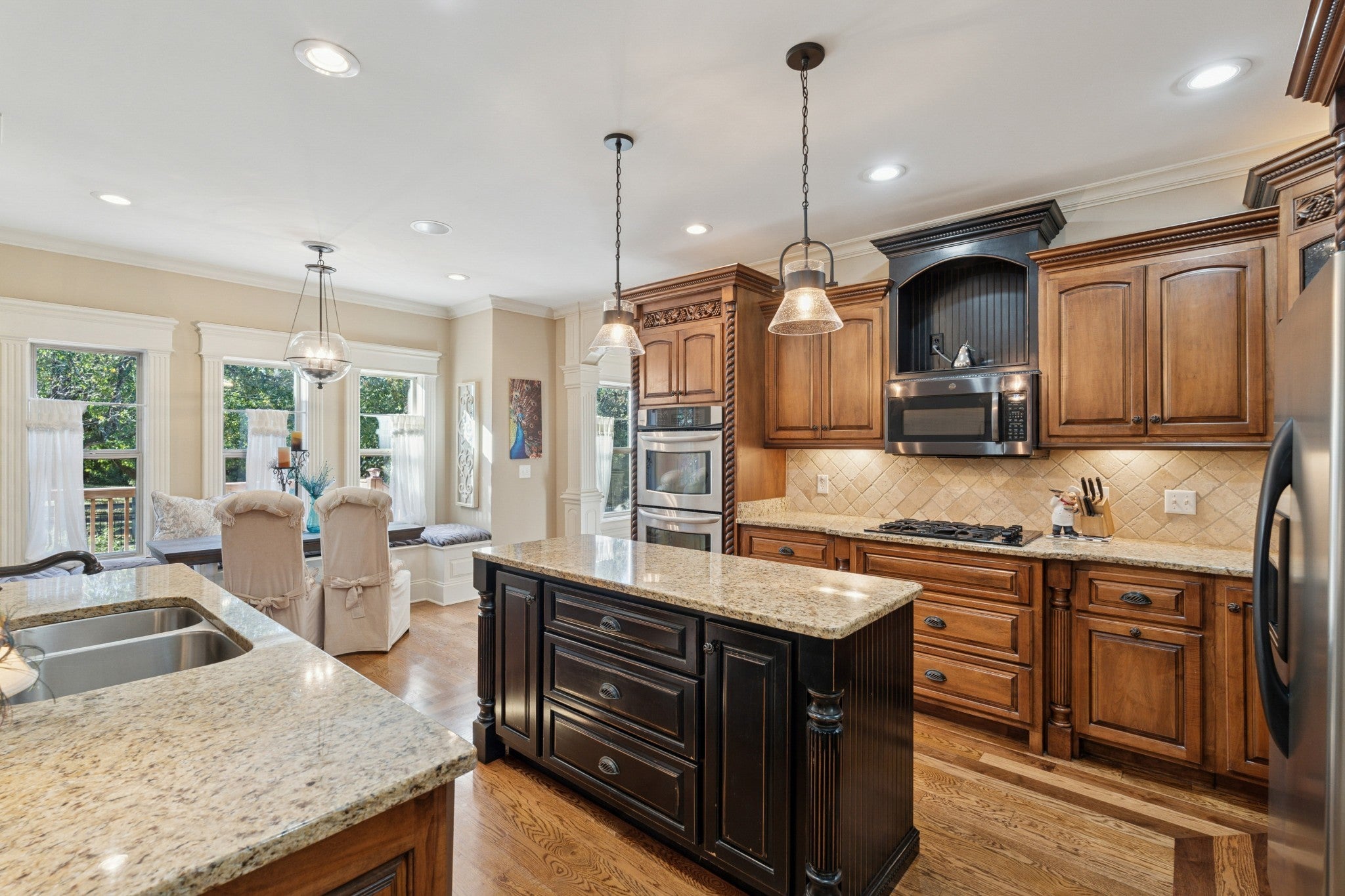 - Double Oven, Cooktop, Dishwasher, Disposal, Microwave