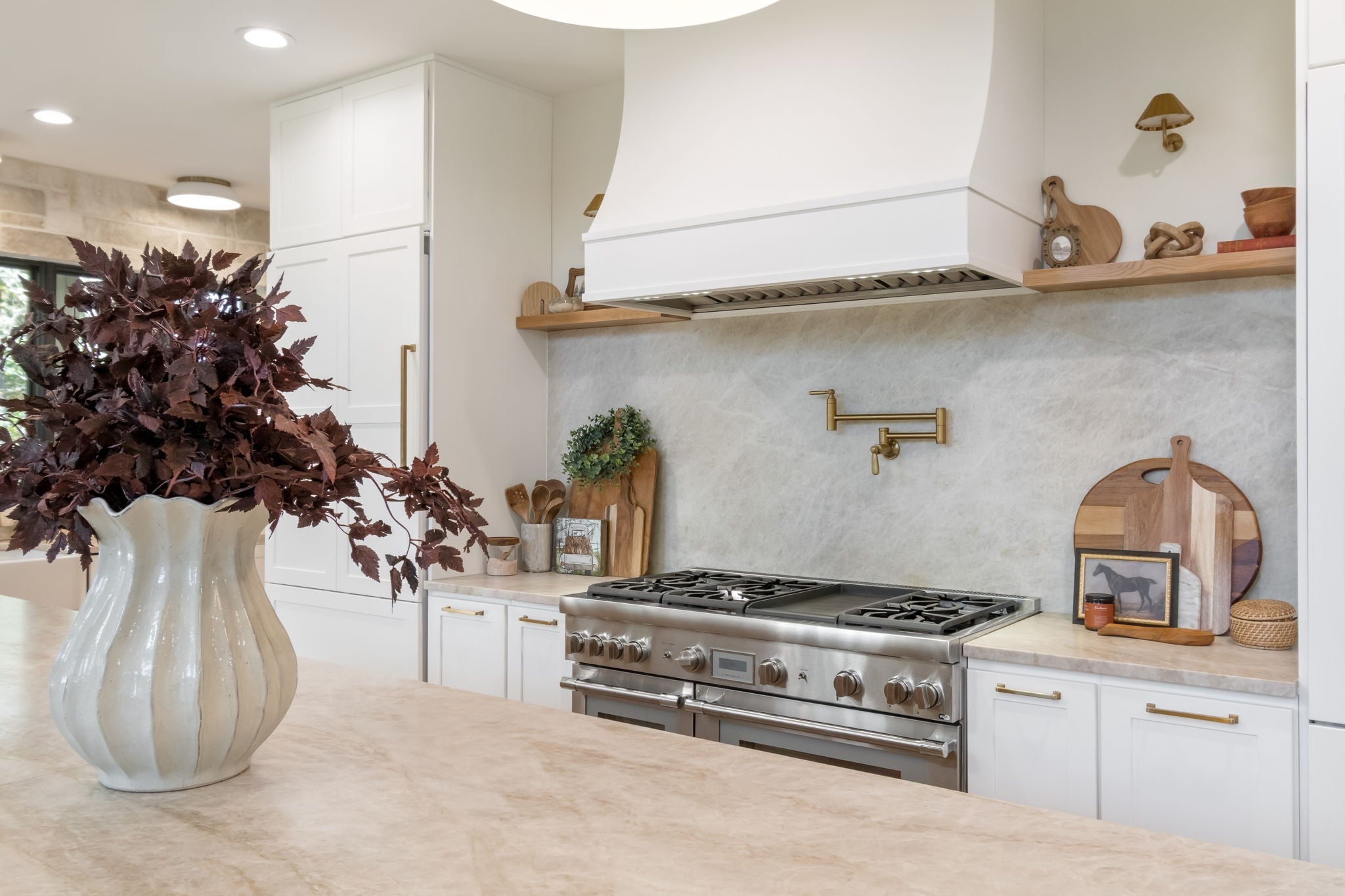 - Double Oven, Gas Range, Dishwasher, Disposal, Refrigerator, Water Purifier