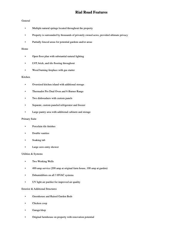Experience the perfect blend of comfort, style, and country living with this remarkable 86-acre retreat in McEwen, Tennessee. The centerpiece of this estate is a stunning 3,205 sq. ft. custom-built home offering 4 bedrooms and 3.5 baths, thoughtfully designed for modern living with an inviting open floor plan. Inside, you’ll find spacious living areas filled with natural light and crafted with quality finishes throughout. The kitchen is a true showpiece—featuring custom white oak cabinetry, Taj Mahal quartz countertops, and a large island ideal for gathering and entertaining. The primary suite is conveniently located on the main level, offering a peaceful retreat with generous space and comfort. Upstairs, a large bonus room provides endless possibilities as a playroom, media room, or home office, while 3 additional bedrooms offer plenty of room for family and guests to relax in comfort. The home is completely private, surrounded by thousands of acres of privately owned land that ensure peace and seclusion. Beyond the main residence, this property offers an abundance of possibilities. An additional farmhouse provides excellent potential for renovation—ideal as a guest home, rental, or multi-generational living space. The land itself is beautifully equipped for sustainable country living, complete with fenced-in garden areas, greenhouse, chicken coop, and a spacious shop for equipment or hobbies. Multiple natural springs flow throughout the property, contributing to its scenic and peaceful character. With 86 acres of rolling countryside to explore, there’s room to farm, garden, or simply enjoy the peace and privacy of your own retreat—all within easy reach of Nashville and nearby small towns. Whether you’re looking for a family homestead, a working farm, or a private getaway, this property offers it all: craftsmanship, functionality, and the beauty of Tennessee living.