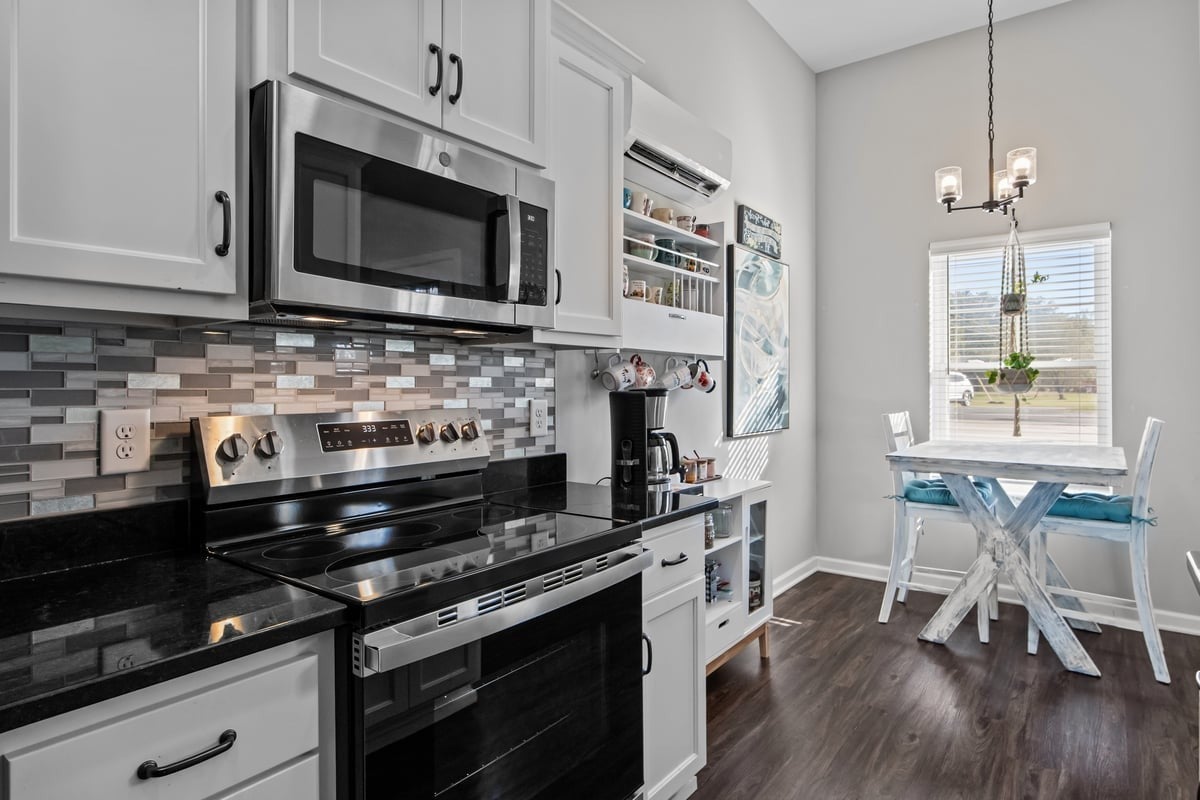 - Electric Oven, Electric Range, Dishwasher, Microwave, Refrigerator, Stainless Steel Appliance(s)