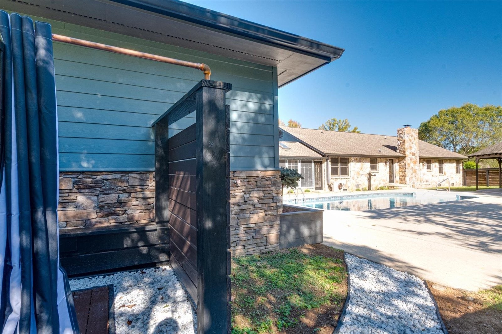 Stunning home situated on 4.51 acres with in ground swimming pool 15x30, gazebo with woodburning fireplace with gas starter and an additional detached studio guest house. The main residential house has 1884 square feet of living space with an attached 2 car garage with insulated garage doors with openers and remotes. New cabinets in kitchen and both bathrooms with granite countertops. New hardwood flooring throughout house with the exception of new tile flooring in the bathrooms and laundry room. New lighting throughout home along with bathroom fixtures and dual flush toilets. At 936 square feet the guest house is great for additional entertaining space or rent it out on Airbnb, a monthly rental or an in law suite. Guest house has full bath with tile walk in rain shower with glass enclosure. Full kitchen with new alder wood cabinets, farm house sink, granite countertop and built in nooks. Hook up installed for electric stove and refrigerator. Electric water heater is already installed. Also has an additional outdoor shower and an additional outdoor outlet set up for if you would like to add jacuzzi. Additionally featuring a glass roll up door that leaves you with wonderful views of the pool whether you are inside or out. The gazebo also features outdoor fans and lighting along with the fireplace. Detached garage is 640 sqft 20x32 of space which offers has space for a boat or a set of jet skis or simply a great space for a hobbyist. Garage also has insulted doors with garage door openers. Barn is 20x24 (480 sqft) and has plenty of space for a tractor and lawn mower and such with a storage room and a loft. Most the of the acreage is cleared but not all.