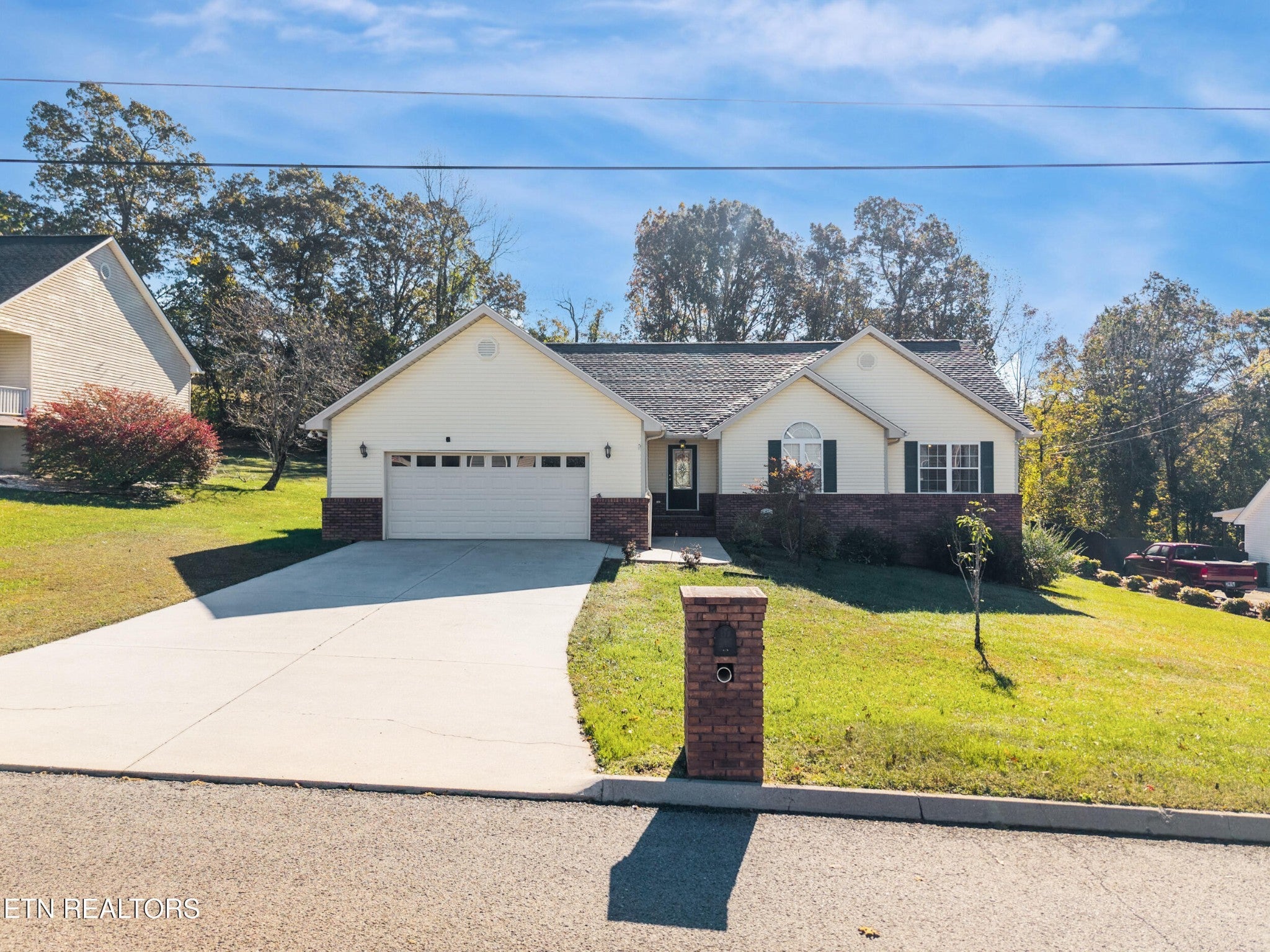 Welcome home to this charming single-level residence in peaceful Heiskell, TN! Designed for easy living with minimal steps, this home offers a comfortable and inviting layout perfect for everyday living or entertaining. The open-concept living room, dining, and kitchen area features a beautiful cathedral ceiling and a cozy gas fireplace, creating a warm and spacious atmosphere. The primary suite includes a private en suite bath and a generous walk-in closet, providing a relaxing retreat. A separate laundry room adds convenience and functionality to the home's thoughtful design. Enjoy the outdoors on the back deck overlooking the large, level yard—ideal for gardening, play, or simply taking in the scenic surroundings. Located in a quiet area yet within a short drive to nearby amenities, this home combines comfort, convenience, and country charm!