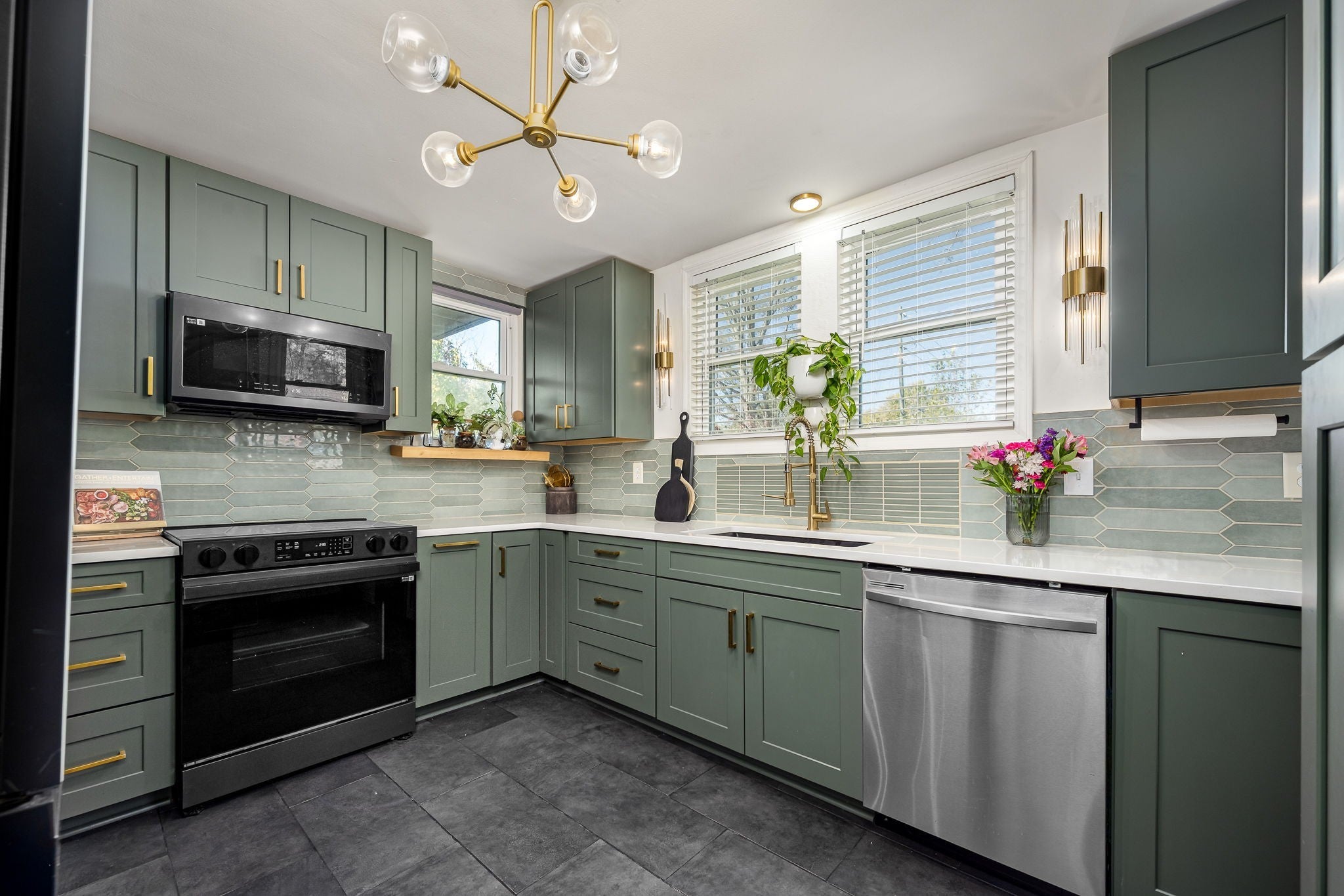 - Electric Oven, Electric Range, Dishwasher, Microwave, Refrigerator, Stainless Steel Appliance(s)