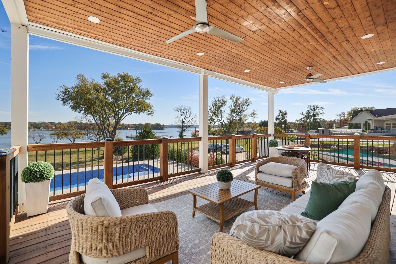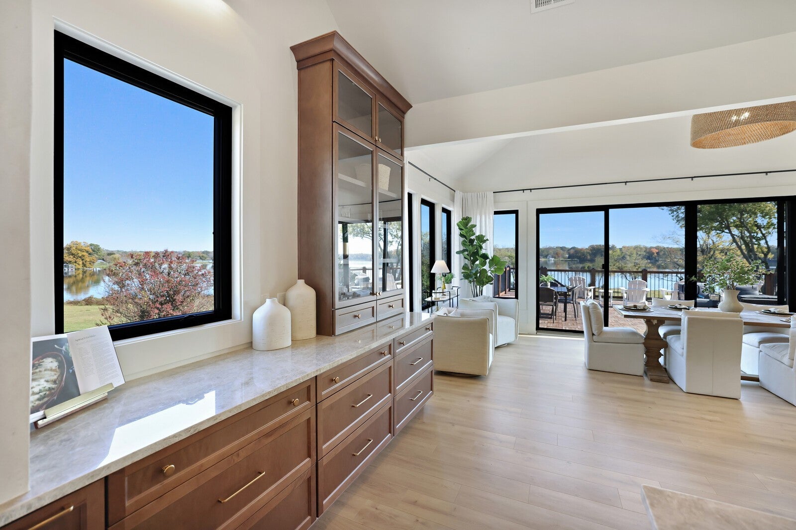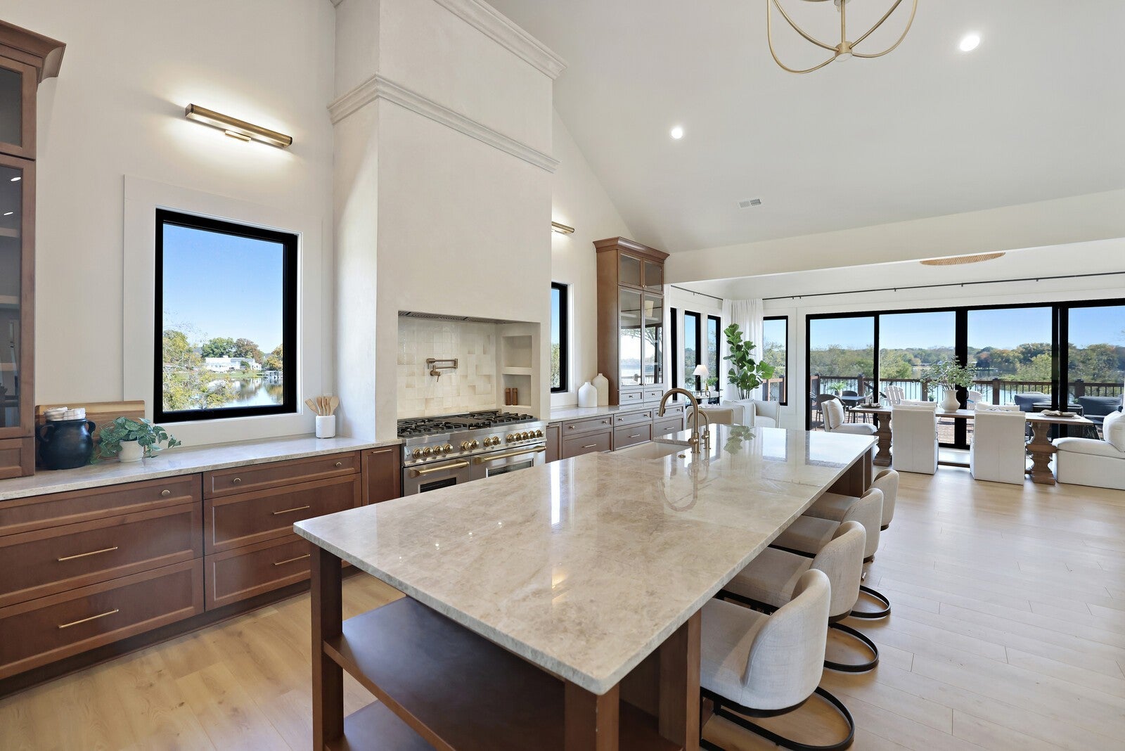 Welcome to this fully remodeled and expanded lakefront estate, which offers one of the most captivating views on Old Hickory Lake! Enjoy breathtaking sunrises from any of the three outdoor entertaining spaces—two private balconies off the primary suites and a stunning upper terrace built over the garage, featuring massive sliding glass doors that open to panoramic lake views. Every inch of this home was professionally designed with luxury in mind, showcasing high-end cabinetry, designer lighting, custom tile, and premium plumbing fixtures. The chef’s kitchen impresses with Taj Mahal quartzite countertops, custom cabinetry, vaulted ceilings, a handcrafted hood, a 60-inch professional range, and a matching 60-inch refrigerator. Both primary suites include spa-inspired bathrooms, walk-in closets, and private balconies overlooking the water. The walkout basement offers a full kitchenette, wet bar, gas fireplace, and seamless access to the in-ground pool that overlooks the lake—perfect for entertaining or relaxing with guests. Additional highlights include Cat 6 wiring to every room, two storm shelters, washer/dryer hookups in both suites, & a separate laundry room that services the basement. Outside, the newly built three-car garage offers a pull-through bay, complemented by a full wrap-around driveway for convenience. And yes, this home has a private boat dock that has just been redone! Blending timeless design, modern technology, and resort-style amenities, this home delivers a rare opportunity to experience luxury lakefront living at its finest.
