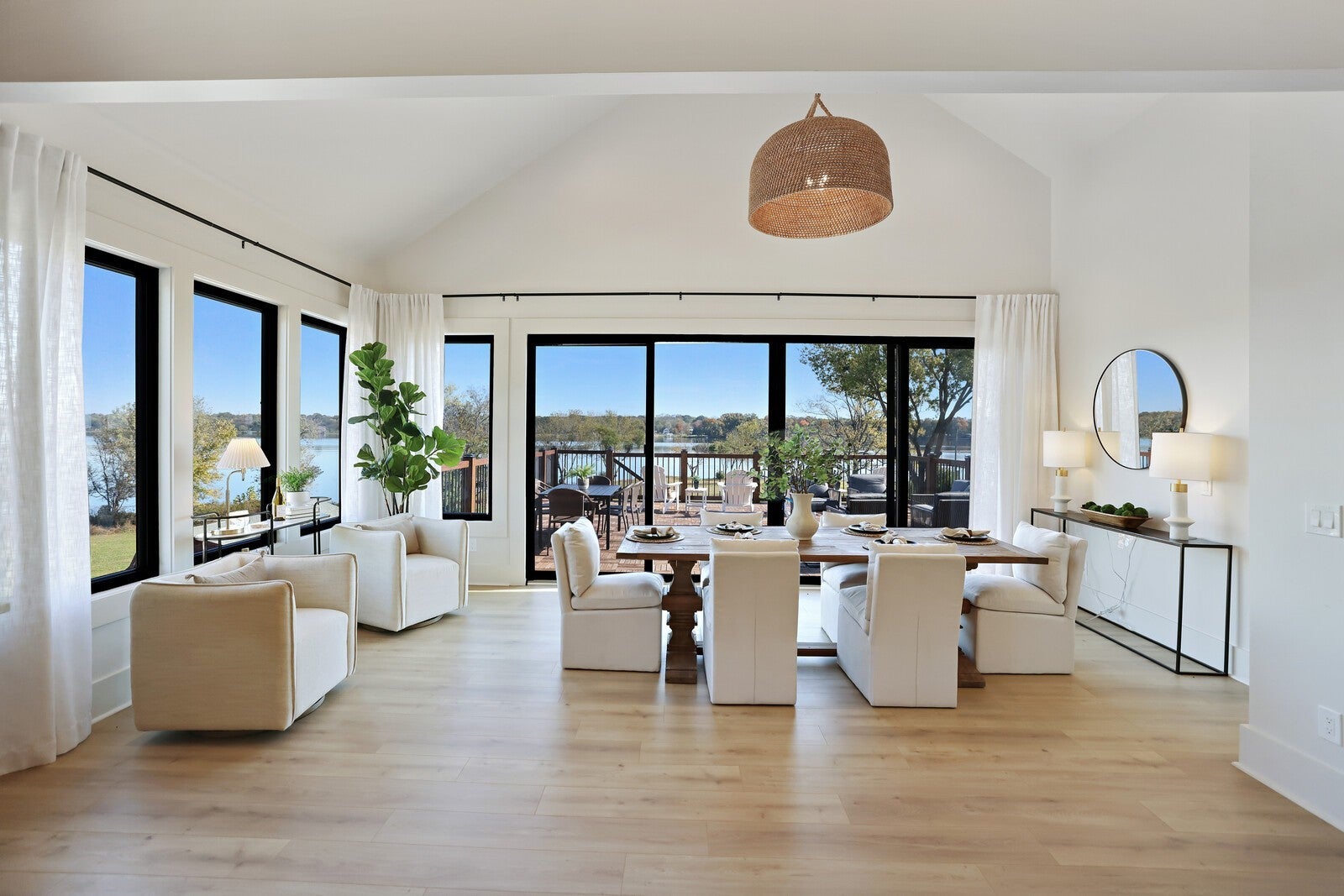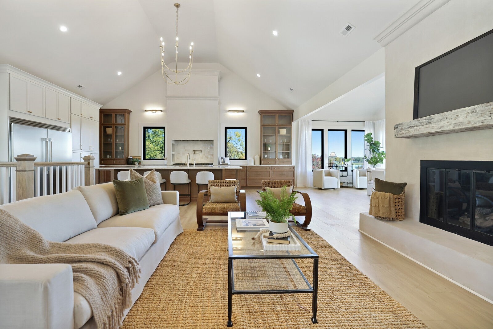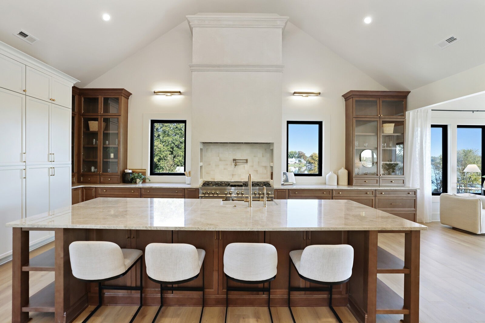 Welcome to this fully remodeled and expanded lakefront estate, which offers one of the most captivating views on Old Hickory Lake! Enjoy breathtaking sunrises from any of the three outdoor entertaining spaces—two private balconies off the primary suites and a stunning upper terrace built over the garage, featuring massive sliding glass doors that open to panoramic lake views. Every inch of this home was professionally designed with luxury in mind, showcasing high-end cabinetry, designer lighting, custom tile, and premium plumbing fixtures. The chef’s kitchen impresses with Taj Mahal quartzite countertops, custom cabinetry, vaulted ceilings, a handcrafted hood, a 60-inch professional range, and a matching 60-inch refrigerator. Both primary suites include spa-inspired bathrooms, walk-in closets, and private balconies overlooking the water. The walkout basement offers a full kitchenette, wet bar, gas fireplace, and seamless access to the in-ground pool that overlooks the lake—perfect for entertaining or relaxing with guests. Additional highlights include Cat 6 wiring to every room, two storm shelters, washer/dryer hookups in both suites, & a separate laundry room that services the basement. Outside, the newly built three-car garage offers a pull-through bay, complemented by a full wrap-around driveway for convenience. And yes, this home has a private boat dock that has just been redone! Blending timeless design, modern technology, and resort-style amenities, this home delivers a rare opportunity to experience luxury lakefront living at its finest.