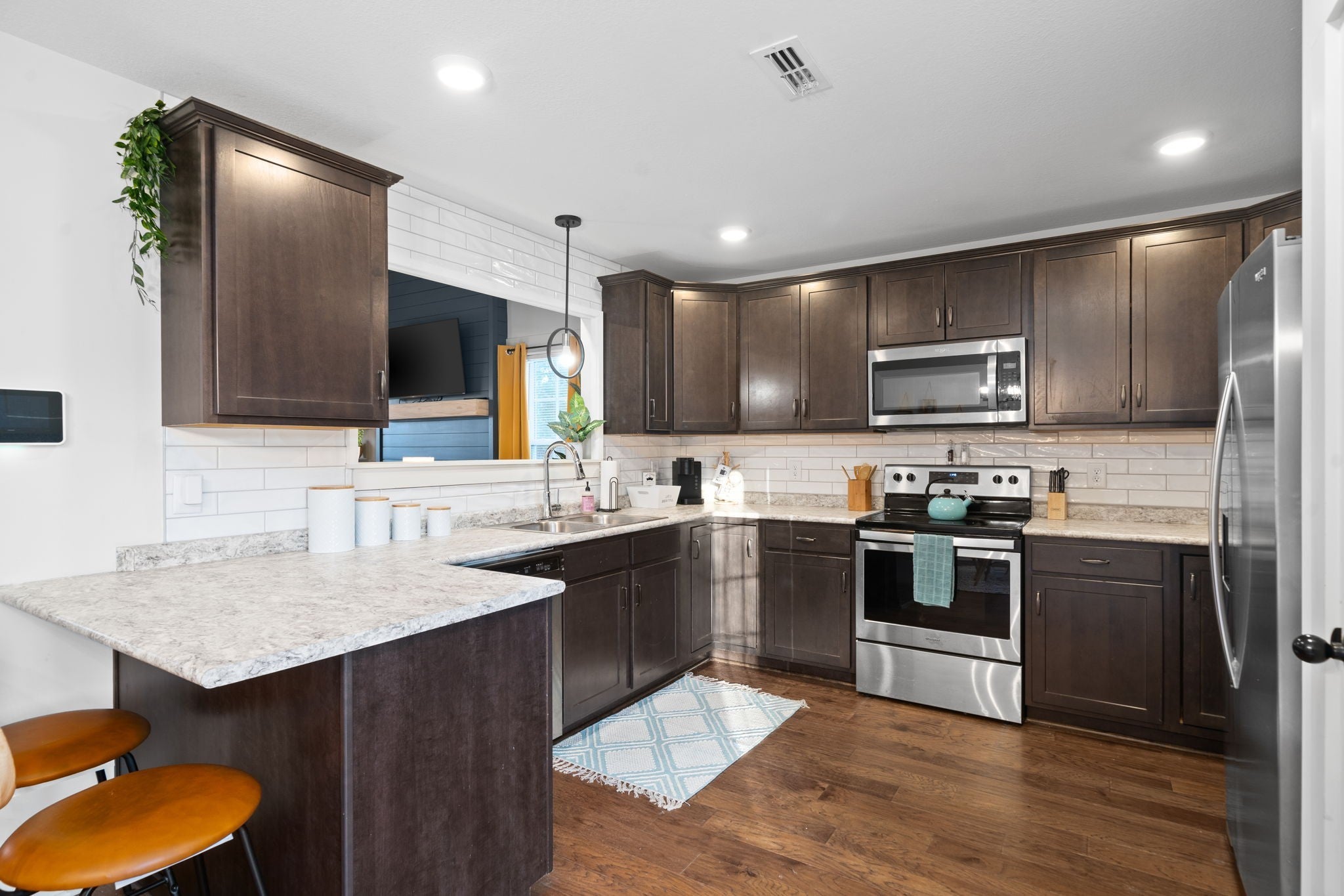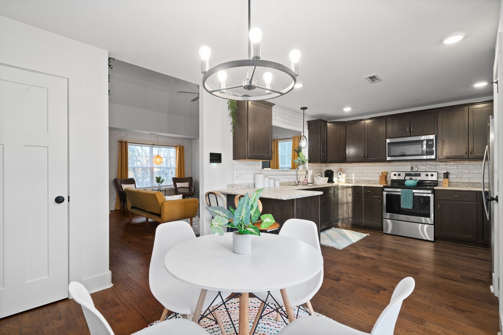 - Oven, Range, Dishwasher, Disposal, Dryer, Microwave, Refrigerator, Stainless Steel Appliance(s), Washer