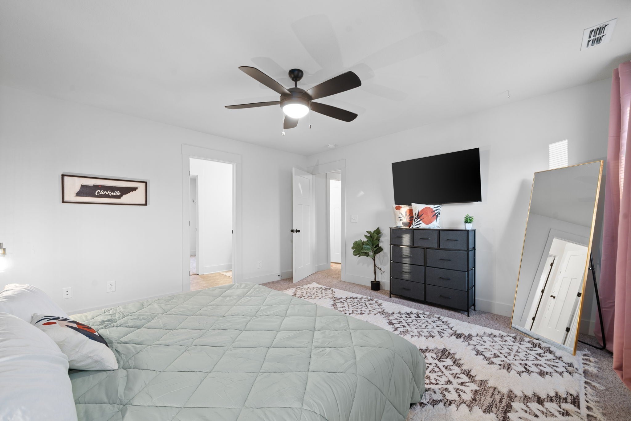 LOCATION LOCATION! Close to Fort Campbell and shopping, with no HOA! Tucked away in an established neighborhood surrounded by mature trees, this home offers a peaceful and private setting. Enjoy the spacious backyard, perfect for relaxing or entertaining! Inside, you’ll find an inviting open floor plan with soaring ceilings, a large kitchen, and a charming catwalk that adds character. The primary suite features a walk-in closet and a full bathroom with double vanities, providing plenty of comfort and convenience.
