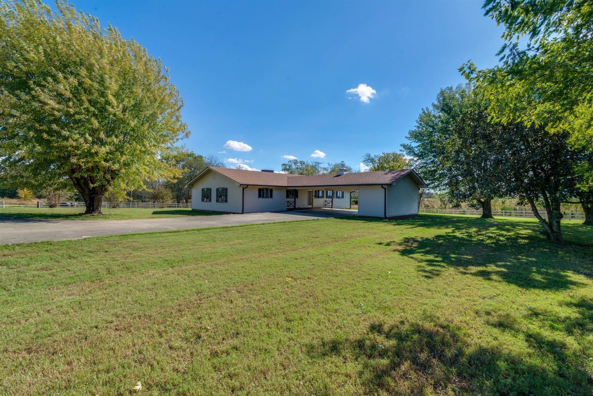 The BEST LOCATION, the BEST LAND and the BEST FUN!! 2 Homes, a Shop, and a Playhouse for fun! Beautiful, lush pasture for your Horses with a year around Creek! 3 Kitchens, 3 Bedrooms, 3 full Baths, and 2 Half Baths. Lots of room for your BIG BOY TOYS with 2 carport, 2 car Garage, Plus a Huge 42x63 Shop with Concrete Floor, Office, and side Awning! All Buildings are well cared for and in THE BEST CONDITION!! 1100' feet of concrete Driveway and 2,200' feet of vinyl Fencing. Guest House 37'x20', Playhouse 32'x50' HV/AC, and Main House 2,000 Sq FT Unrestricted & No sign on property. There is a Home, Guest House and a Party House ! All 3 have Kitchens, with Refrigerators, Microwaves, Kitchen Sinks, and Appliances Stay ! Paint and carpet allowance on Main Home only with agreed Sales Price.