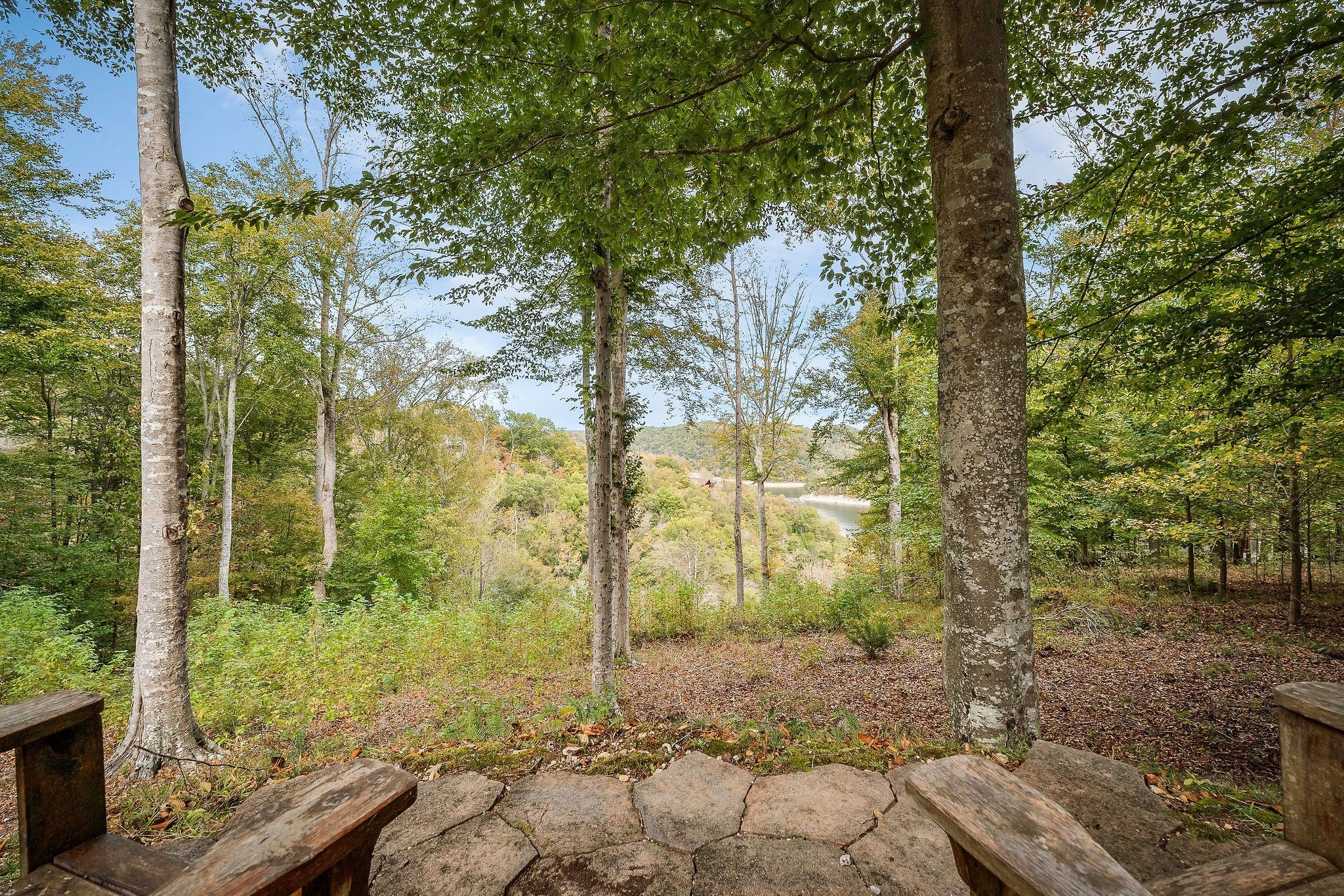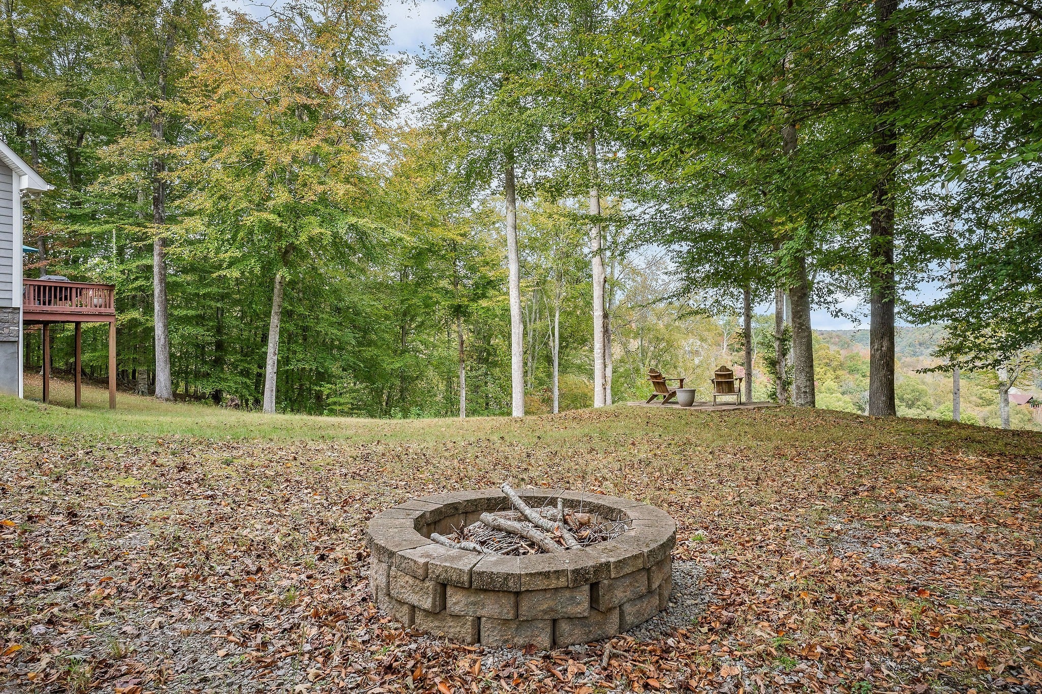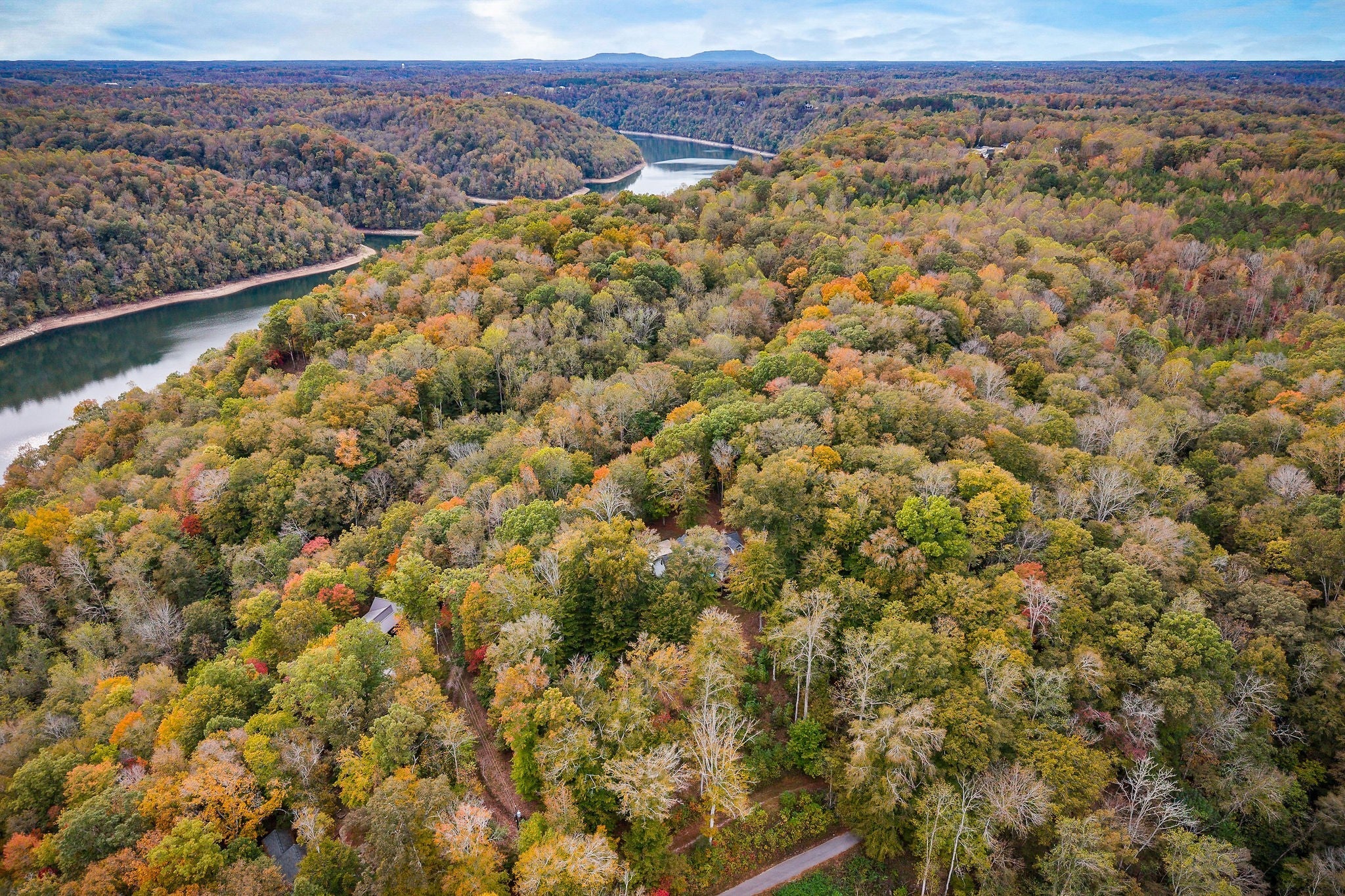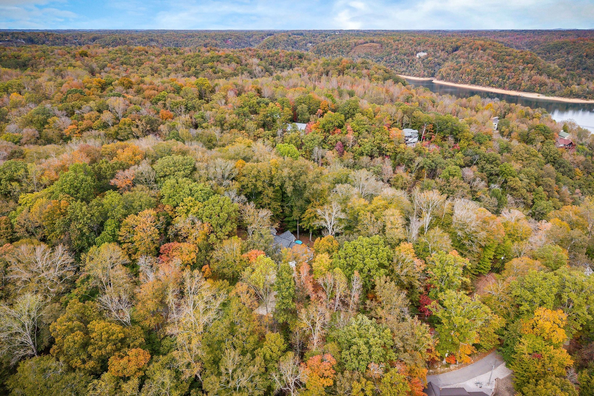 This property features almost 4 acres with a clear, unrestricted view of Center Hill Lake and includes 11 total lots—six connecting and five located across the road. The home offers three bedrooms and three bathrooms, with two bedrooms and two bathrooms on the main floor and an additional bedroom, bathroom, and sitting area upstairs that opens to the main living room below. The full basement is heated and cooled, offering endless possibilities for expansion, storage, or recreation. The main floor includes a large eat-in kitchen with a semi-open layout to the living area, a sunroom connecting to the deck, and a spacious primary suite with two walk-in closets and direct deck access. The home provides beautiful lake views from both the main level and the basement. Outdoor spaces include a large deck, separate sitting areas, and a dedicated fire pit area to enjoy the setting. Additional features include an 8-inch poured concrete basement wall, wood-burning fireplaces, hardwood, carpet, and linoleum flooring, and a concrete driveway with gated entry at the end of the drive as well as a gate at the community entrance. The roof is approximately five years old, and the 3-ton HVAC unit is about four years old. The property sits on a gated road and offers both privacy and exceptional lake views.