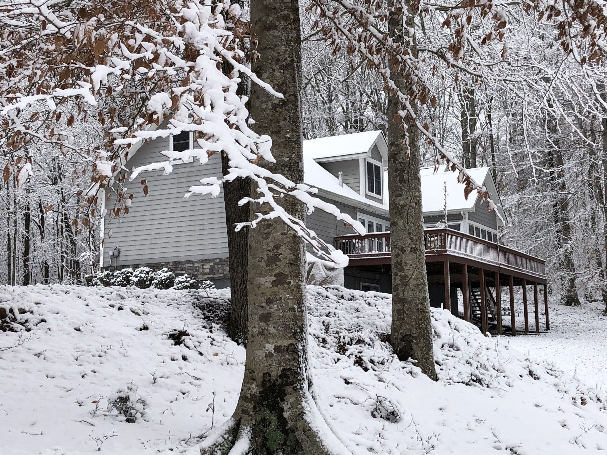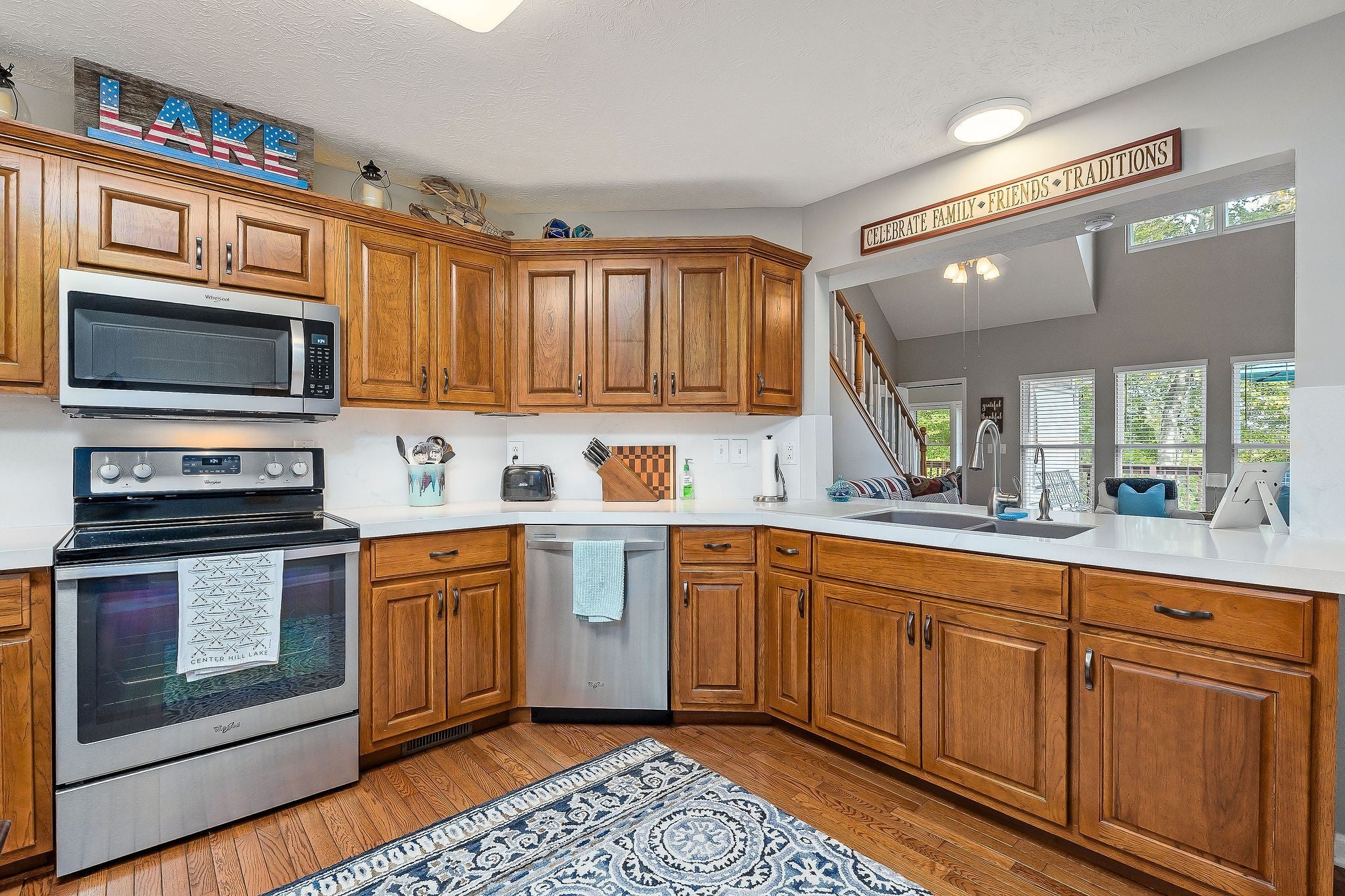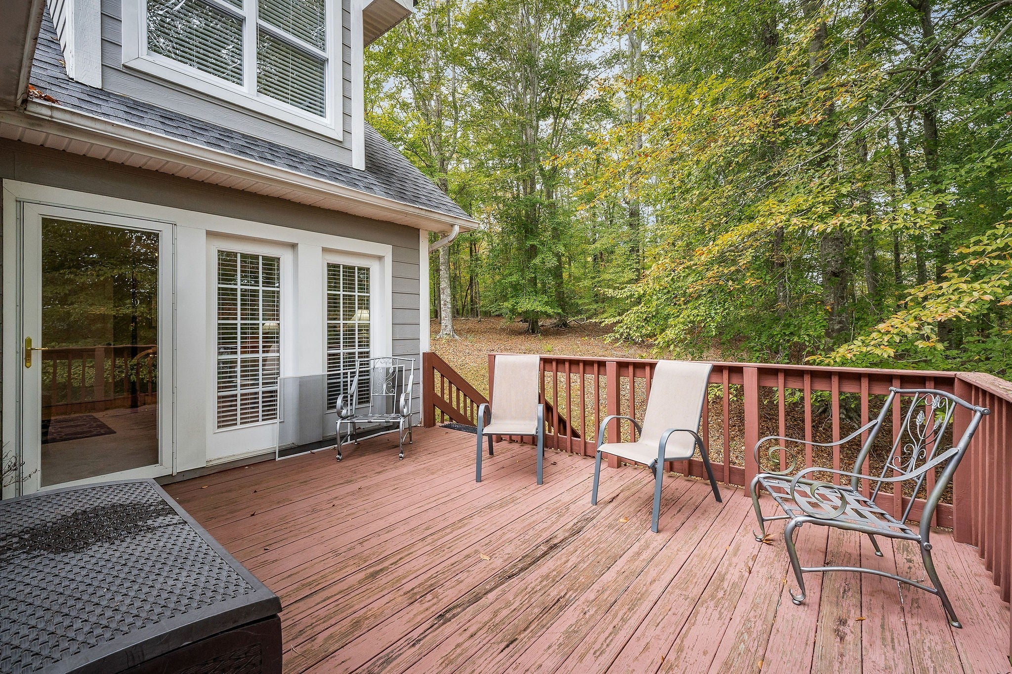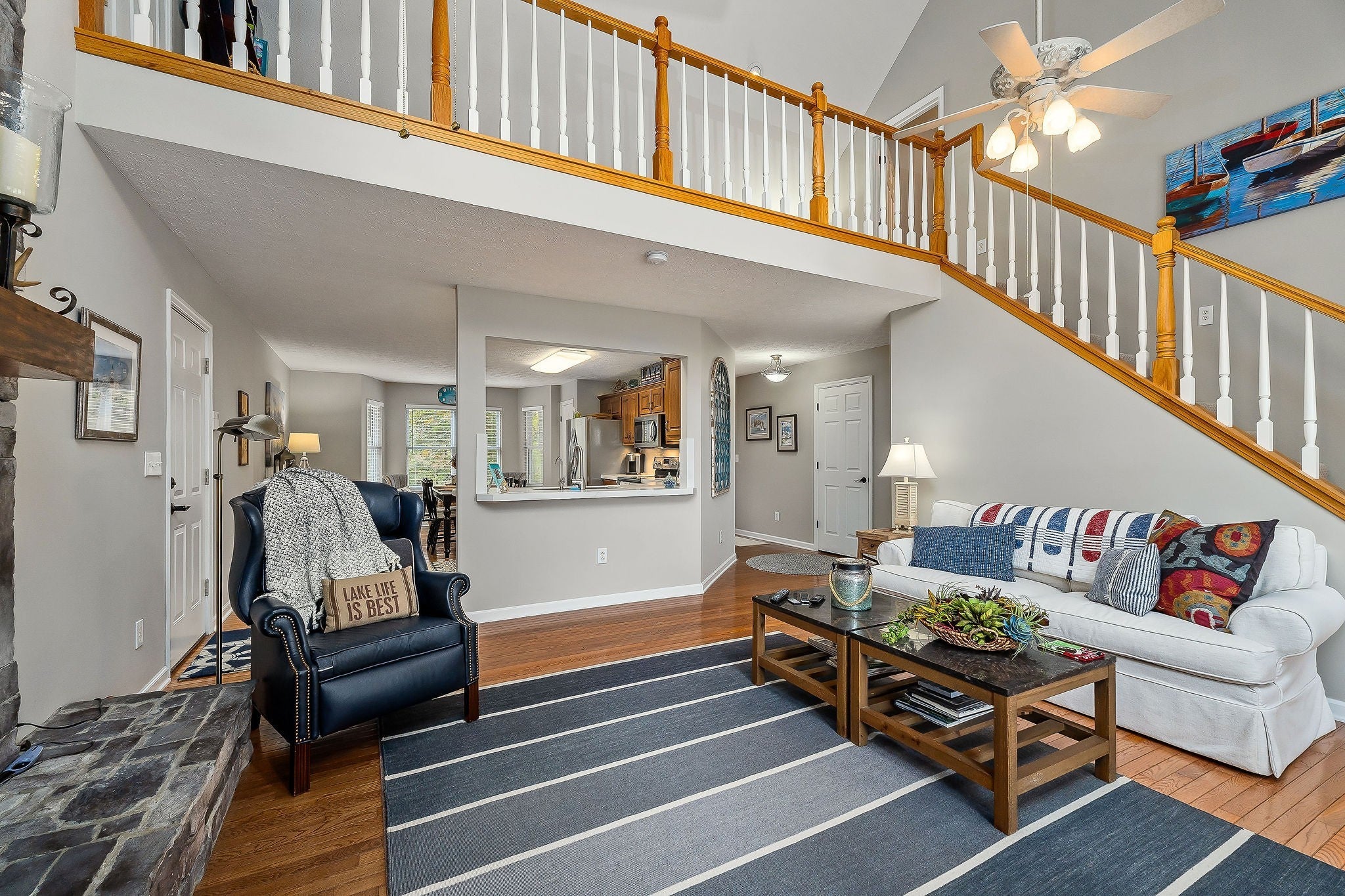 This property features almost 4 acres with a clear, unrestricted view of Center Hill Lake and includes 11 total lots—six connecting and five located across the road. The home offers three bedrooms and three bathrooms, with two bedrooms and two bathrooms on the main floor and an additional bedroom, bathroom, and sitting area upstairs that opens to the main living room below. The full basement is heated and cooled, offering endless possibilities for expansion, storage, or recreation. The main floor includes a large eat-in kitchen with a semi-open layout to the living area, a sunroom connecting to the deck, and a spacious primary suite with two walk-in closets and direct deck access. The home provides beautiful lake views from both the main level and the basement. Outdoor spaces include a large deck, separate sitting areas, and a dedicated fire pit area to enjoy the setting. Additional features include an 8-inch poured concrete basement wall, wood-burning fireplaces, hardwood, carpet, and linoleum flooring, and a concrete driveway with gated entry at the end of the drive as well as a gate at the community entrance. The roof is approximately five years old, and the 3-ton HVAC unit is about four years old. The property sits on a gated road and offers both privacy and exceptional lake views.