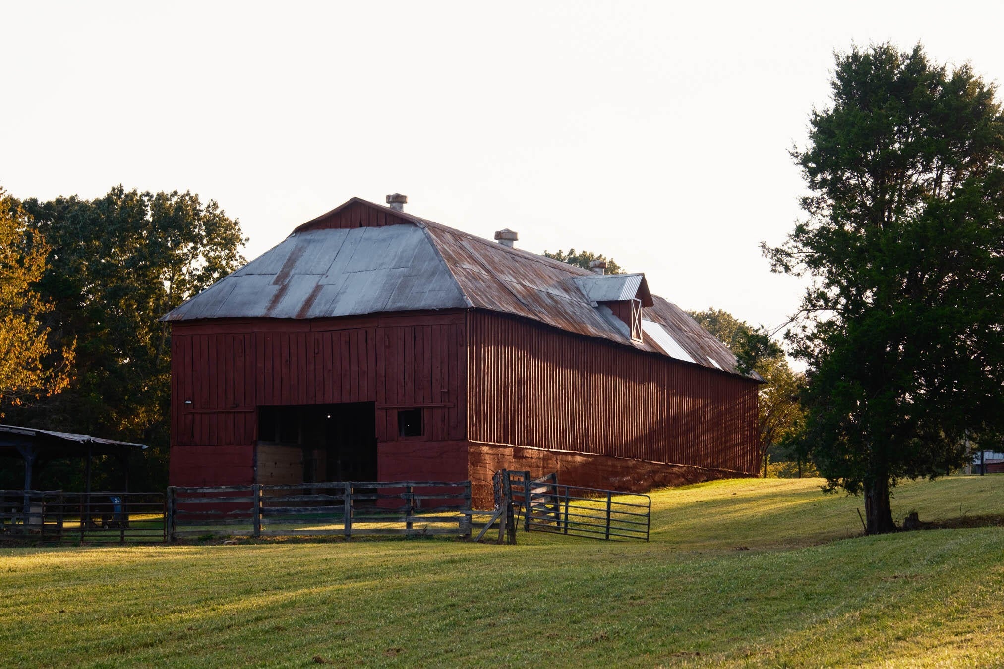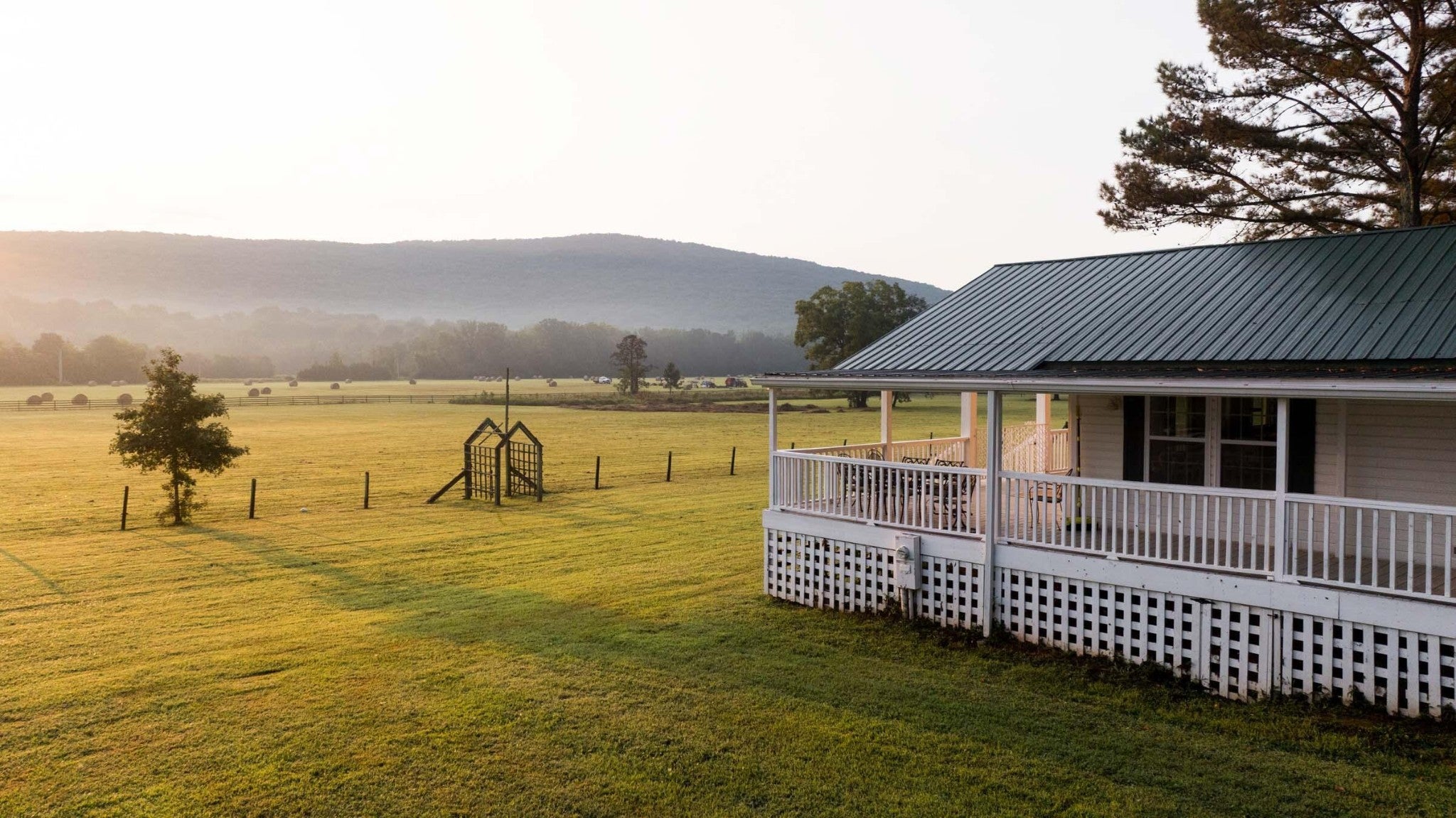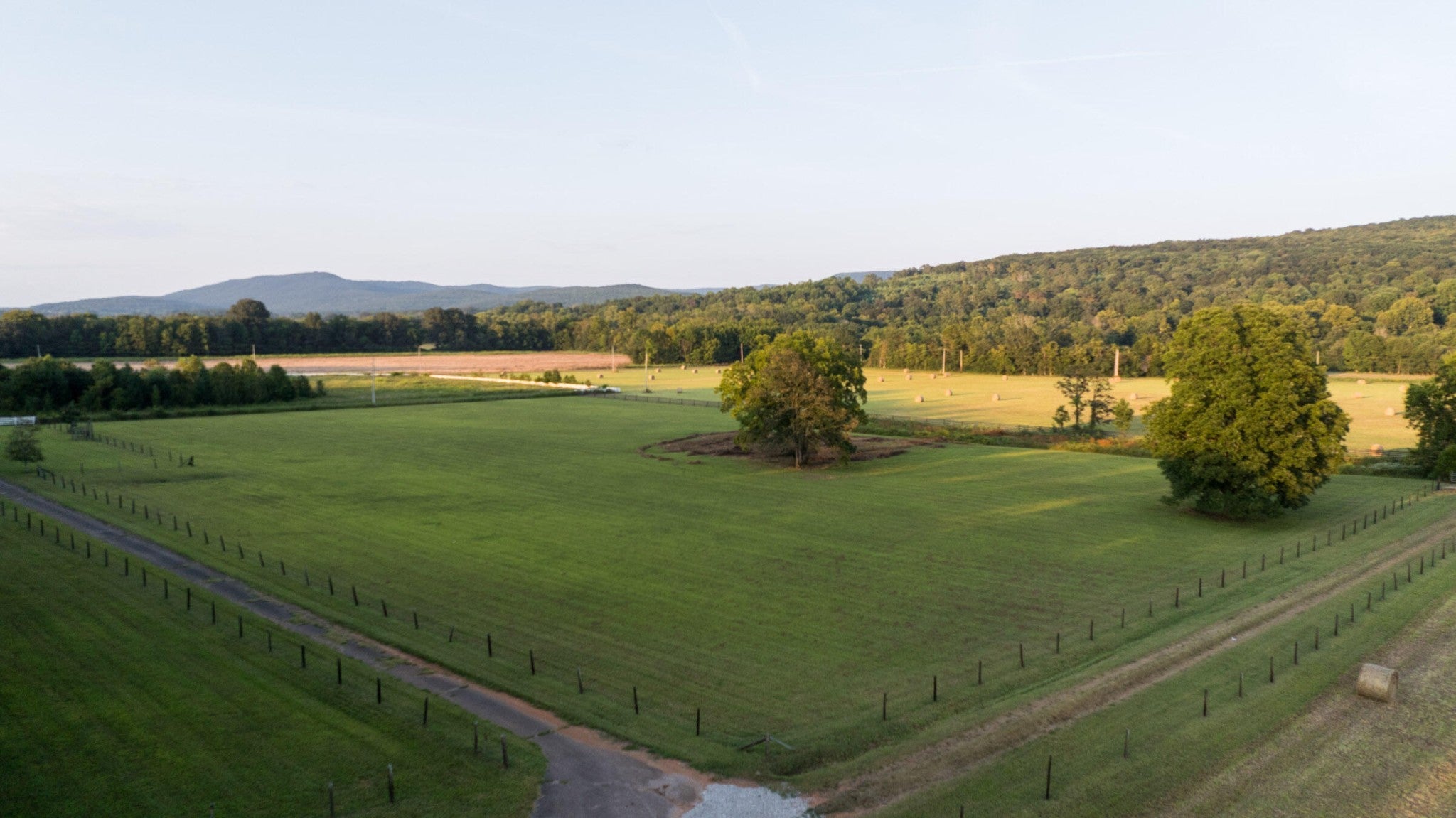 Pleasant Places Farm is a 117-acre retreat in Madison County, Alabama, just 20 minutes from Huntsville. It features open pastures, hardwood forests, and mountain views, with over a third-mile of Hurricane Creek frontage. The property is ideal for recreation, equestrian activities, or country living. The remodeled 2,067 sq ft Porch House offers four bedrooms, two bathrooms, and an open plan with high-end appliances, plus a wraparound porch with pastoral and mountain views. A 35x100-foot barn with original heart pine ceilings includes eight horse stalls, a hay loft, tack room, and bathroom. Additional outbuildings support horses and livestock, including a pole barn, sheds, and fencing. Recreation is part of the landscape, with trails for horseback riding, ATV rides, and exploring diverse terrain. The fields and creek bottoms attract deer and turkey, while Hurricane Creek offers good fishing for bass and bluegill. The mix of pasture and woods enhances the land's beauty and usefulness. Pleasant Places Farm has three access points, public water, and versatile land, offering flexible development options. Its layout and utilities support various projects, from mini-farms and equestrian estates to residential communities. This makes it an appealing opportunity for both developers and private buyers. Pleasant Places Farm benefits from its proximity to vibrant Southeast cities. Huntsville, a hub of technology and culture, is just minutes away, with regional cities like Chattanooga, Birmingham, Nashville, and Atlanta all within a short drive. Huntsville International Airport is only 30 minutes from the farm. This offers a unique opportunity: a historic farm that combines natural beauty, modern amenities, and accessibility in a prime Southern location.