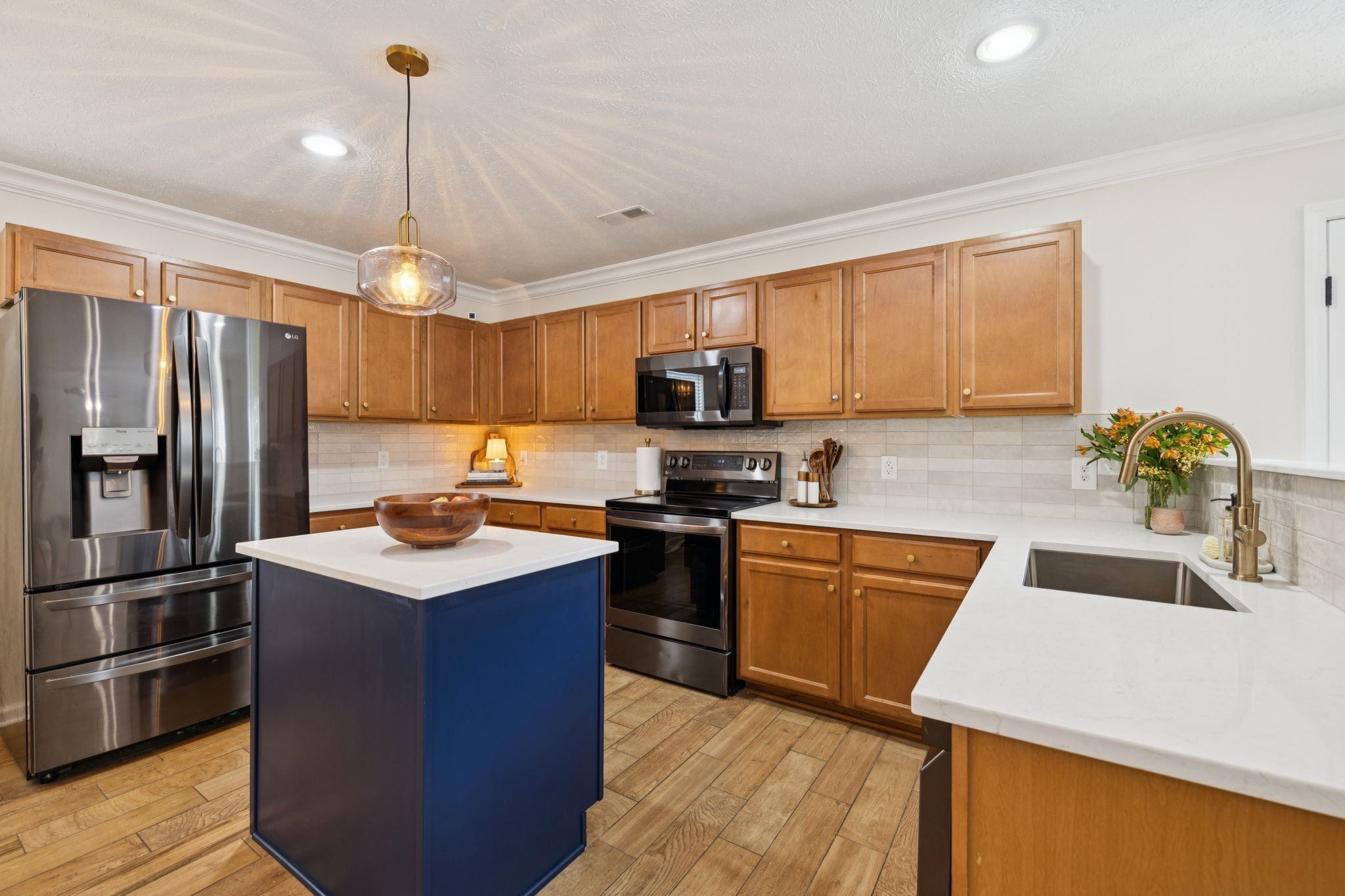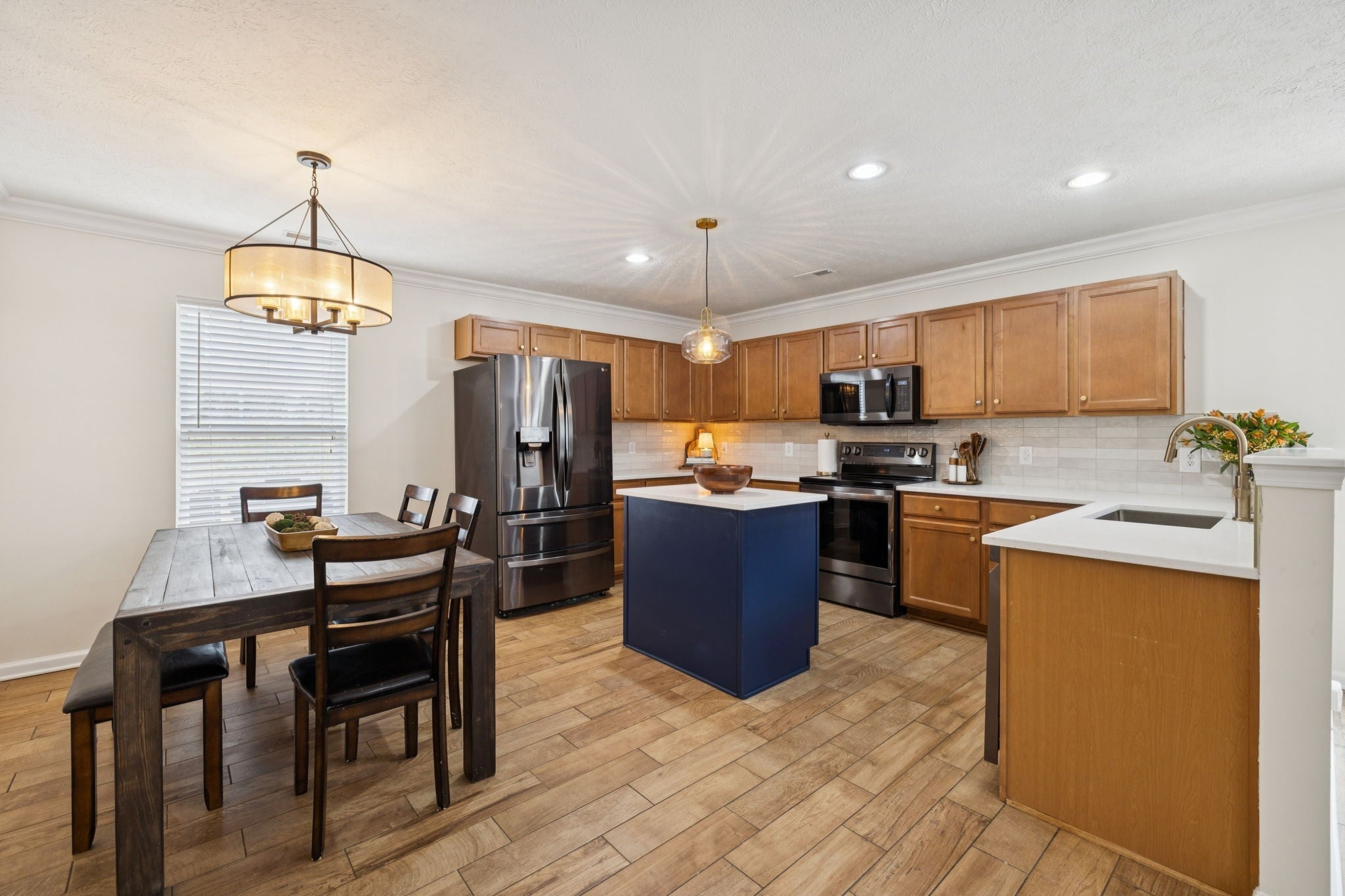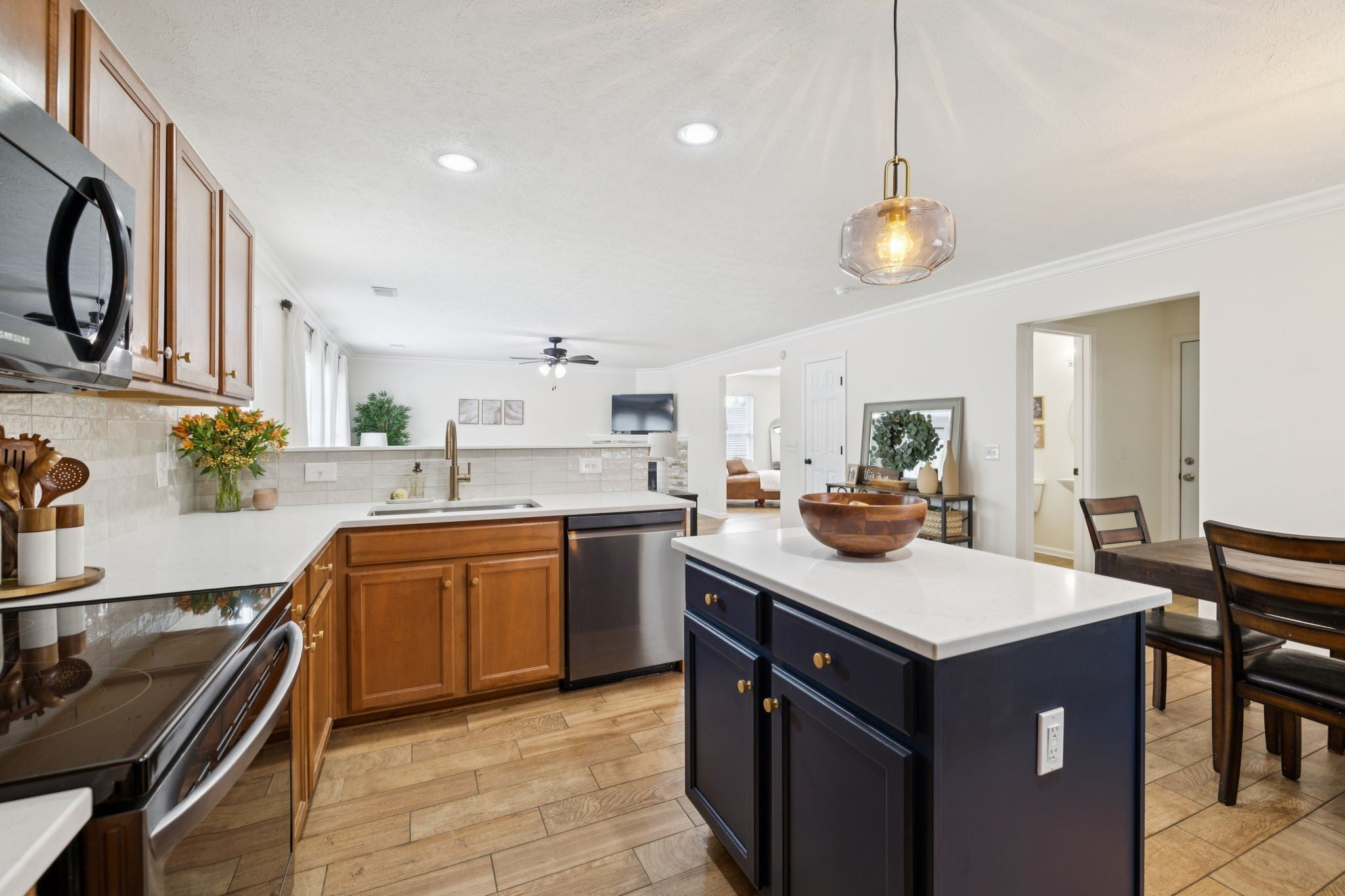 - Oven, Range, Dishwasher, Disposal, Microwave, Stainless Steel Appliance(s)
