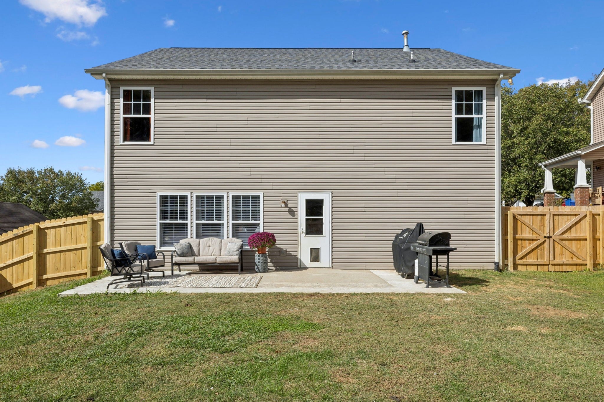 Introducing a beautifully renovated 4-bedroom home in the highly sought-after Mansker Farms Subdivision! This stunning property features fresh paint throughout, creating a bright and inviting atmosphere. The kitchen is complete with brand new quartz countertops, a custom backsplash, and stylish brushed gold fixtures, complemented by sleek stainless appliances. Step inside and discover all new flooring upstairs. The spacious primary bedroom features an updated primary bath with a new vanity and separate tub and shower. The home boasts a brand new water heater, newer HVAC and roof for comfortable living year-round. Enjoy your mornings on the wrap around covered front porch or the private backyard with serene views of the green space, surrounded by a brand new wood privacy fence. This prime location puts you just steps away from the community pool, clubhouse, playground, and tennis court—perfect for active lifestyles and family fun. Zoned for the desirable Madison Creek Elementary, minutes to Vietnam Veterans Parkway, Moss Wright Park, Publix, etc. Don’t miss the chance to make this exquisite home yours!