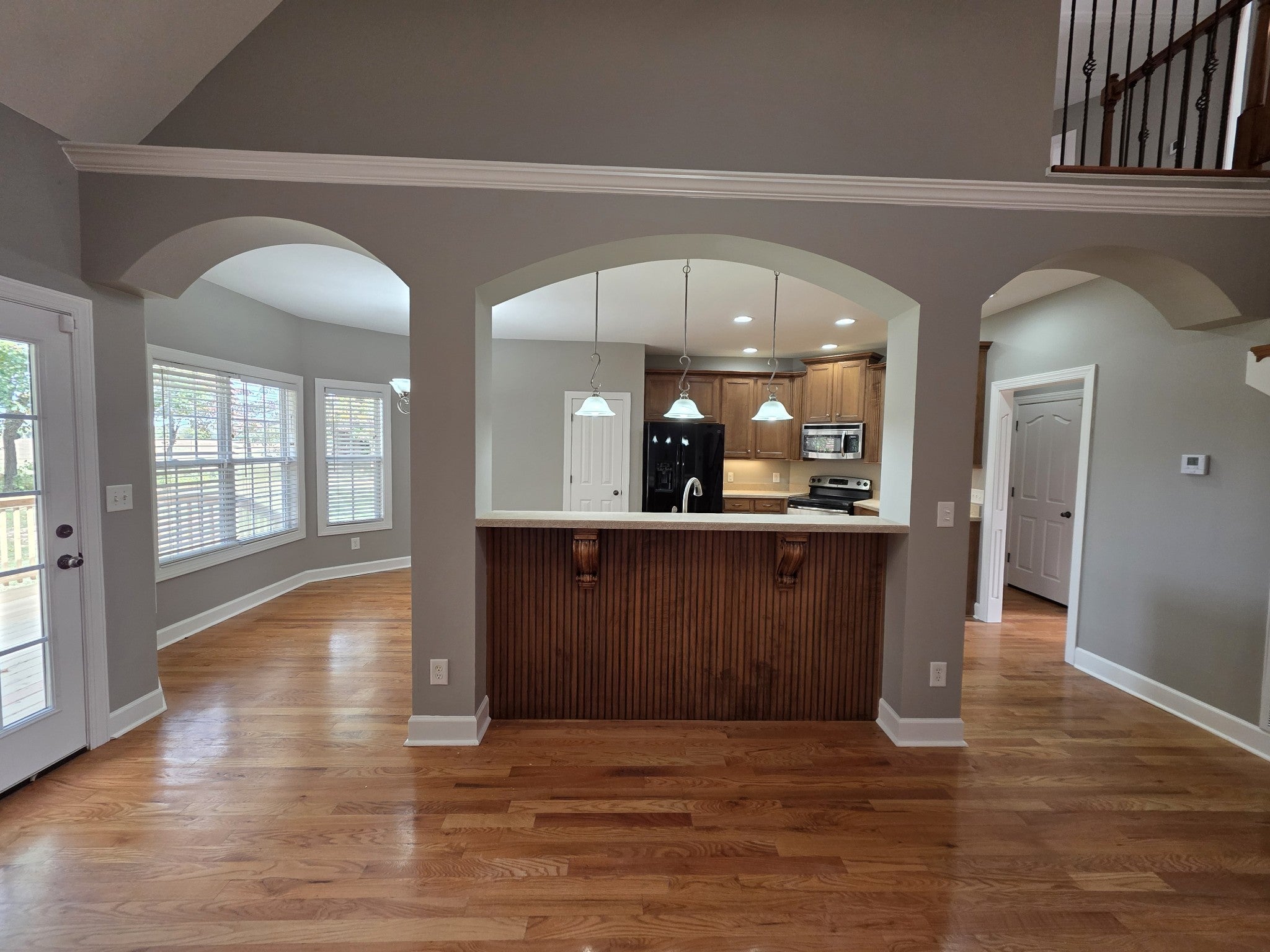 Welcome to 1224 Voyage Court – A Home That Truly Deserves a Name. This stunning estate is a harmonious blend of timeless craftsmanship and modern elegance. From the moment you step inside, you're greeted by exquisite crown molding and rich hardwood flooring that flow gracefully throughout the main level. Cathedral ceilings soar above, creating a sense of grandeur, while the formal dining room offers the perfect setting for memorable gatherings. The heart of the home is a masterfully designed kitchen, featuring gleaming granite countertops, a raised breakfast bar, and a charming arched pass-through that adds architectural interest and invites conversation. The open floor plan ensures seamless living and entertaining, with natural light dancing through every room. Retreat to the main-floor master suite, a sanctuary of sophistication with its triple trey ceiling, ceramic tile, and a luxurious soaking bathtub—ideal for unwinding after a long day. Step outside to the spacious deck, where you’ll be captivated by the peaceful views of lush greenery in the backyard. Whether you're sipping morning coffee or hosting evening soirées, this outdoor space is a true extension of the home’s charm. 1224 Voyage Court isn’t just a place to live—it’s a place to love. Come experience the warmth, beauty, and serenity that make this estate truly unforgettable.