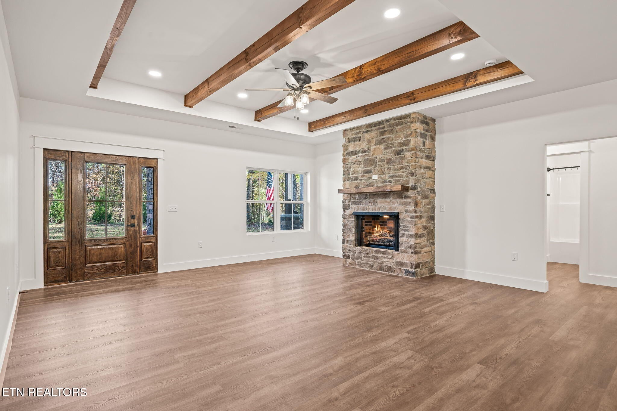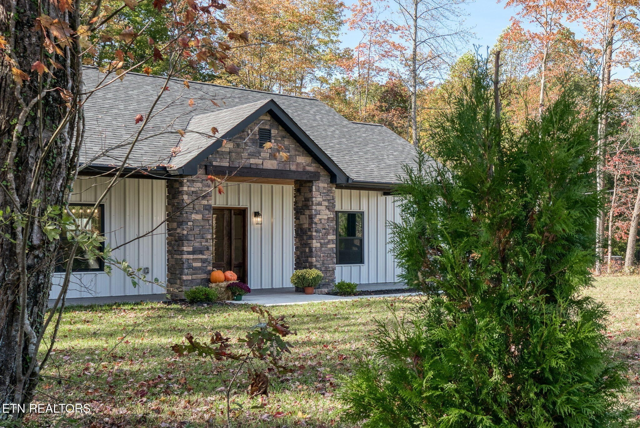 Mennonite Built Gorgeous Barndominium-Style Living in Cumberland Cove — Where Craftsmanship Meets Luxury Experience refined rustic elegance at 335 Rocky Top Rd — a brand-new luxury barndominium-style home perfectly placed on a level, acre in the peaceful Cumberland Cove community. Built in 2025 with exceptional attention to detail, this 3-bedroom, 2.5-bath residence with a flexible bonus room blends timeless craftsmanship with modern efficiency. Step inside and feel instantly at home with tall ceilings, beautiful custom trim, and striking rustic beams that capture the warmth and charm of true barndo design. The open-concept living area is anchored by a gas fireplace, flowing seamlessly into a stunning kitchen with a massive granite island, soft-close cabinetry, stainless-steel appliances, and a closet cleverly designed to serve as a pantry if needed. The primary suite is a true retreat, offering a walk-in tile shower, double vanities, and custom shelving for boutique-style storage. The bonus room provides flexibility to fit your lifestyle — ideal for a home office, gym, craft space, or guest room. A thoughtfully designed laundry room with built-in cabinets and sink adds both convenience and style. Outside, you'll find classic barndo-inspired curb appeal with metal and stone accents, a covered front porch, concrete driveway, and a two-car garage with walk-out door. Evergreens have been planted for privacy, paired with tasteful landscaping and a stone mailbox that complete the upscale presentation. Located just minutes from Monterey, Crossville, and Cookeville, and approximately 90 miles from both Knoxville and Nashville, this home delivers luxury, craftsmanship, and comfort in one exceptional package. Enjoy scenic hiking trails, waterfalls, and breathtaking bluff views right inside Cumberland Cove, and explore nearby destinations like the Muddy Pond Mennonite Community, Big South Fork National Park, Fall Creek Falls, Dale Hollow Lake, and Center Hill L