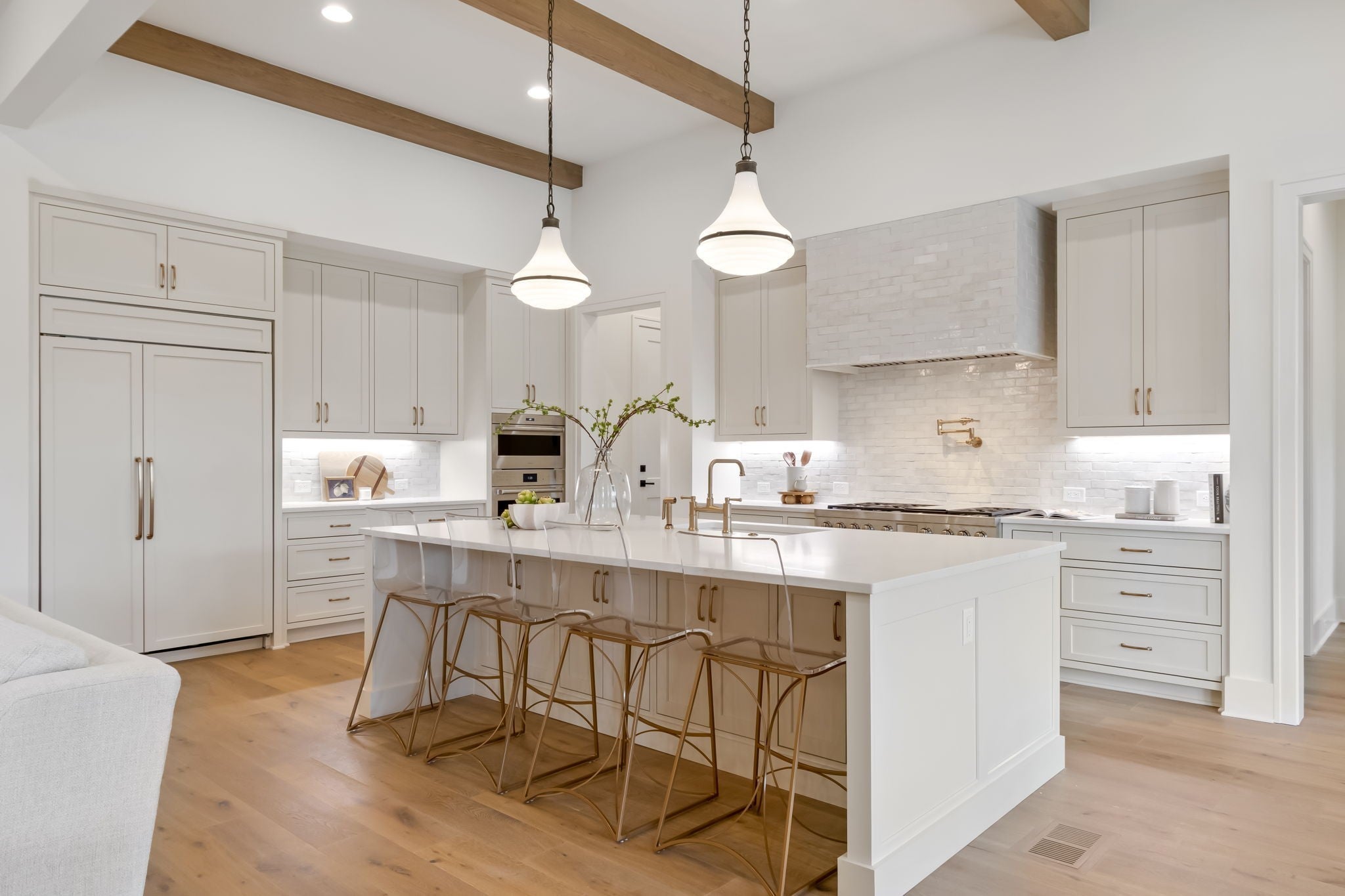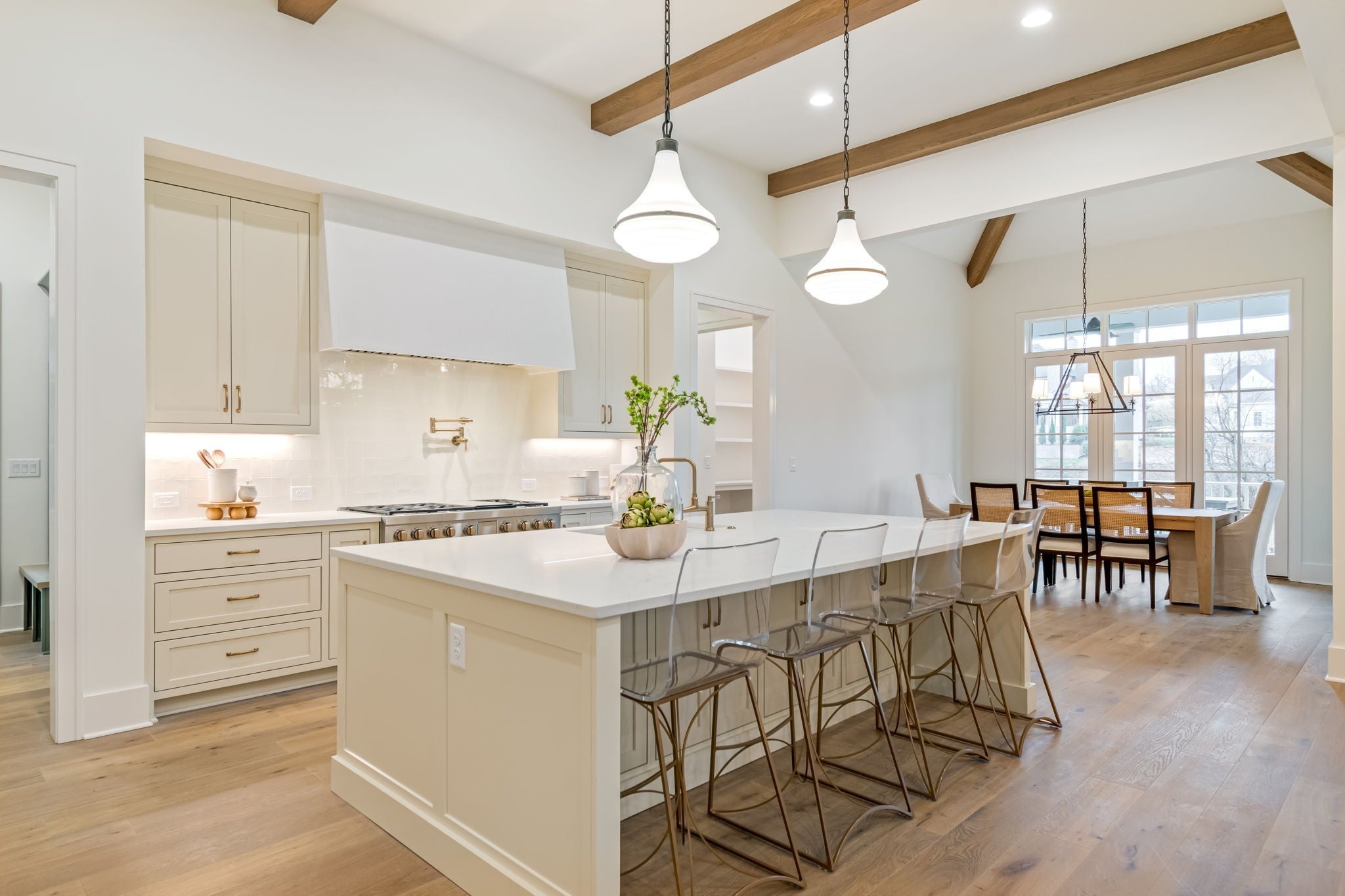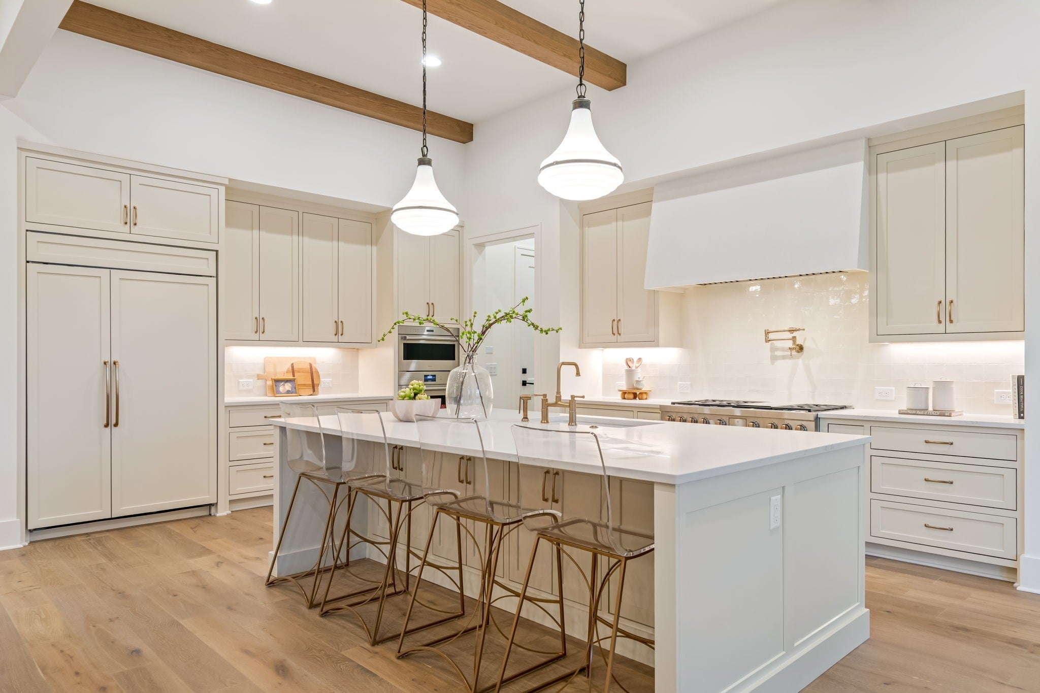 Welcome to your dream home in the heart of Brentwood! Presented by Ford Classic Homes.This stunning residence boasts a dramatic two-story entry foyer, a spacious kitchen equipped with state-of-the-art appliances, and a huge walk-in pantry. Enjoy the elegance of 12-foot ceilings with stained beam details in the great room, complete with a cozy wood-burning fireplace and custom cabinetry. The dining room impresses with its soaring 17-foot ceiling, while the main level features a private study with decorative glass doors with storage closet, a luxurious primary suite and a guest suite. Upstairs, discover a versatile bonus room with a full wet bar, sun deck, game room, and three en suite bedrooms. Step outside to a covered outdoor living area featuring another wood-burning fireplace and a grilling porch. 3-car garage and friend's entrance. A fabulous must-see home that perfectly blends luxury and comfort.