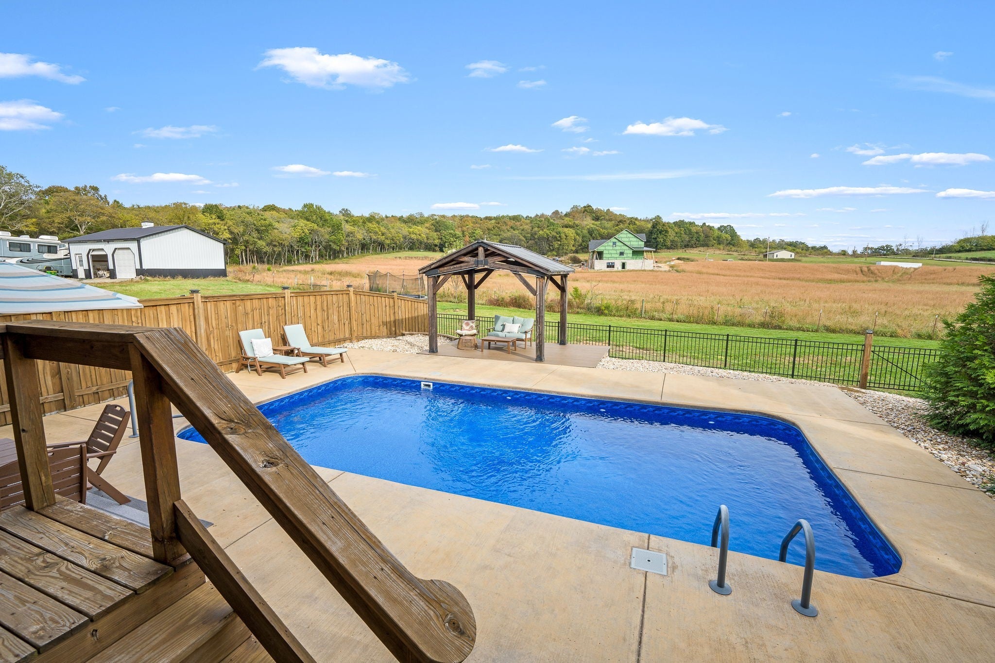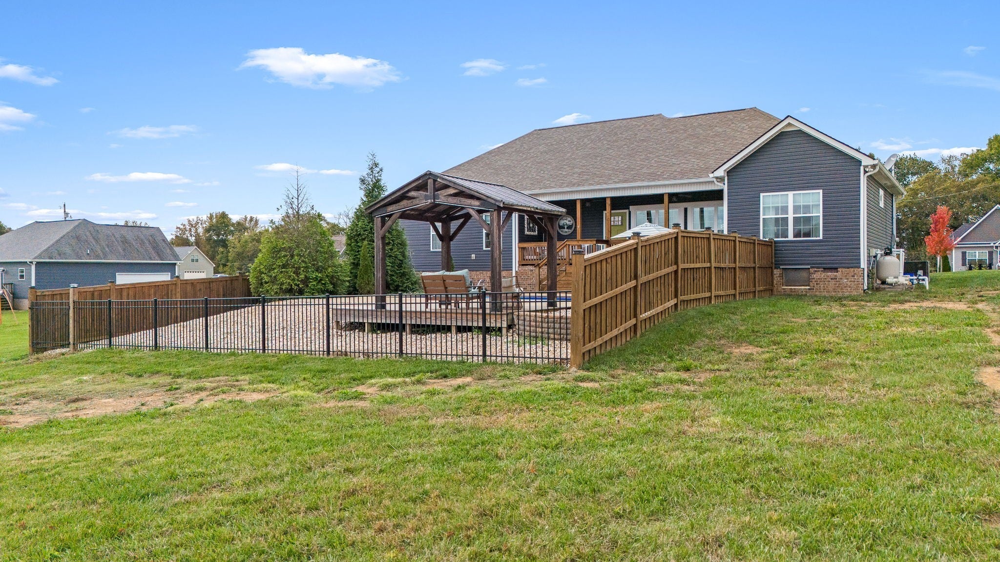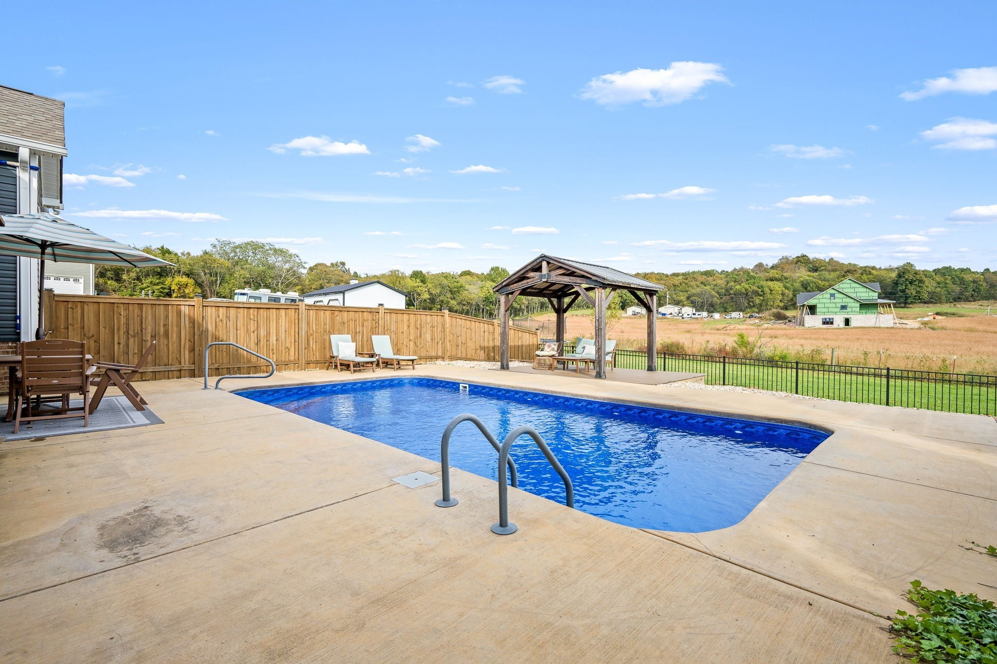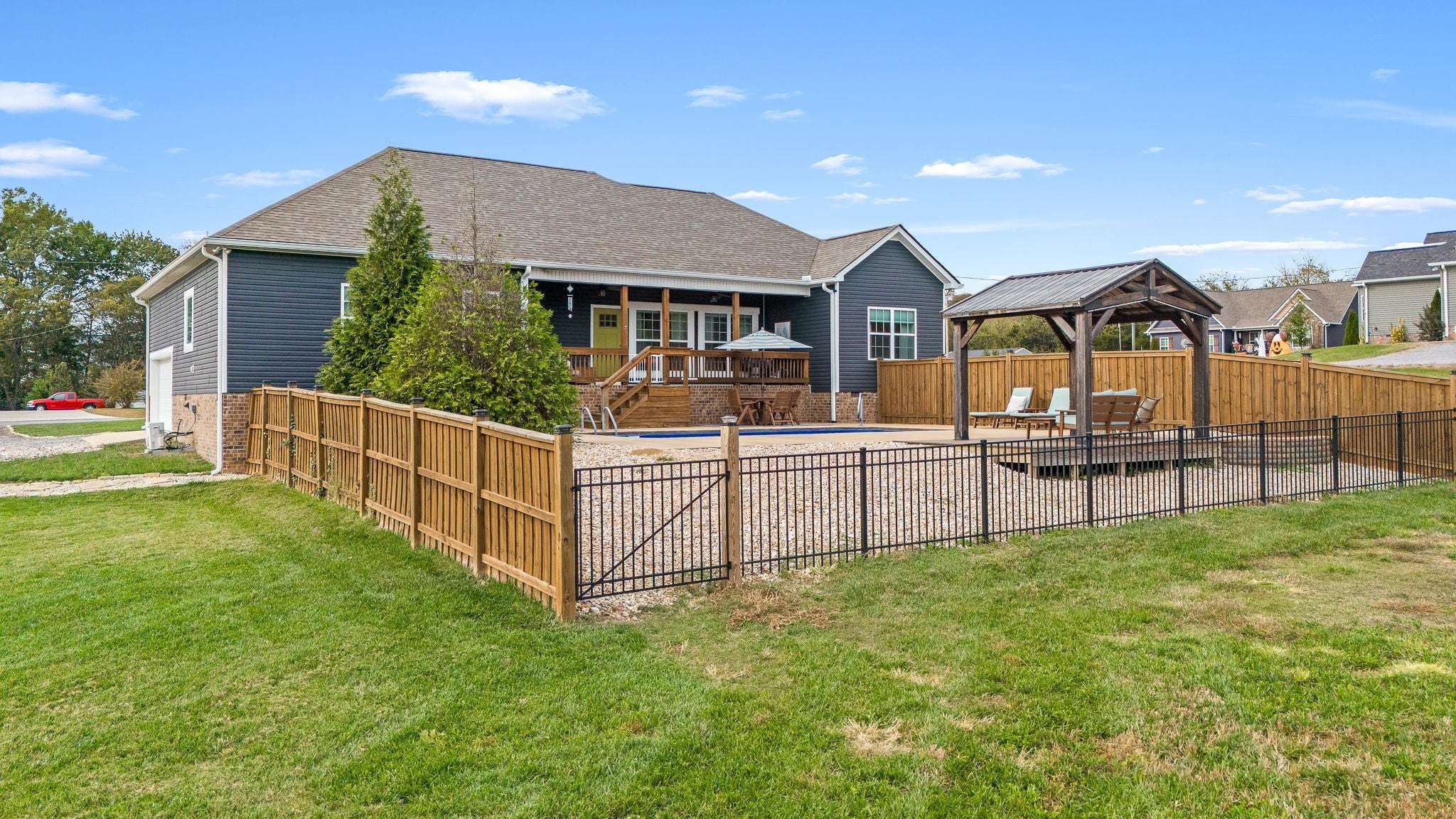 Custom-Built One-Level Home on Over an Acre with Scenic Views. Welcome to this beautifully maintained, custom-built one-level home offering peaceful views and thoughtful design throughout. Situated on a spacious 1.04-acre lot, this 3-bedroom, 2-bath residence features an open-concept floor plan perfect for both everyday living and entertaining. The inviting interior showcases hardwood and tile flooring, a stylish island kitchen with granite countertops, tile backsplash, and gas range, and abundant natural light. The primary suite is a true retreat, complete with a spa-like bathroom featuring a soaking tub, separate shower, and double vanities. Enjoy outdoor living on the covered front and back porches overlooking the fenced backyard, complete with an in-ground saltwater pool, gazebo, and room to relax or entertain. Additional highlights include a heated and cooled two-car garage, United Fiber internet availability, and quality craftsmanship throughout. Conveniently located just minutes from the interstate for easy commutes to Murfreesboro, Shelbyville, and Tullahoma, and close to the bypass for added accessibility—this home offers the perfect blend of comfort, privacy, and convenience.
