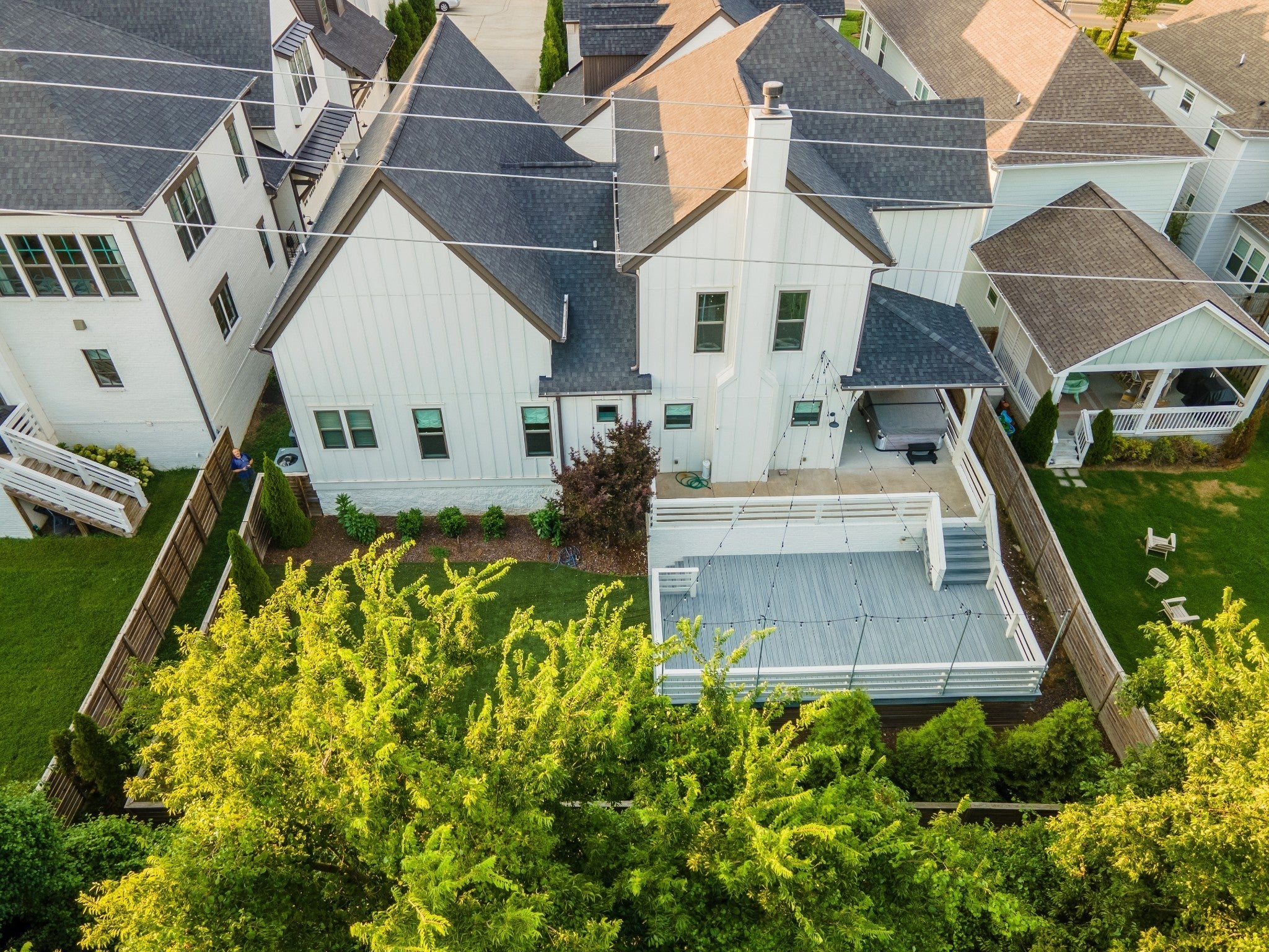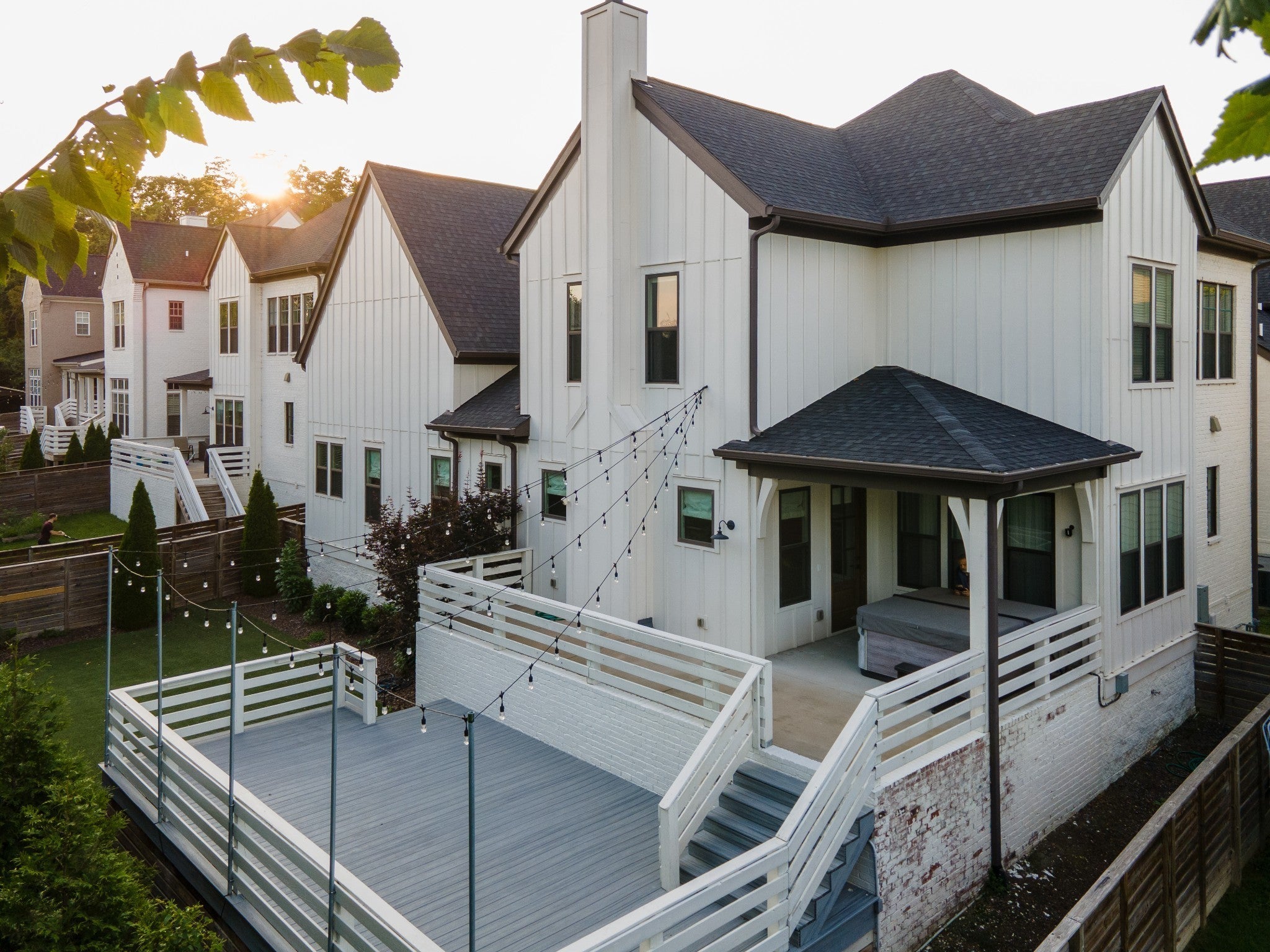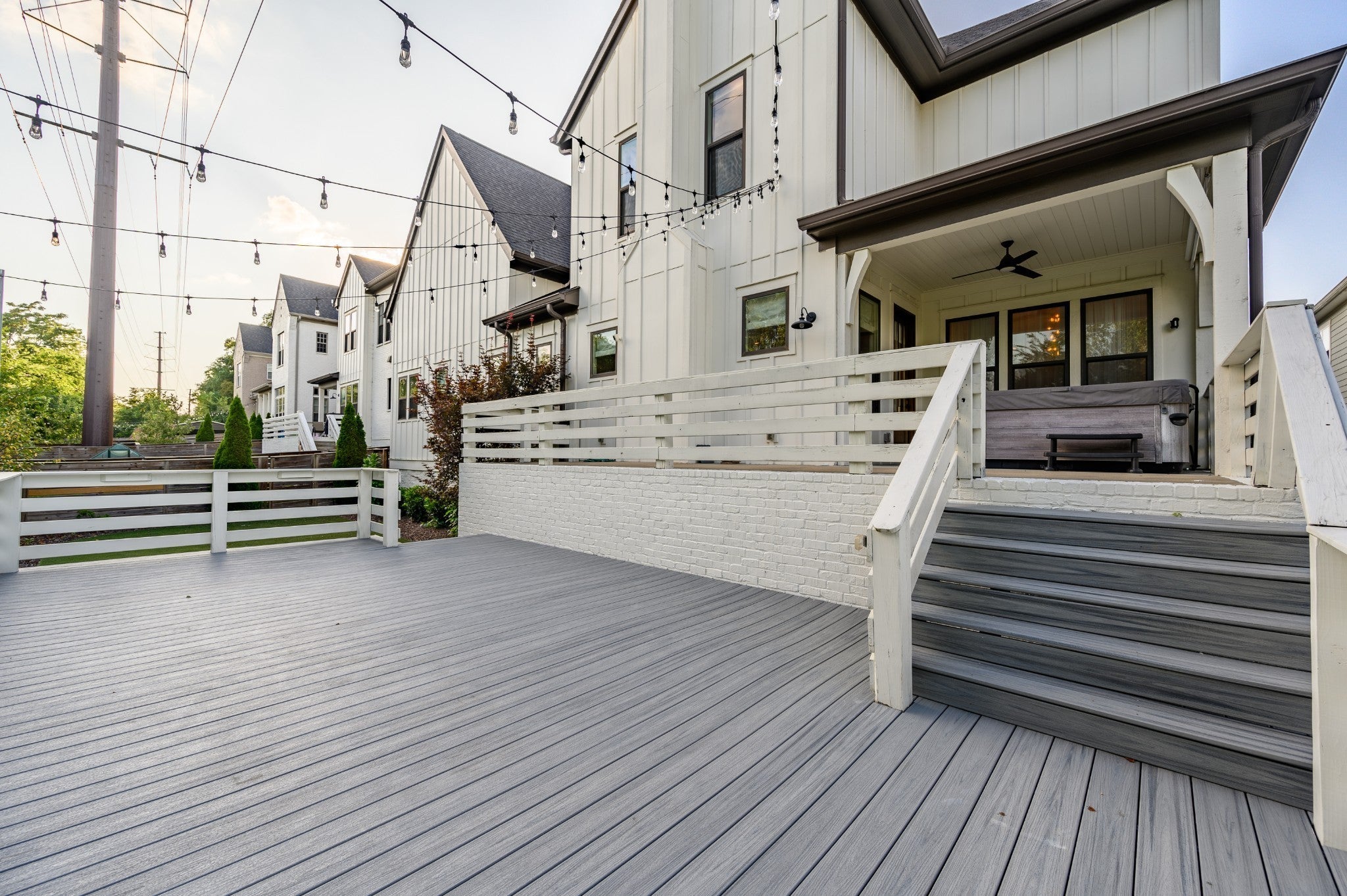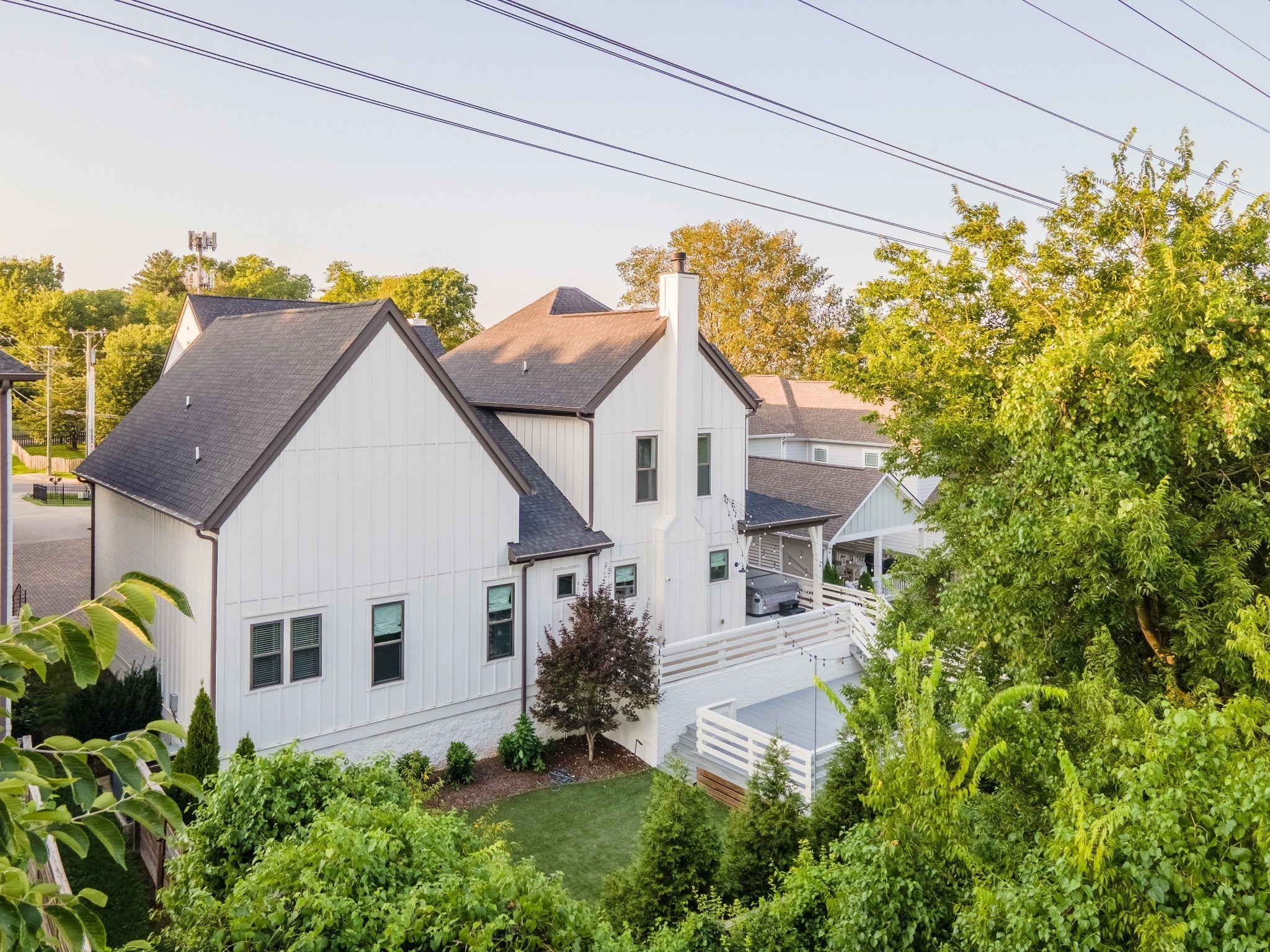 **LIKE-NEW, HIGH-END EXECUTIVE HOME WITH INCREDIBLE OUTDOOR ENTERTAINING IN IDEAL LOCATION** You'll fall in love with the large, open, sunny main-level living areas that flow onto the covered back porch and huge deck with cafe lights and a no-maintenance, artificial turf backyard. Hardwood flooring throughout main level including main-level primary suite with soaking tub and separate walk-in tiled shower. Upstairs is a bonus room flooded with beautiful natural light. Upstairs also has the three additional bedrooms and two additional bathrooms. One upstairs bedroom is a suite with wood floors and its own bathroom and its own private room that could be used as an office, media room, nursery, etc. Conveniently located minutes from 12 South and Downtown Nashville. Hot tub does not remain.