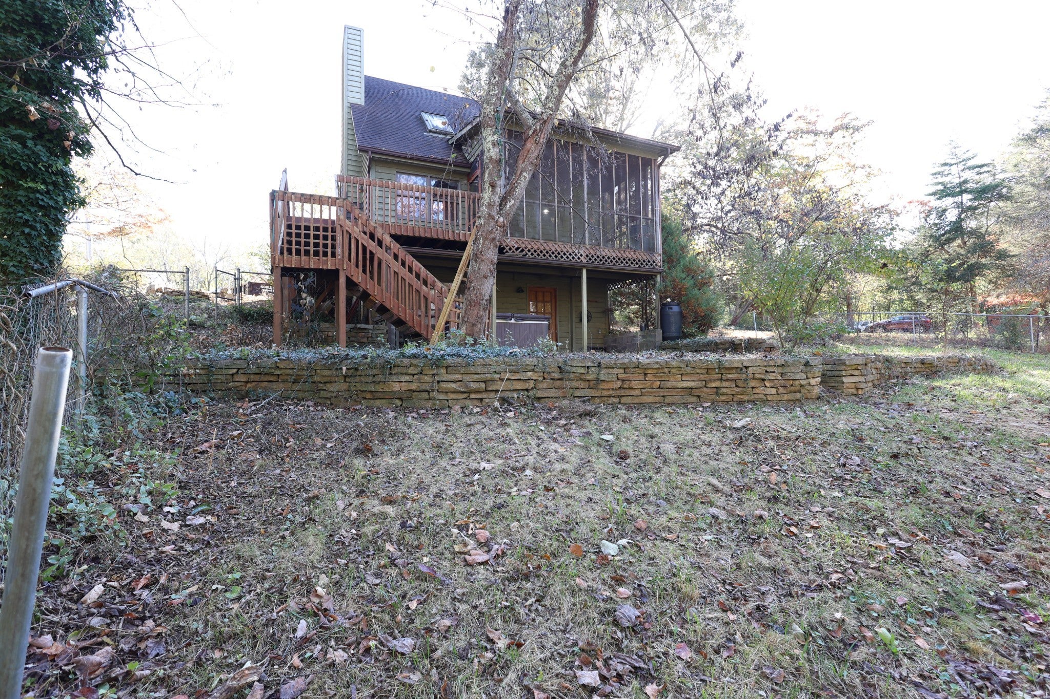 Enjoy the best of peaceful country living just minutes from Watts Bar Lake and downtown Kingston! This charming 2 bedroom, 2.5-bath chalet-style home blends rustic warmth with modern comfort, ideal for a private retreat, full-time residence, or income-producing short-term rental. The main level features an inviting open layout with a cozy wood-burning stove and easy access to the screened porch and elevated wraparound deck, perfect for morning coffee or entertaining guests. Upstairs, the primary suite offers vaulted ceilings and a private bath, creating a serene owner’s escape. The walk-out lower level adds versatility with space for a second bedroom, family room, or guest suite, complete with its own bathroom and laundry area. Set on 1.3 wooded acres, this property offers a fenced yard, patio, fire pit area, and plenty of outdoor space to relax and unwind. With just a few finishing touches, this home has excellent potential, whether you envision a cozy getaway or a high-performing Airbnb. Property is being sold AS IS