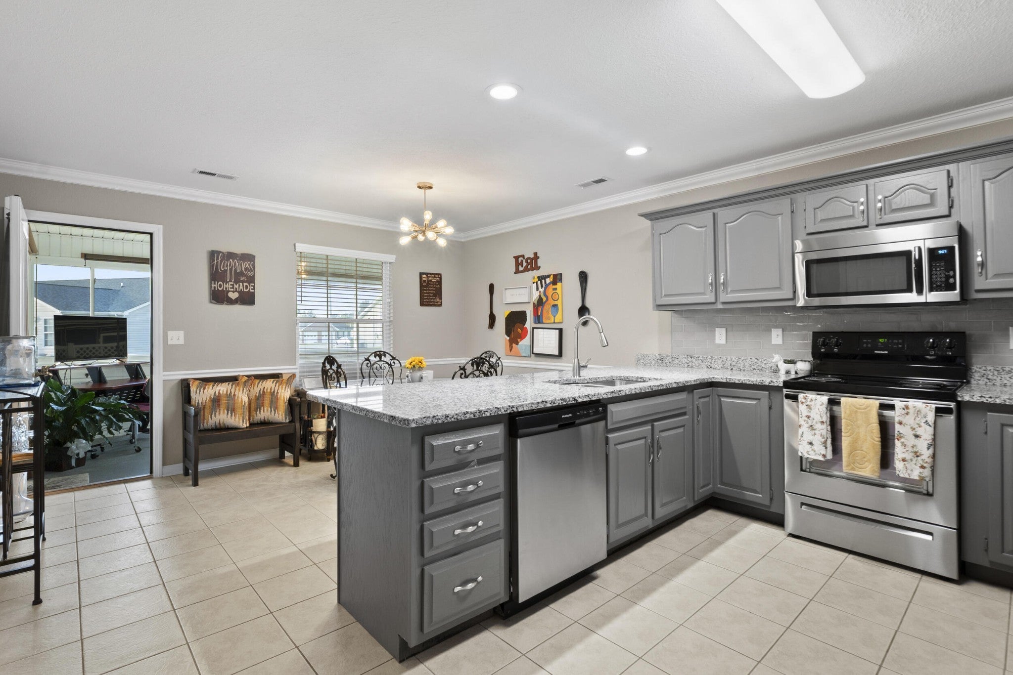 Welcome to 344 Flagstone Dr in Fort Oglethorpe. This meticulously maintained 3-bedroom, 2-bath townhome offers the perfect blend of comfort and quality. The cozy living room welcomes you into the home with a redone fireplace and fresh paint. The updated kitchen features granite countertops and stainless steel appliances. The kitchen overlooks the dining room and enclosed sunroom where you can watch the beautiful sunsets from your heated and cooled space. The beautiful primary suite offers a large bedroom and walk in shower. The laundry room is near the primary bedroom and has extra shelving and storage. The attached garage makes daily living a breeze. Additional updates include a new HVAC system installed in 2023 and fresh paint throughout, making this home truly move-in ready. Located in a quiet and friendly community, this property reflects pride of ownership and attention to detail. We cannot wait to welcome you home to Flagstone.