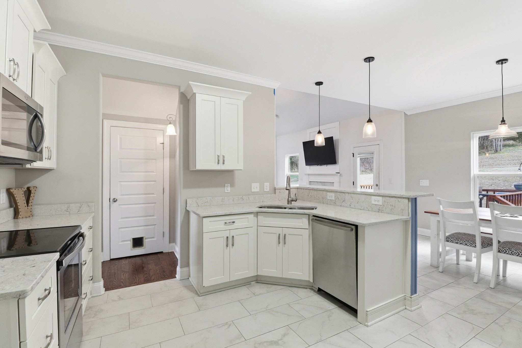 - Electric Oven, Electric Range, Dishwasher, Microwave, Stainless Steel Appliance(s)