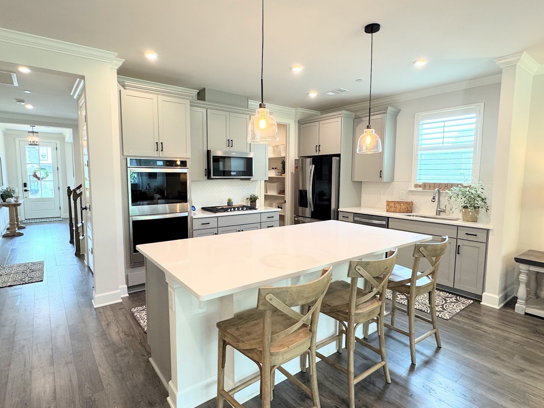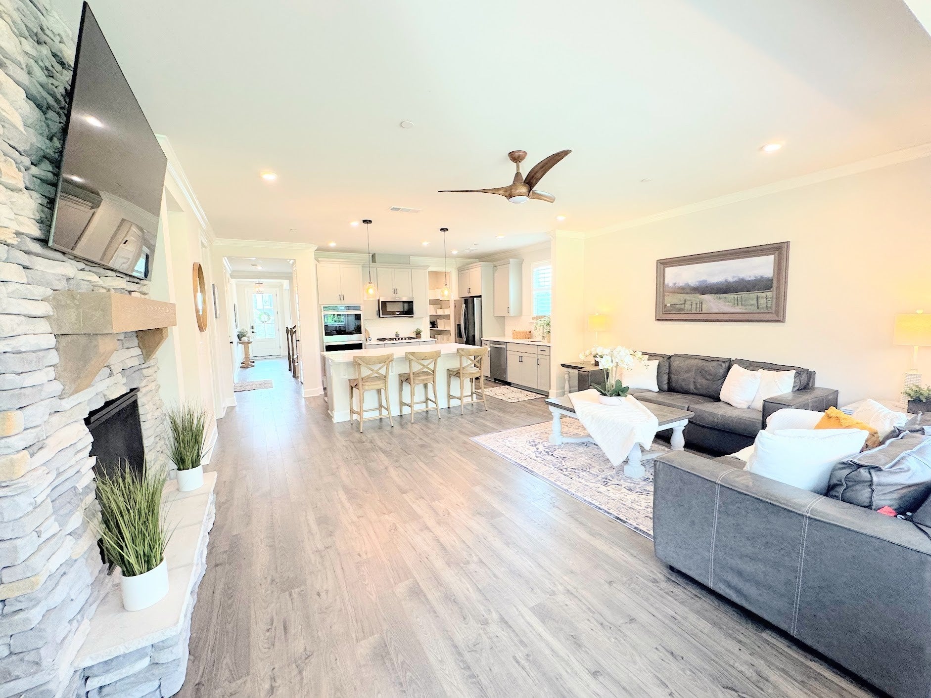 Welcome to this stunning 2023 build, a meticulously crafted four-bedroom home. From the grand front porch, you can enjoy breathtaking views of the rolling hills of Tennessee and stunning sunsets. Nestled on a spacious private lot spanning over half an acre, this home offers the perfect blend of privacy and convenience. The home’s exterior is all brick and has a freshly sealed driveway. It is thoughtfully landscaped with lush foliage and an irrigation system that surrounds the entire perimeter. A tree-lined backyard and a third-bay garage provide ample storage space. Step inside, and you’ll be greeted by abundant natural light that floods the entire space. The home features a dedicated home office or chat room, a custom master closet and panty, double ovens, quartz countertops, a stone fireplace, and designer lighting throughout. Two master bathrooms are located on each level, ensuring comfort and convenience for all. This home is conveniently located near the upcoming Publix and Nolensville Square shopping area, making it ideal for those who value both comfort and accessibility. You’ll also be close to Nolensville Elementary and Mill Creek High School, all within the Williamson County School District. Enjoy the Lockridge subdivision with scenic pathway systems, a community pool and a park.