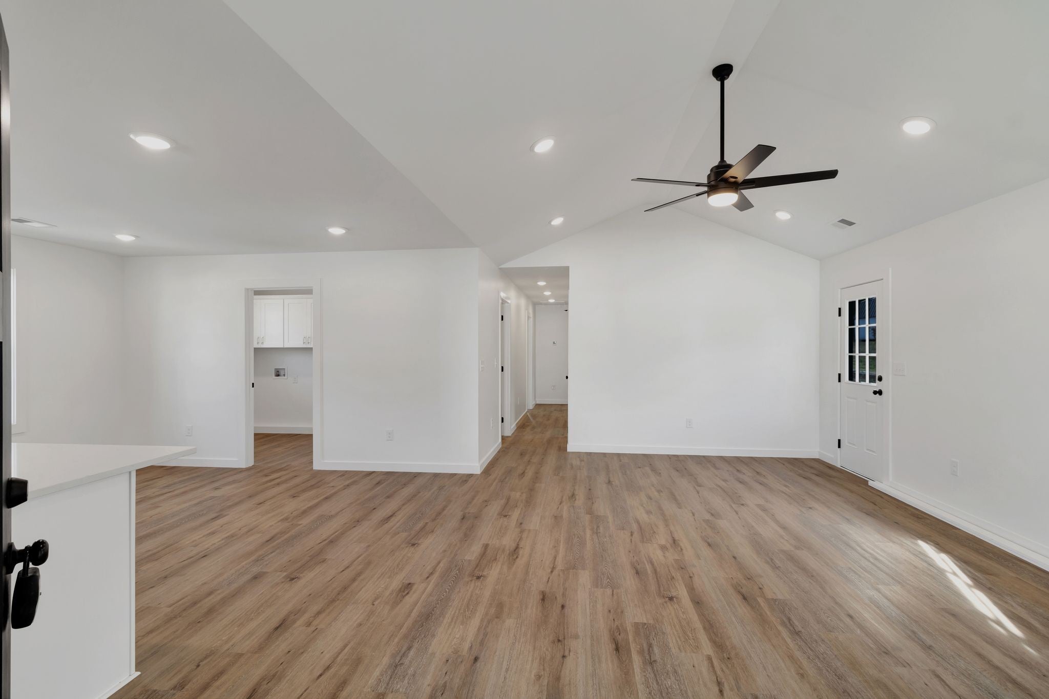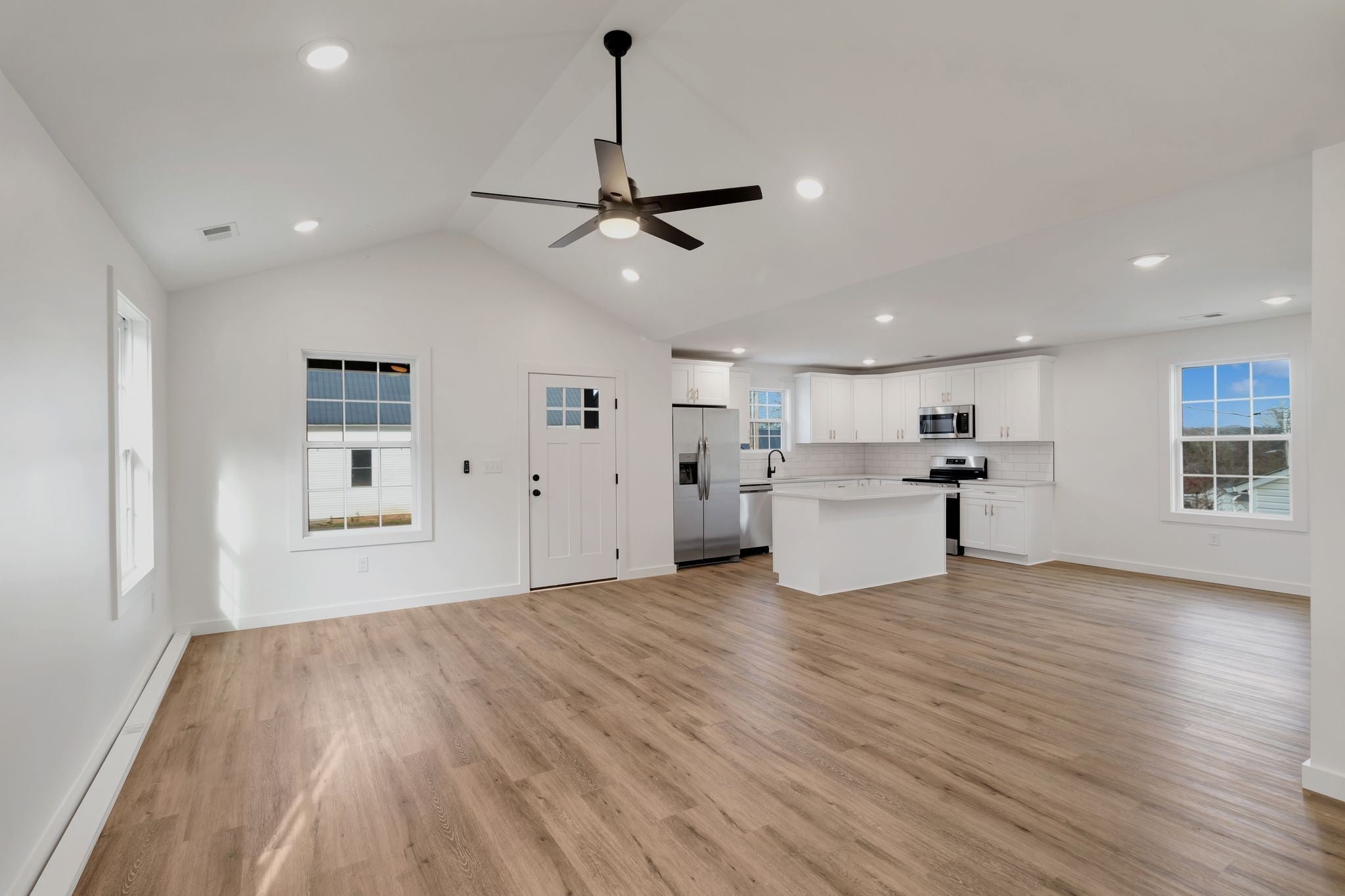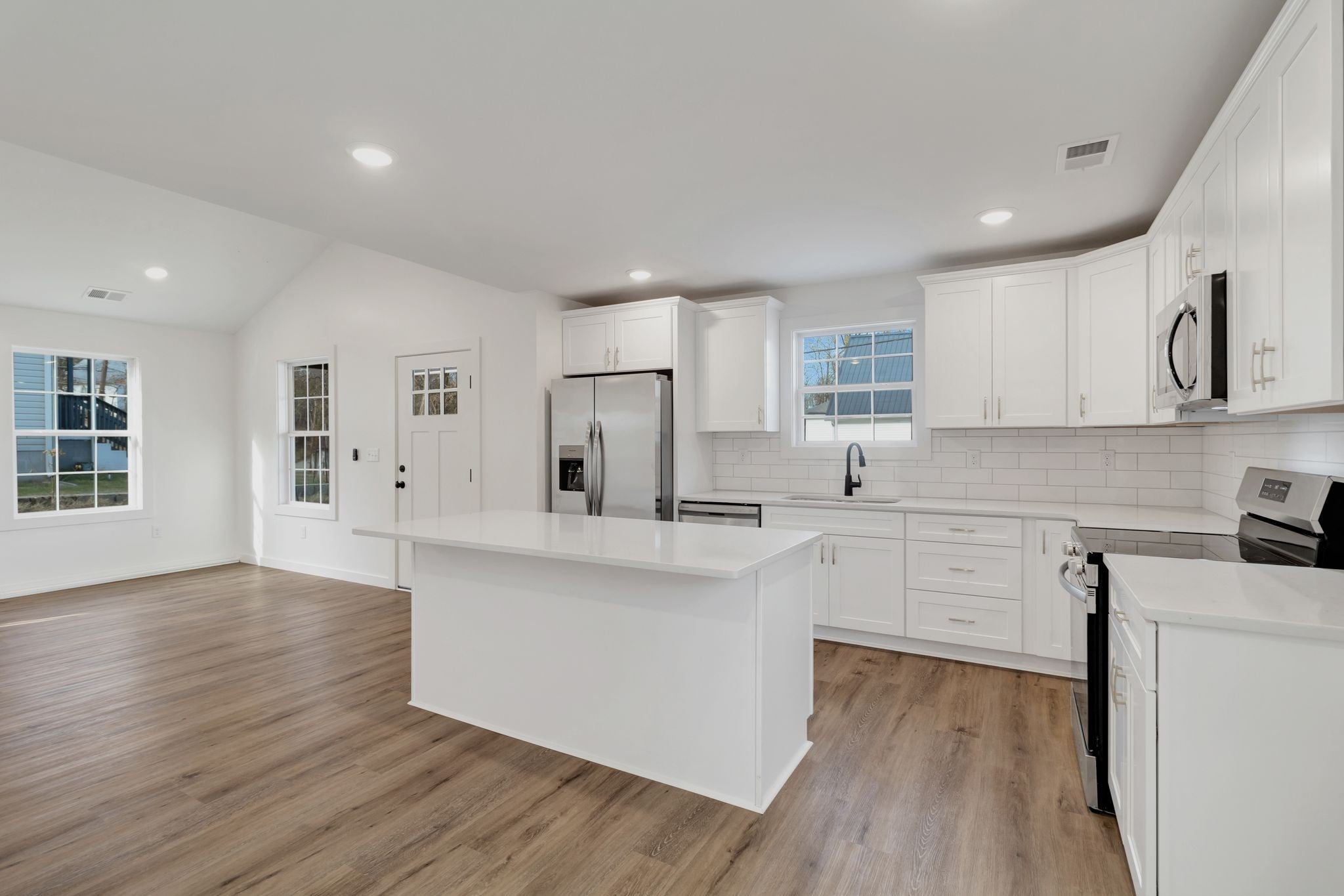This 3 bedroom 2 full bath home is located right in town. Featuring one level living, laminate flooring throughout, vaulted ceiling in living room, recessed lighting, custom shaker style cabinets, quartz countertops, tile back splash, large kitchen island, separate laundry room, and primary bedroom with walk closet and tile shower. This home has concrete driveway, 12x12 back patio, and zero entry with no steps. ** Completion approx. Early November 2025 - more photos coming soon.
