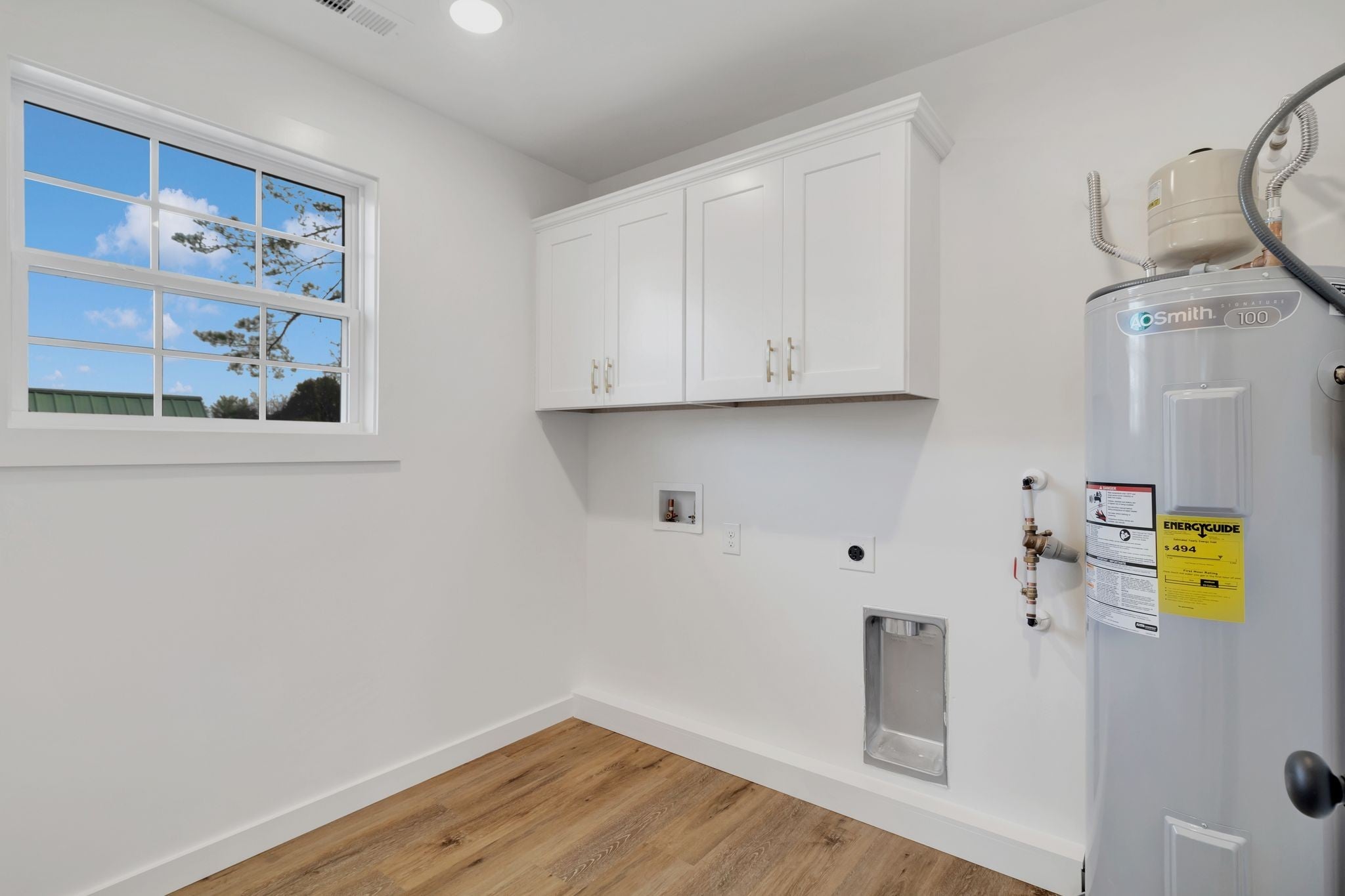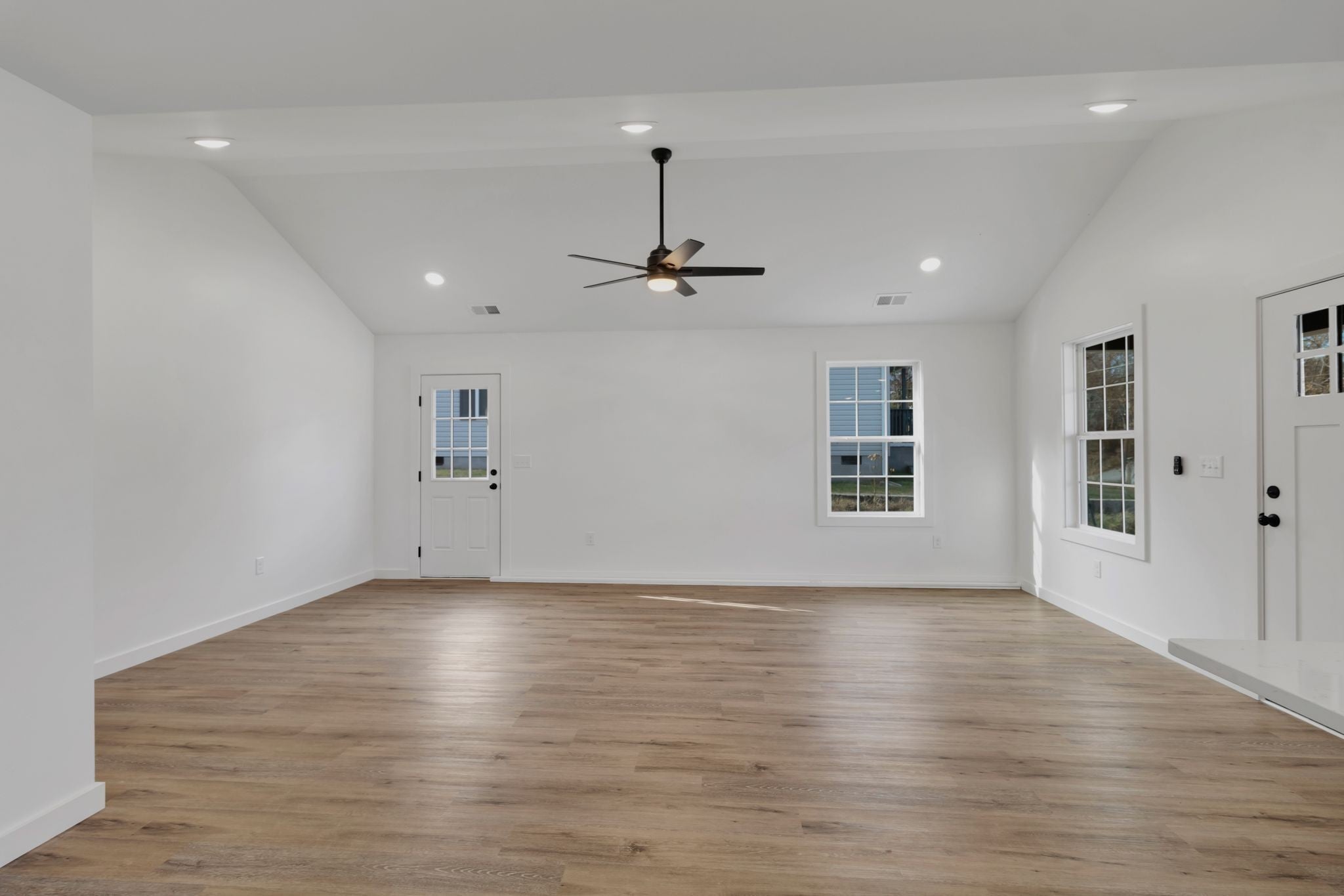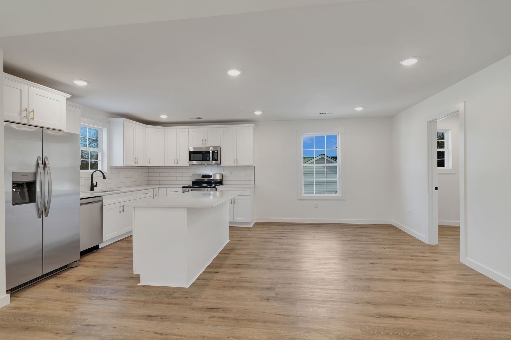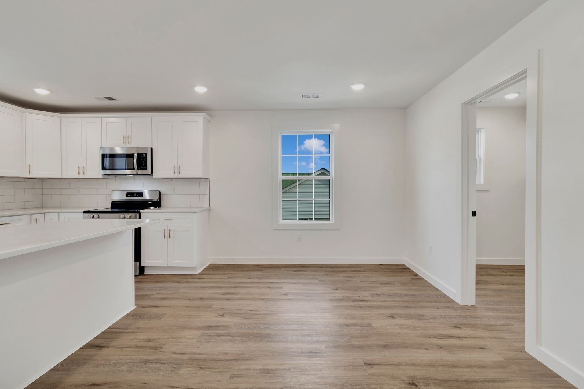 This 3 bedroom 2 full bath home is located right in town. Featuring one level living, laminate flooring throughout, vaulted ceiling in living room, recessed lighting, custom shaker style cabinets, quartz countertops, tile back splash, large kitchen island, separate laundry room, and primary bedroom with walk closet and tile shower. This home has concrete driveway, 12x12 back patio, and zero entry with no steps. ** Completion approx. Early November 2025 - more photos coming soon.