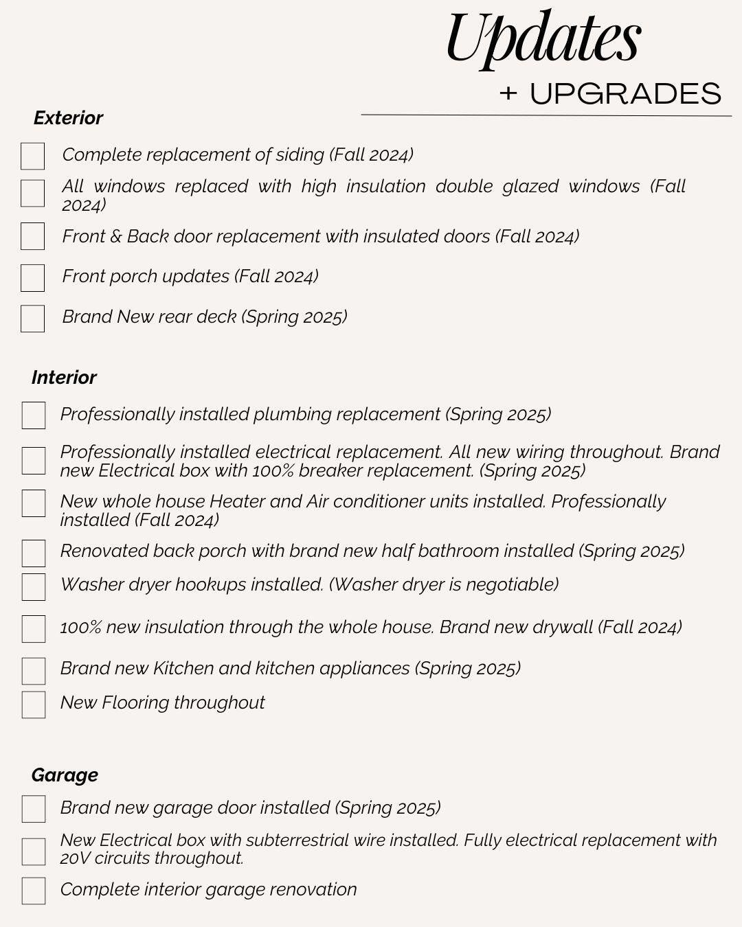 - Garages: