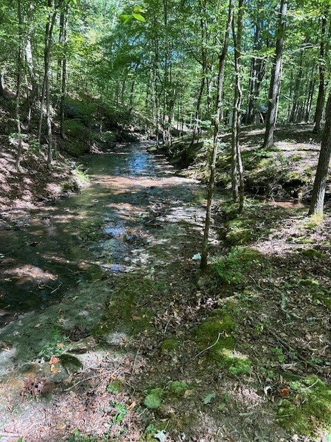 31.84 acres, clear, level to rolling at the road with a 50x38 storage building/shop, rolling and wooded in the back with several springs running to a year-round creek making a beautiful park like setting. A great place to get away with lots of privacy and many trails for hiking, ATV's or horses. Good hunting. Power and public water at the road.