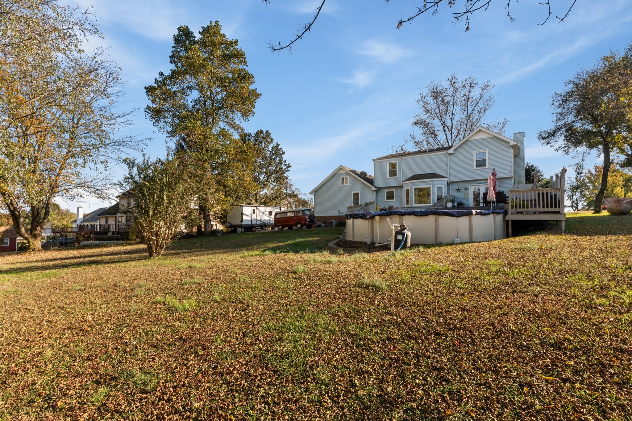 Charming Home on Nearly an Acre with Pool, Deck & Bonus Space! Welcome to this inviting property nestled on .98 acres, offering space to relax and enjoy both inside and out. This kitchen has an abundant amount of storage and cabinetry, great workspace for cooking or entertaining. Just off the kitchen, you’ll find a versatile bonus area thoughtfully divided into two rooms—perfect for a home office, craft area, playroom, guest suite, or additional bedroom with closet. Enjoy updated bathrooms that bring a fresh, modern feel throughout the home. Step outside and soak up the sun on the large back deck, ideal for outdoor dining and entertaining, or cool off in the above-ground pool during summer days. The encapsulated crawl space adds peace of mind and energy efficiency. An oversized concrete driveway offers ample parking, while the storage building provides extra space for tools, pool equipment, or hobbies. This home truly blends comfort, updates, and outdoor living—all in one beautiful setting!