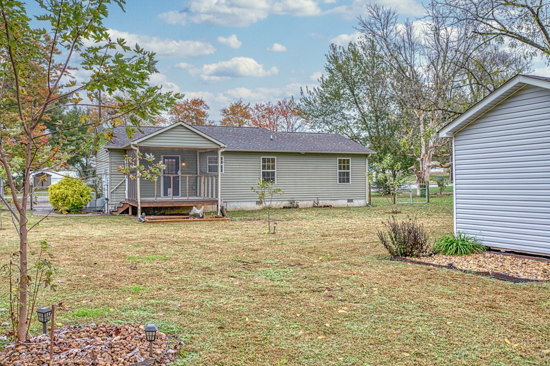 Presenting this lovely and affordable three-bedroom, two-bath home, situated in a highly convenient location that is mere minutes from town. The residence features a practical split bedroom plan, attractive hardwood flooring and a walk in laundry room. The kitchen is appointed with stylish stainless-steel appliances. The primary ensuite features a roomy walk-in closet and private bath with tile flooring. Exterior highlights include a rocking chair covered front porch, a charming screened-in back porch, and a roomy level fenced backyard, complimented by a detached outbuilding providing generous storage. Recent upgrades include a new HVAC system in 2023 and new front windows. The property is zoned for Findlay Elementary School and offers immediate possession. Call today to schedule your showing!