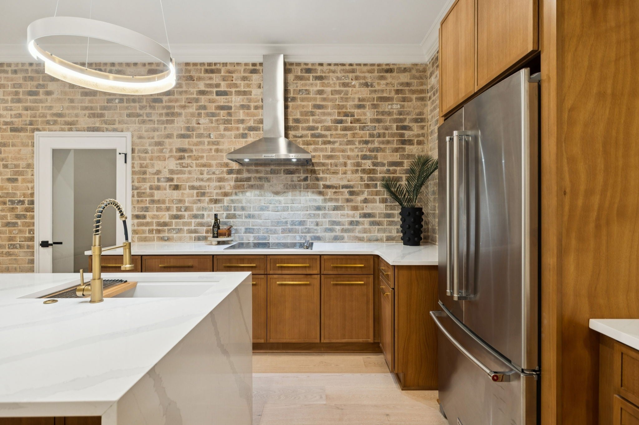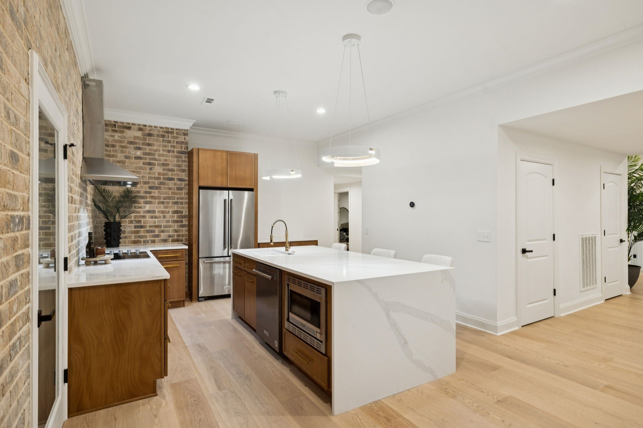 - Double Oven, Built-In Gas Range, Dishwasher, Disposal, Microwave, Refrigerator
