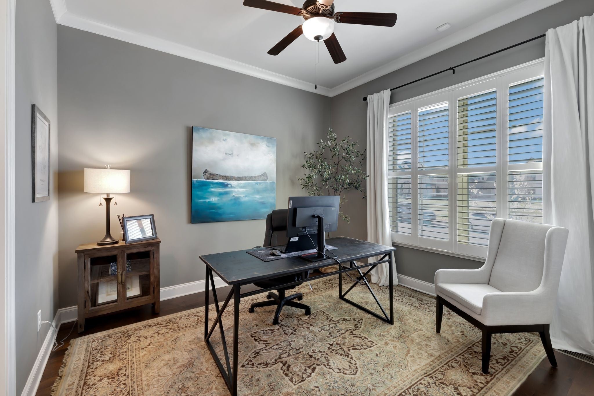 A $30K+ new roof and upgraded 6 inch gutters were just installed in September which will benefit the buyer for years to come. See for yourself this beautiful well-maintained home in the convenient River Bluff neighborhood. Situated on a premium lot, this 4-bedroom 3.5 bath home is a perfect blend of comfort, style, and functionality. The kitchen features a butler's pantry, a 5-burner gas range and large island. First floor design elements feature coffered ceiling in living room, 3 bedrooms and 2.5 baths, custom plantation shutters, board and batten feature walls, crown molding, and elegant light fixtures. This home is perfect for remote work, studying, or creative pursuits. Front bedroom setup for office with custom built shelves by the original owner. The 3-season room provides a cozy retreat with views of the gardens and stone fire pit and the sunrise views from here are amazing. Less than 10 minutes to Historic Downtown Franklin and 5 minutes from Berry Farms, you’ll have easy access to shopping, dining, and entertainment. This home truly has it all—space, stunning views, premium upgrades, and an unbeatable location.
