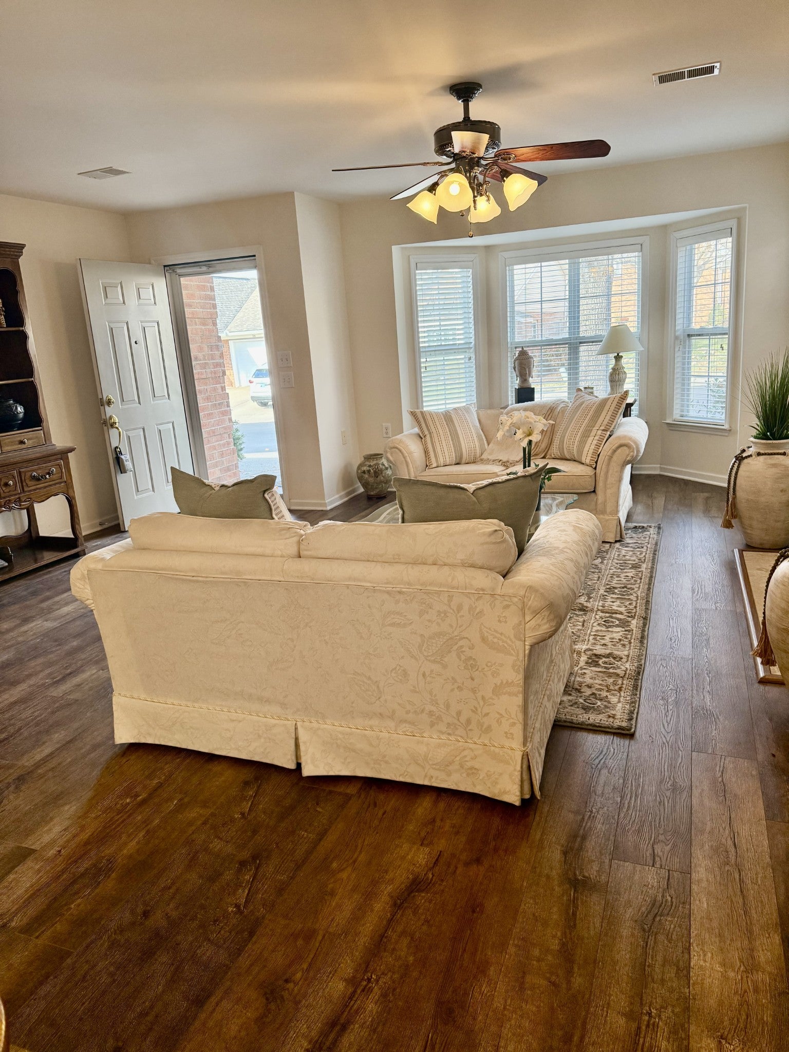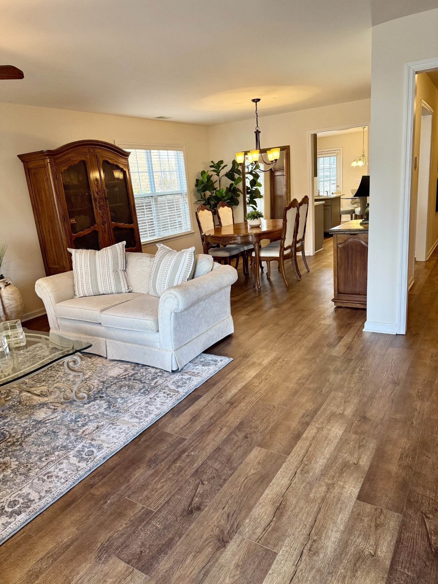 Spacious one-level living in Franklin's most desirable and convenient 55+ Community - Windsor Park at Fieldstone Farms. Great quiet location within Windsor Park - does not back up to busy Hillsboro Rd., Fieldstone Pkwy, or Spencer Creek. Enjoy a maintenance-free, lock'n go lifestyle! HOA covers lawncare, exterior maintenance. LARGEST FLOOR PLAN in Windsor Park. (260 SF-180SF LARGER!) Priced $25 per sf under sold comps. Privacy Fence in back. New wide plank flooring provides a seamless, spacious living space bathed in natural sunlight. New kitchen Quartz countertops. New carpet in primary bdrm. No pets or smoking by the past resident of 11 years. The great room-dining room combination includes a handsome gas fireplace. You’ll also enjoy the flex room – perfect for a den, office, hobby room, or add'l guest sleeping area. The eat-in kitchen has plenty of cabinet space and pantry. enities with Fieldstone Farms (2 Pools, Clubhouse, Fitness Center, Tennis, Pickleball, Playground, Park, Walking trails) The HOA dues are $75/mo. for Fieldstone Farm and $240 a month for Windsor Park which includes underground utilities, exterior maintenance and lawn care. Many pieces of furniture, washer/dryer, and frig. can remain if desired. You’ll love the convenience of this location - easy walk to Publix, Walgreens, a Bank, Hair & Nail Salon & Restaurants. A convenient Trolly Stop is located at the front of the neighborhood and provides stops all over Franklin.