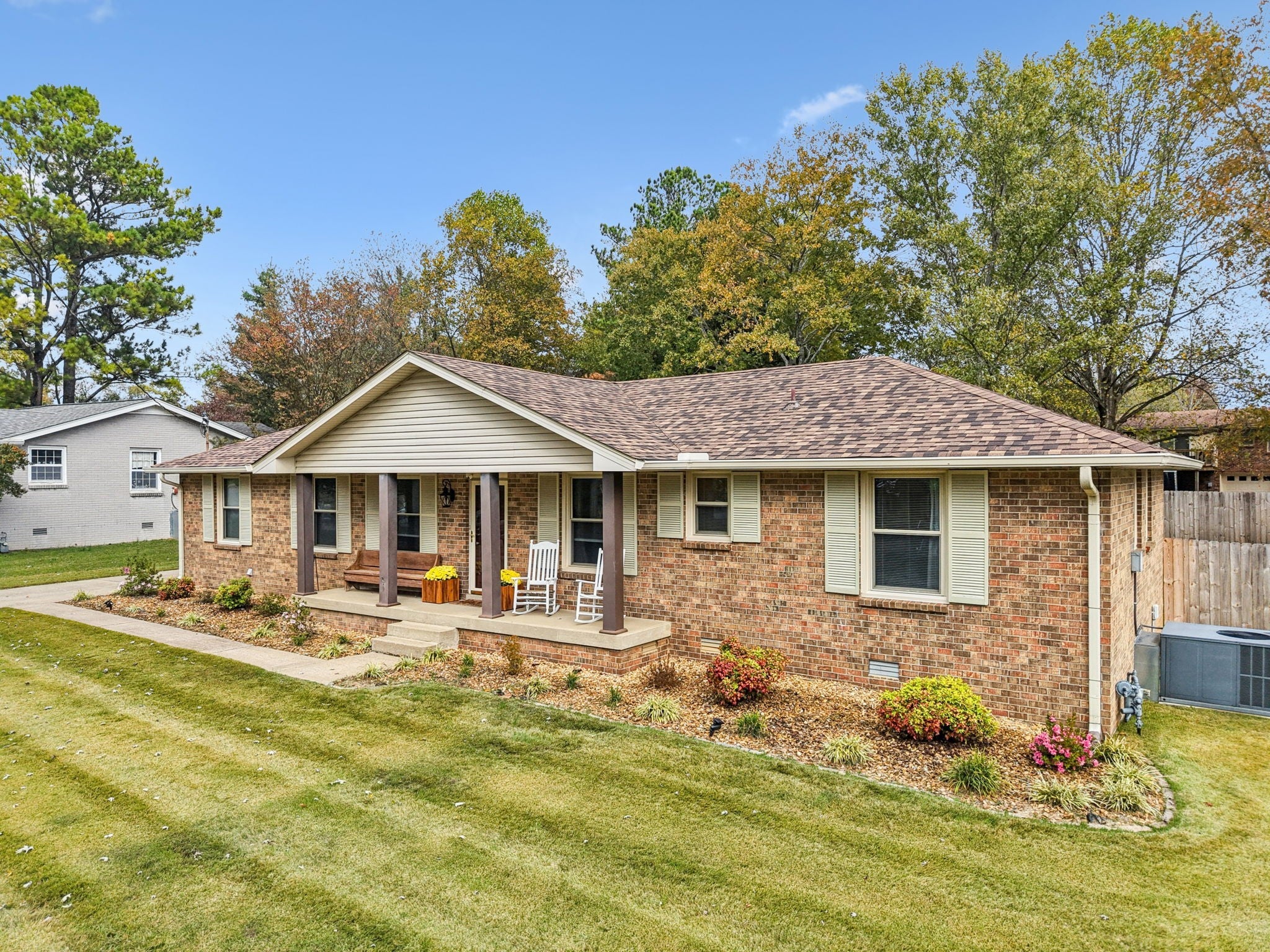 Welcome to this beautifully maintained single-level home, with a NEW roof, offering the perfect blend of comfort, style, and convenience in one of Hermitage’s most walkable neighborhoods. Everything you need is nearby! Step into an open floor plan designed for easy living, featuring durable laminate flooring throughout and natural light that flows seamlessly from room to room. The modern kitchen is the heart of the home, showcasing a double oven, center island with seating, granite countertops, white cabinetry, recessed lighting, and stainless-steel appliances - ideal for those who love to cook and entertain. The garage was converted into a bonus room, offering extra space and flexibility. The primary suite features a private half bath for convenience. Two more bedrooms and a full bathroom complete the interior tour. Out back, you’ll love the covered patio - the ultimate spot for summer BBQs or quiet relaxation - the storage building, and the attached carport. The lush green yard and privacy fencing create a peaceful outdoor retreat, perfect for enjoying Tennessee evenings. All of this, along with quick access to shopping, dining, and commuter routes, this move-in-ready home is a rare find. Schedule your private showing today!