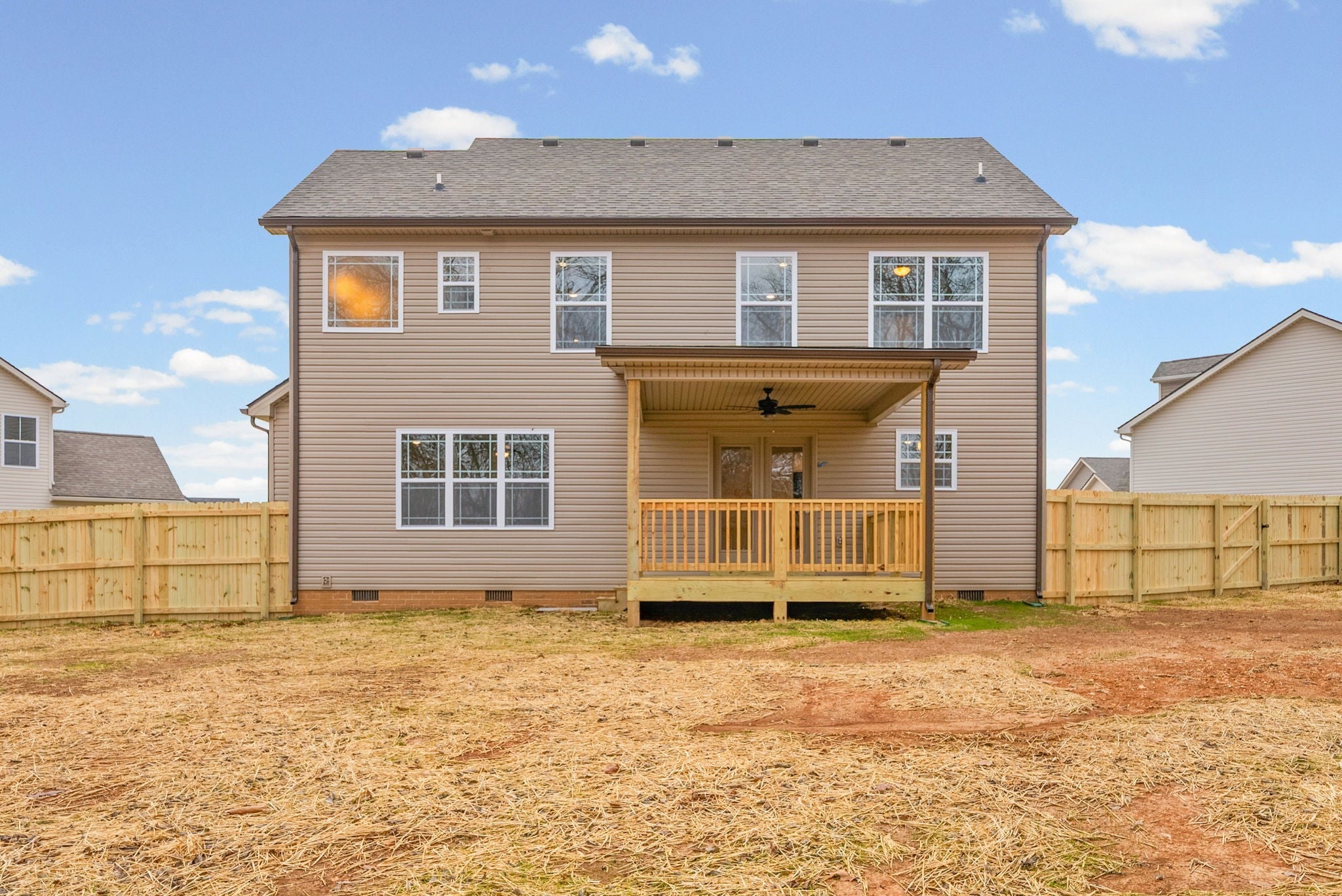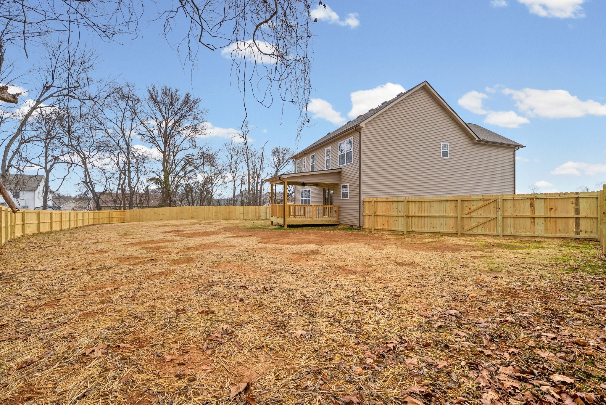 Located in the Cul-de-sac, this beautiful two story home is nestled in a cul-de-sac on the perimeter of the neighborhood w/ a large tree lined back yard, privacy fence and covered deck. The oversized living room with craftsman style built in cabinetry surround the fireplace and flows nicely into the kitchen and dining area. The eat in kitchen has plenty of cabinetry, large island, two pantries (built in and separate w/custom shelving) and stainless appliances. Upstairs the primary bedroom has a private bath w/tile shower, large soaking tub and a walk in closet w/ custom shelving. Three additional bedrooms are also located upstairs each having large closets. The laundry room is located between two of the bedrooms. Hazelwood Court is conveniently located near area schools, restaurants, shopping, and a quick commute to Ft. Campbell and downtown Clarksville. Seller will contribute $12,000 towards buyers closing expenses. This would be a great way to start 2026 - a beautiful new home and property!