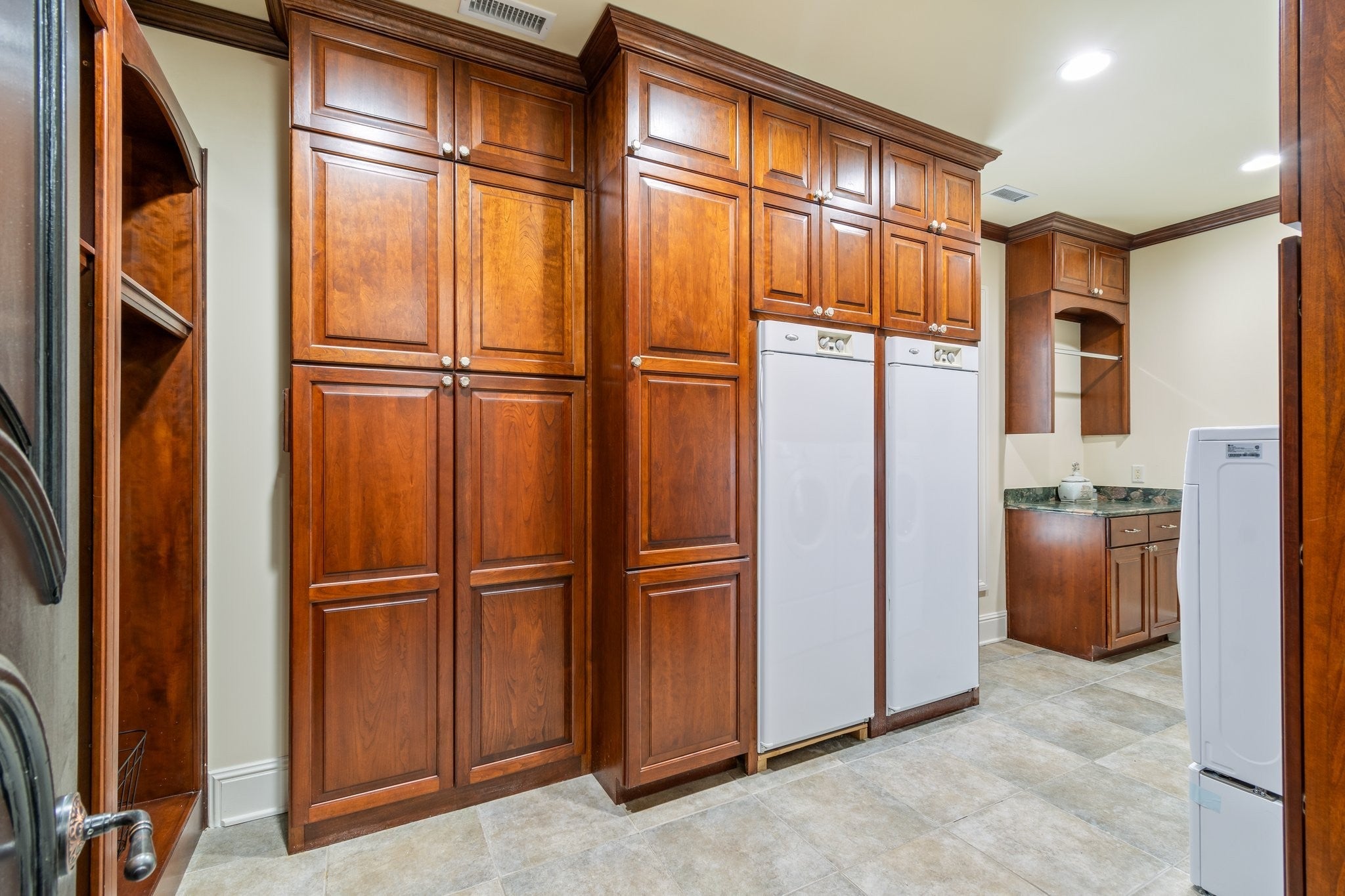 - Built-In Electric Oven, Built-In Gas Oven, Dishwasher, Disposal, Dryer, Ice Maker, Microwave, Refrigerator, Stainless Steel Appliance(s), Washer