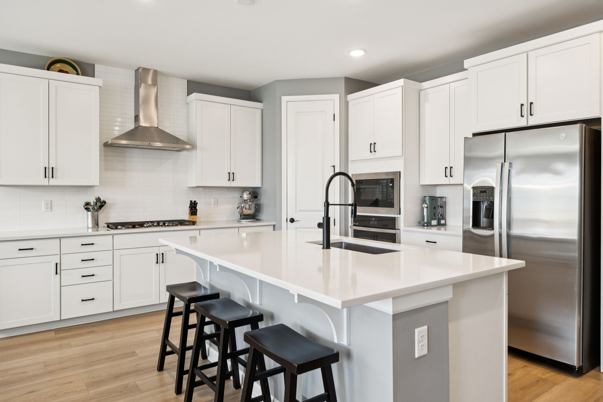 - Built-In Gas Oven, Cooktop, Dishwasher, Disposal, Microwave, Refrigerator, Stainless Steel Appliance(s)