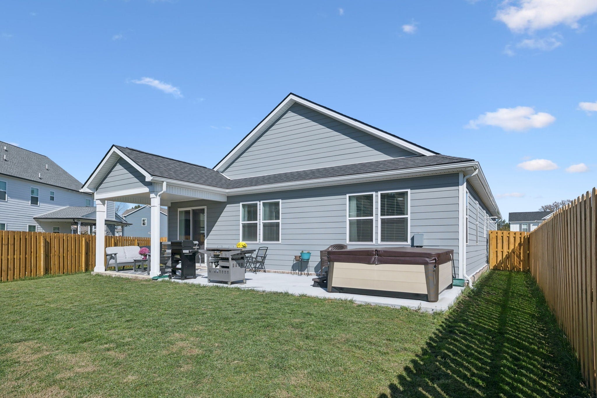 One-level living at its best! Welcome to 1819 Allwood Avenue. Built in 2024 in Murfreesboro’s sought-after South Haven subdivision, this 3-bedroom, 2-bath home offers an open and airy kitchen, dining and living room area that’s perfect for entertaining. The modern kitchen features white cabinets, quartz countertops, and stainless-steel appliances, including side-by-side fridge with ice maker, built-in gas oven and microwave, dishwasher, and drop-in five-burner gas cooktop. In addition to the three bedrooms, the home has a private office and walk-in laundry room. The master suite is tucked toward the back of the house and features a spacious walk-in closet and large tiled shower. Enjoy the outdoors in the private, fully fenced backyard with elongated back patio running the length of the house and featuring a covered porch at one end and a hot tub at the other. This home is also situated on a larger lot, providing more yard space than many of the neighboring homes. This house also features a tankless water heater, offering energy savings and never-ending hot showers, and is already equipped for an electric vehicle with a Level 2 50-amp fast-charging station in the garage. Neighborhood amenities include swimming pool, walking trail and playground. Don’t miss out on this one in South Haven!